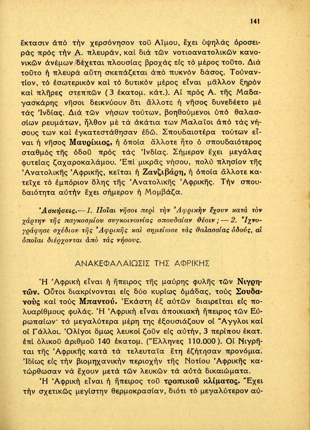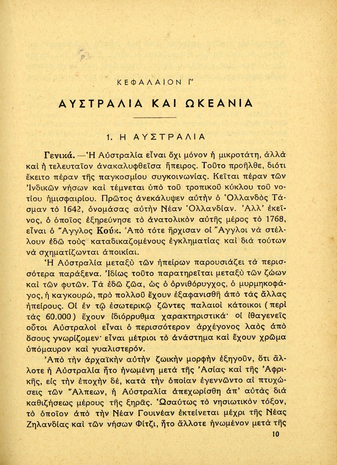 Πρόκειται για σχολικό εγχειρίδιο το οποίο προοριζόταν για τη διδασκαλία του μαθήματος της φυσικής και πολιτικής γεωγραφία της Ασίας, Αφρικής, Αμερικής και Αυστραλίας στην Α΄ τάξη των Ελληνικών Σχολείων. Φέρει ...