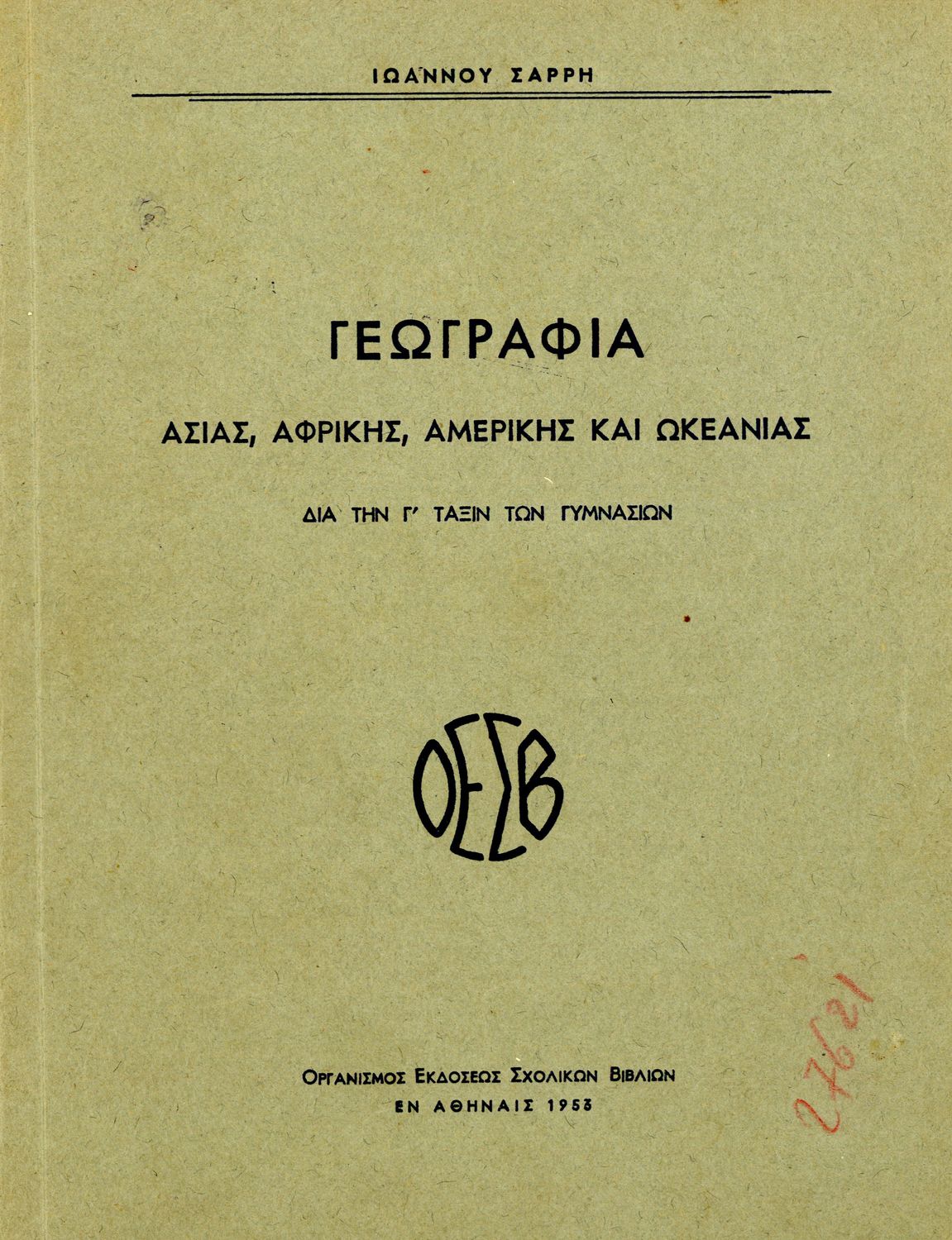 Τίτλος: Γεωγραφία Ασίας, Αφρικής, Ωκεανίας, Αμερικής δια την Γ΄ τάξιν των Γυμνασίων