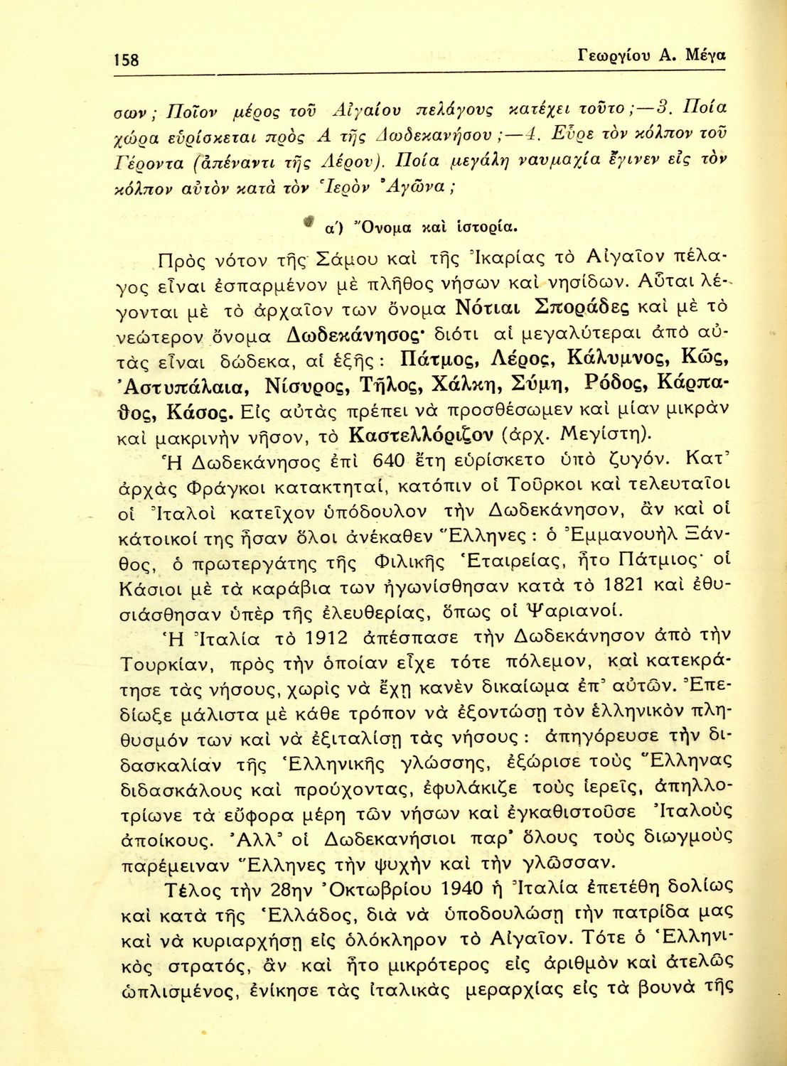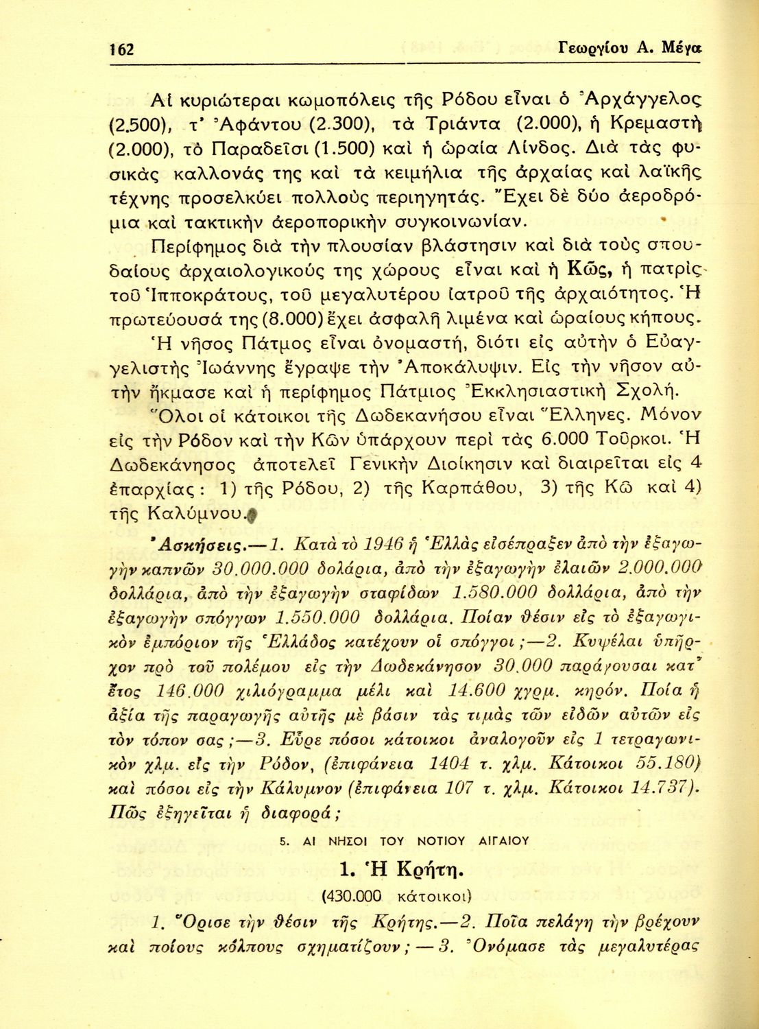 Κωδικός αναγνώρισης: 02-01026 Τίτλος: Γεωγραφία της Ελλάδος δια την Α΄ τάξιν των Γυμνασίων Συγγραφέας: Γεώργιος Α. Μέγας Εικονογράφος: Αλέξανδρος Φαλτάϊτς Μέγεθος και υπόστρωμα: Σχολικό εγχειρίδιο, μαλακό εξώφυλλο, 233 σελίδες. Εικόνες (ασπρόμαυρες). |