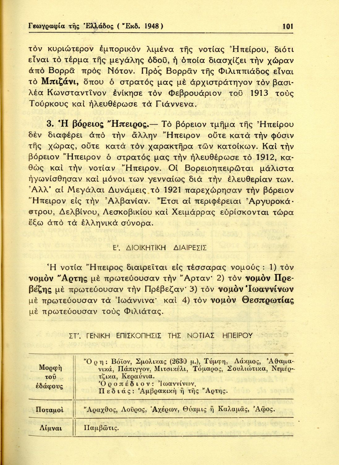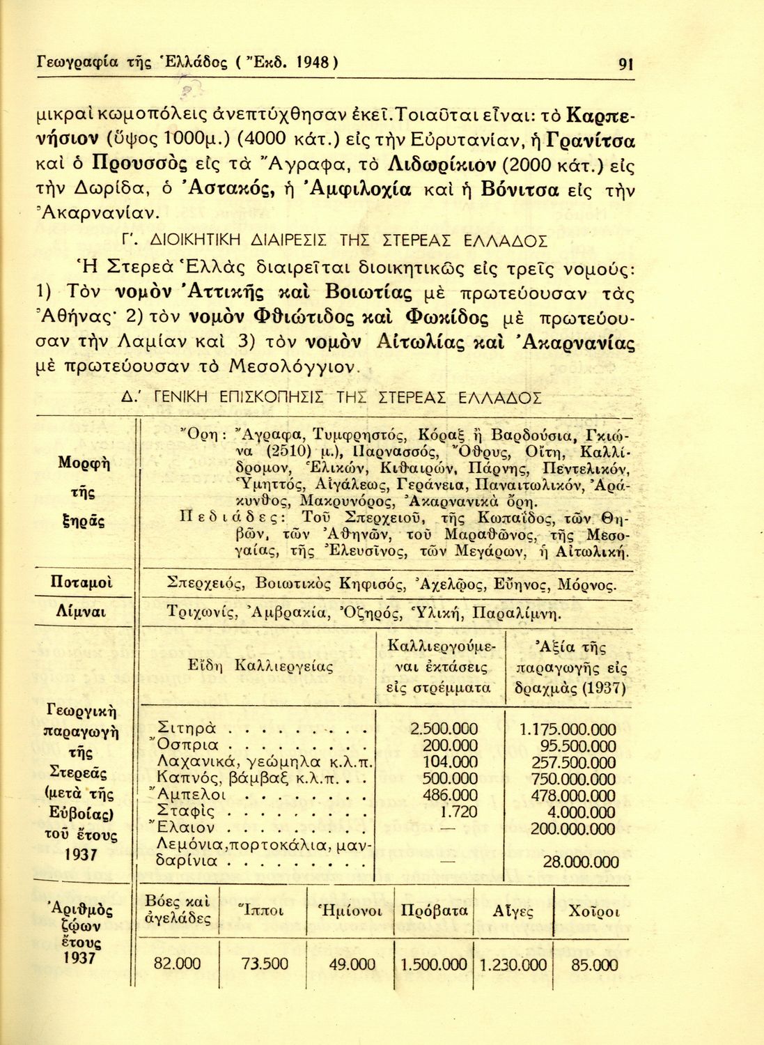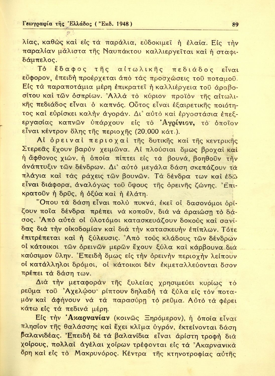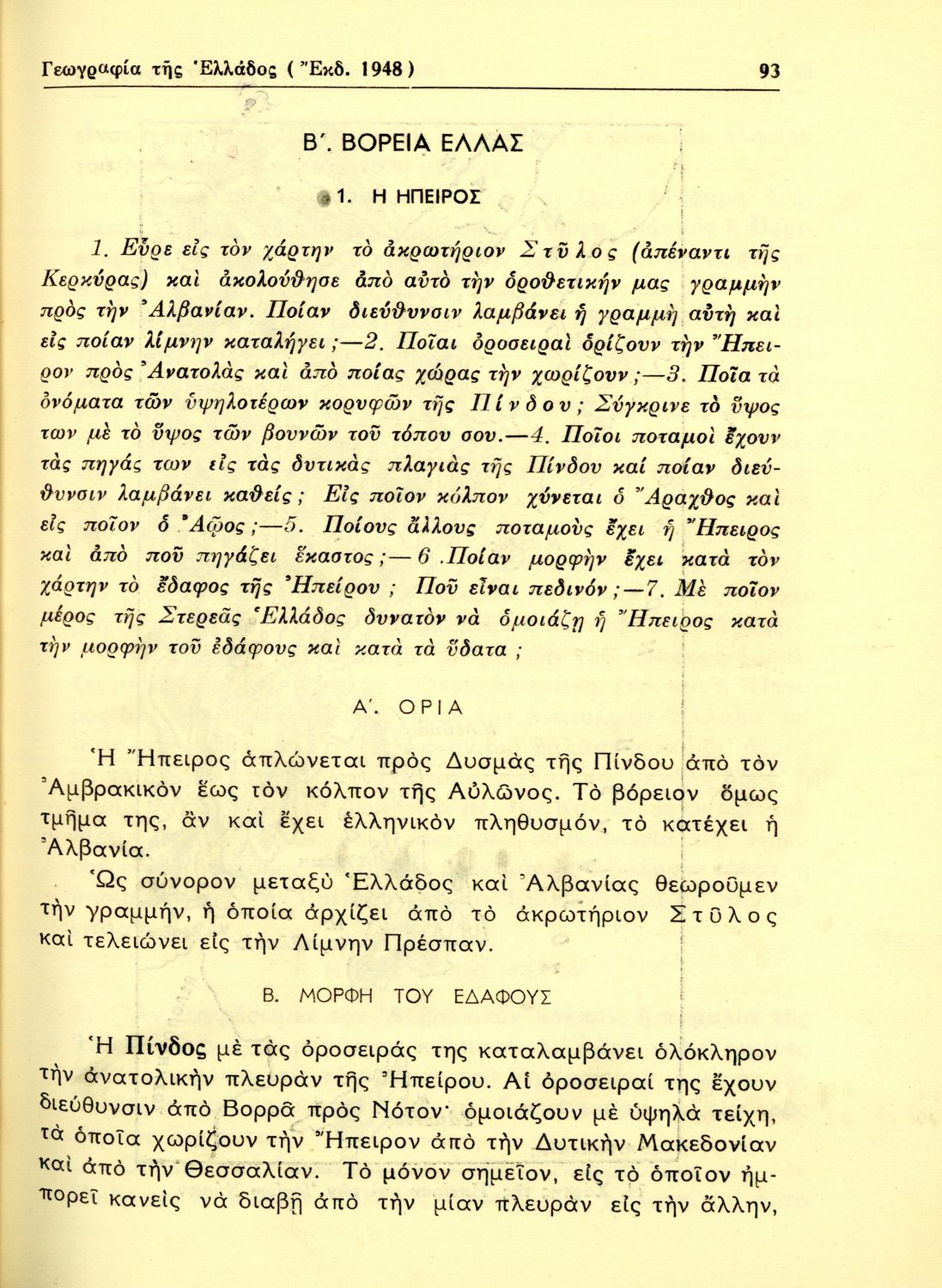 Σχολικό εγχειρίδιο Γεωγραφίας Α' Γυμνασίου που εξετάζει την Ελλάδα ανά διαμέρισμα και νομό από γεωφυσική, οικονομική και πολιτική άποψη.