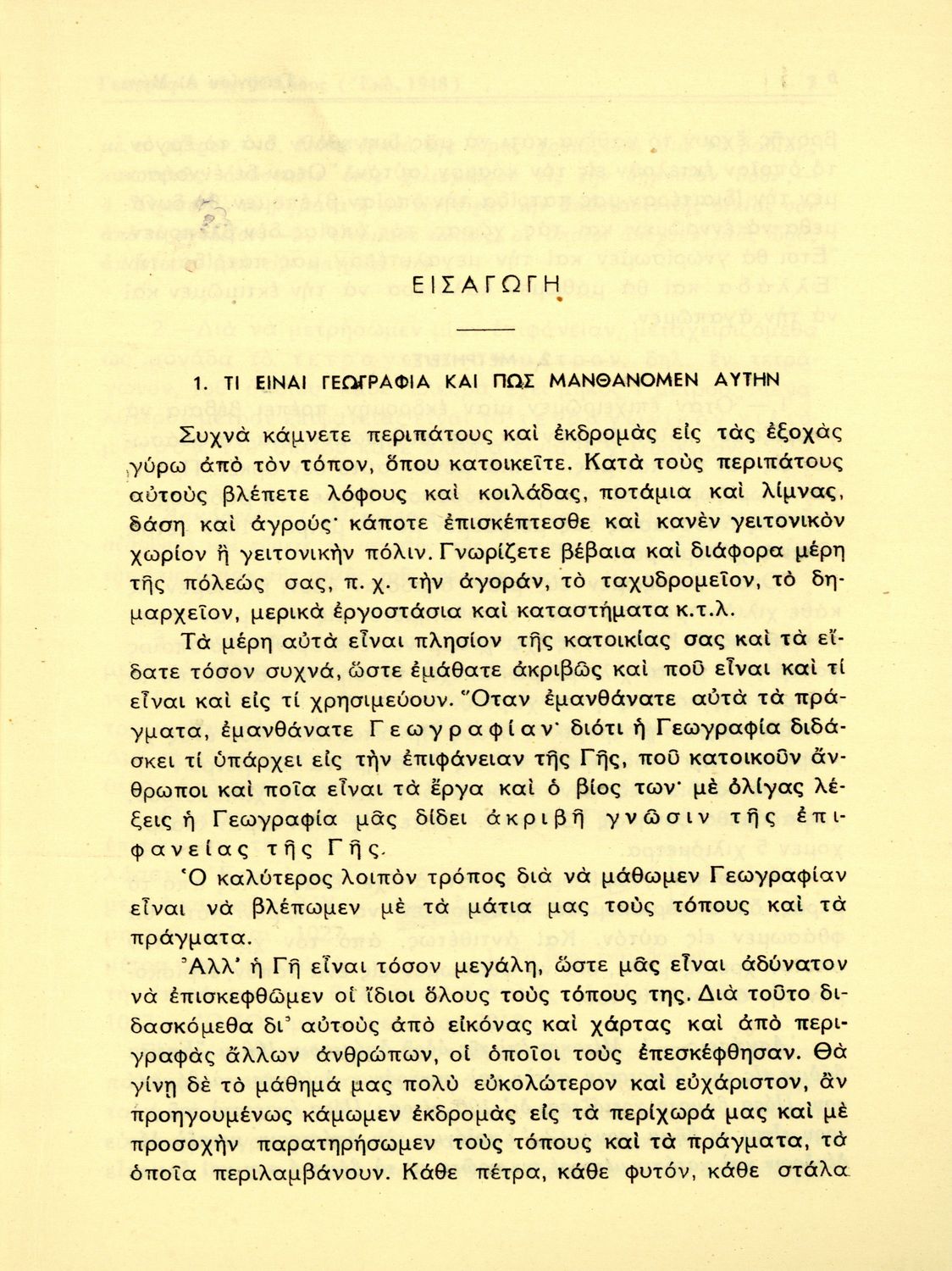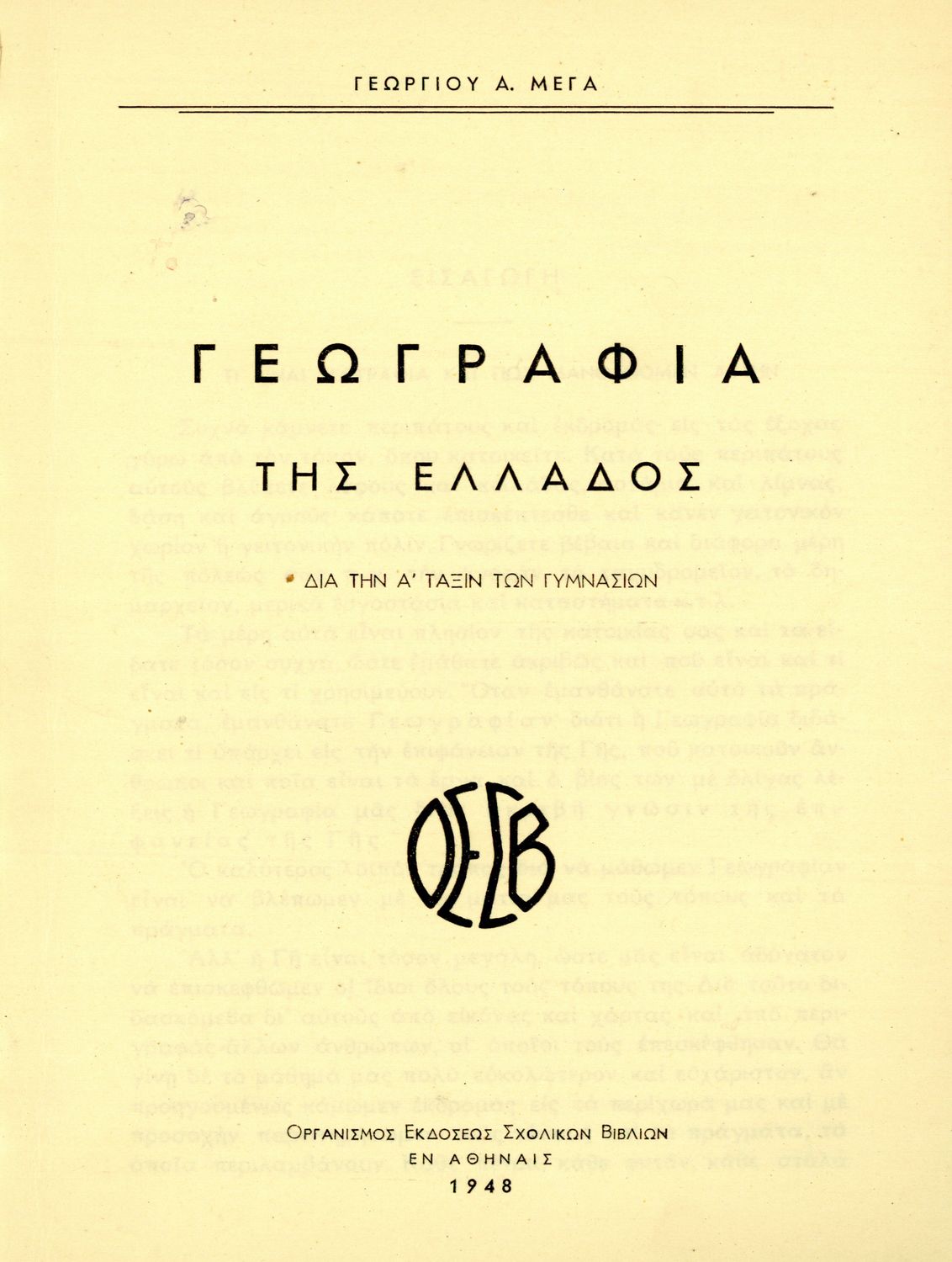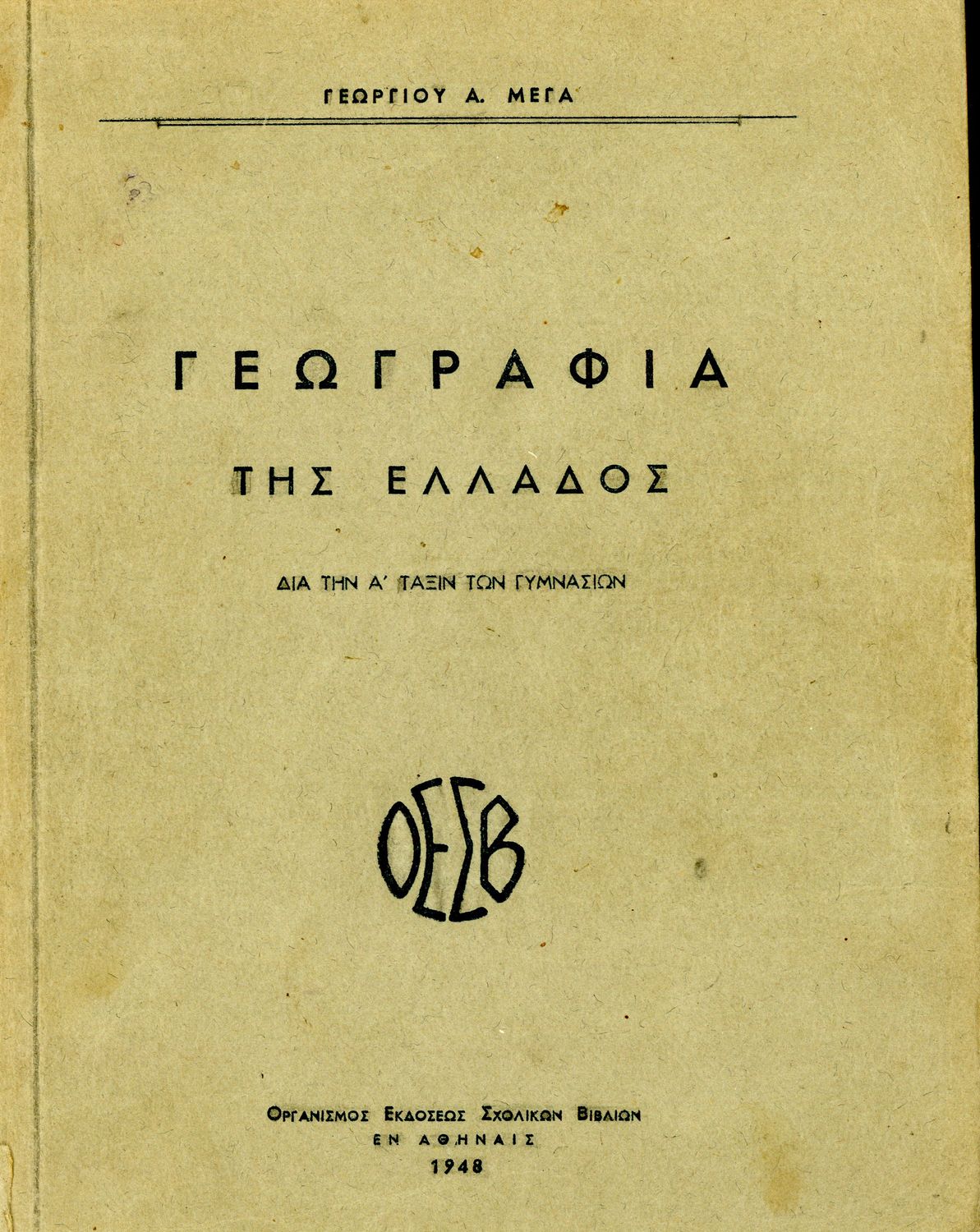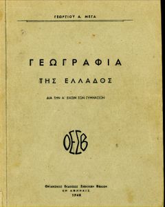 Κωδικός αναγνώρισης: 02-01026 Τίτλος: Γεωγραφία της Ελλάδος δια την Α΄ τάξιν των Γυμνασίων Συγγραφέας: Γεώργιος Α. Μέγας Εικονογράφος: Αλέξανδρος Φαλτάϊτς Μέγεθος και υπόστρωμα: Σχολικό εγχειρίδιο, μαλακό εξώφυλλο, 233 σελίδες. Εικόνες (ασπρόμαυρες). |