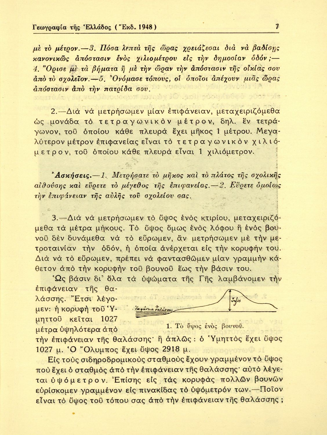 Βαθμίδα εκπαίδευσης: Δευτεροβάθμια Τάξη: Α' Γυμνασίου Μάθημα: Γεωγραφία Γλώσσα: Απλή καθαρεύουσα Παρουσίαση περιεχομένου: Σχολικό εγχειρίδιο Γεωγραφίας Α' Γυμνασίου που εξετάζει την Ελλάδα ανά διαμέρισμα και νομό από γεωφυσική, οικονομική και πολιτική άποψη. |