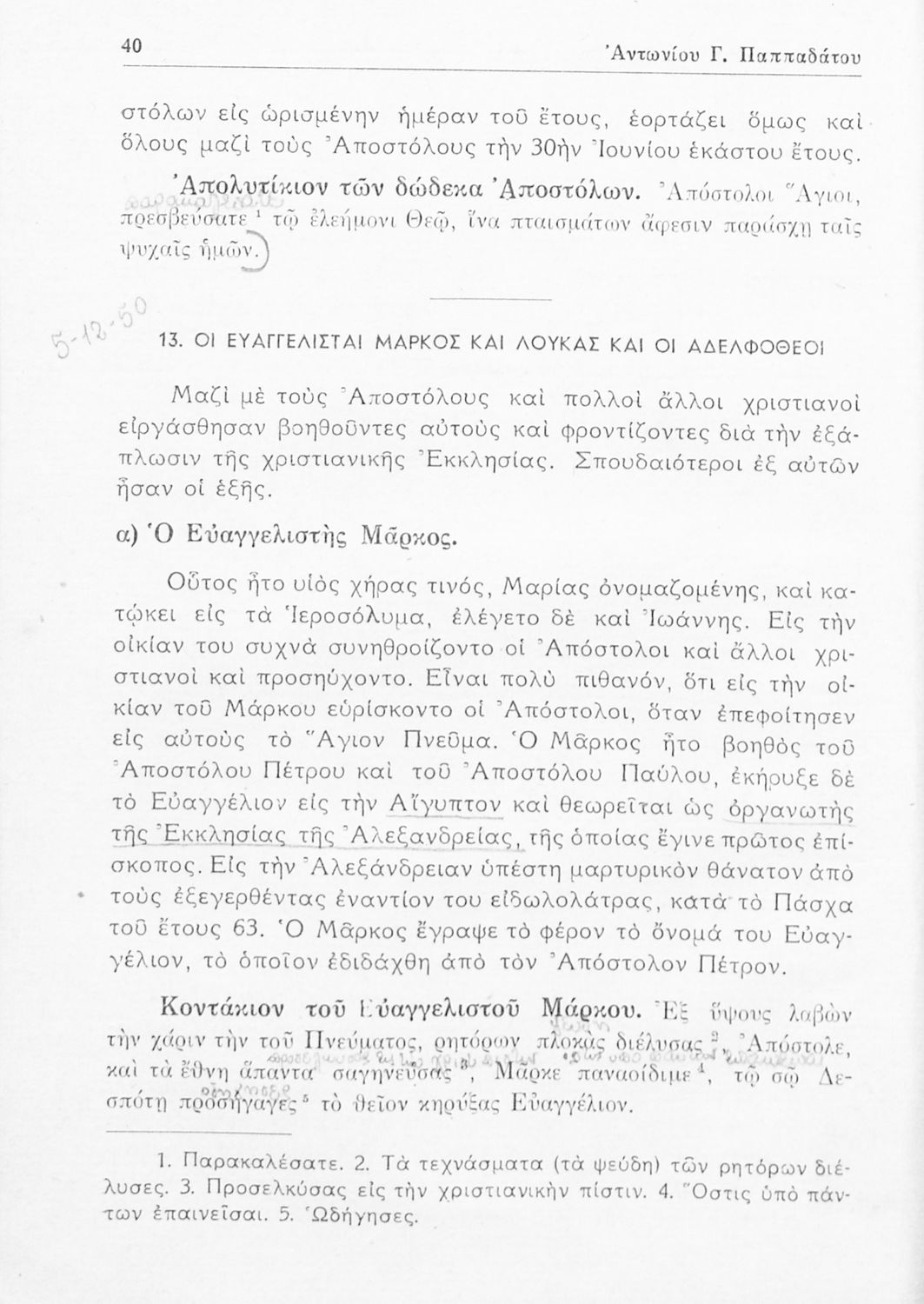 Τάξη:  Ε' Γυμνασίων παλαιού τύπου