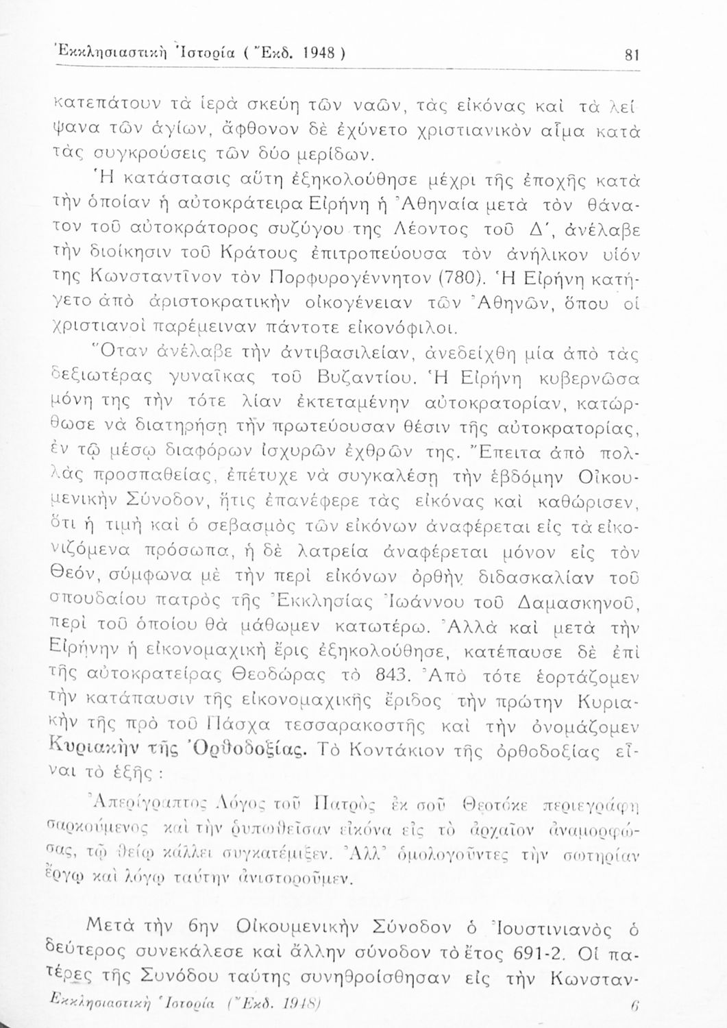 Σχολικό εγχειρίδιο Θρησκευτικών για την Δ' Γυμνασίου παλαιού τύπου που περιέχει την ιστορία της ορθόδοξης Εκκλησίας από την ίδρυσή της μέχρι την δημιουργία της Εκκλησίας της Ελλάδας.