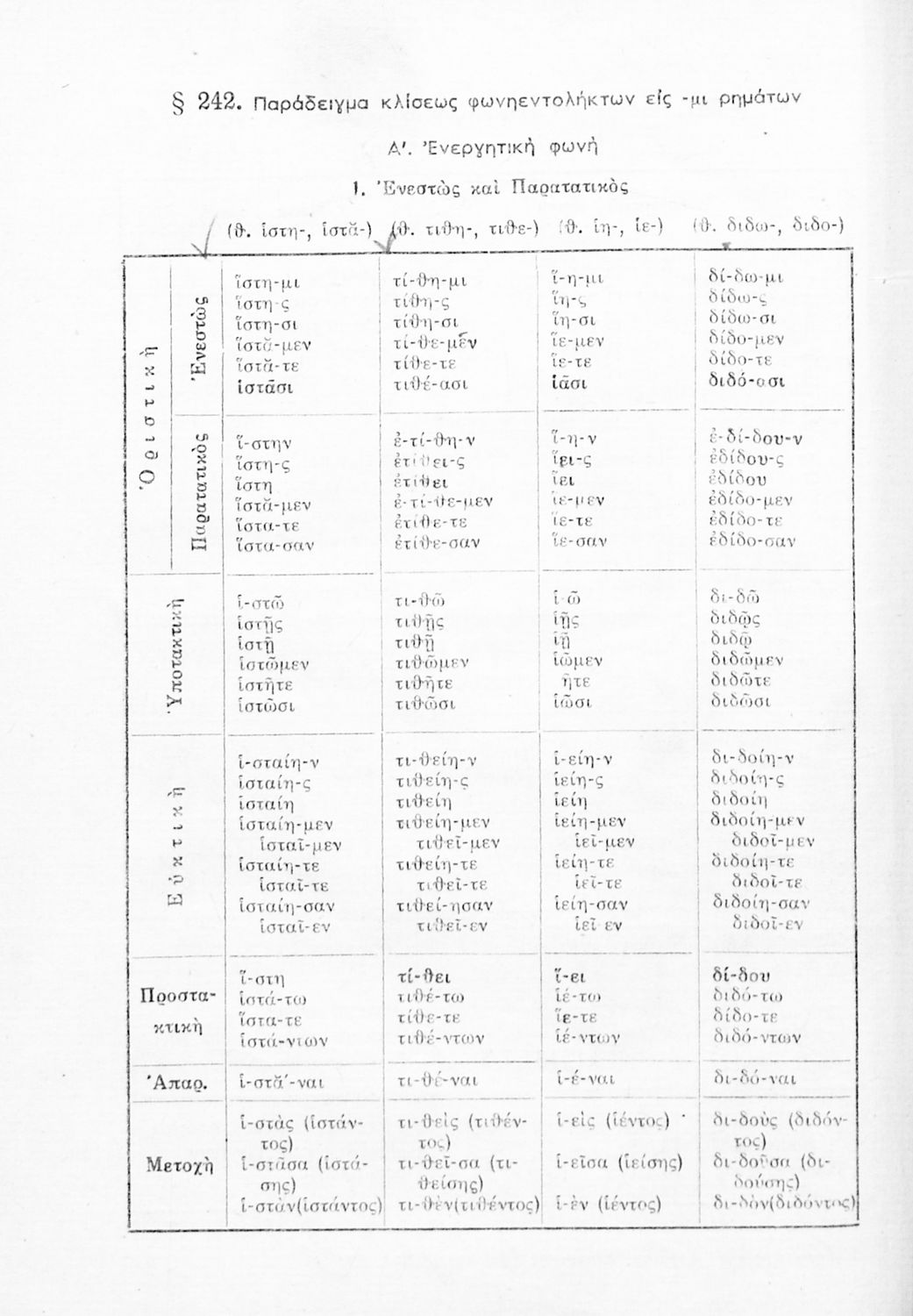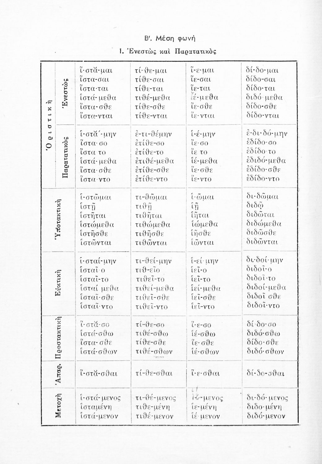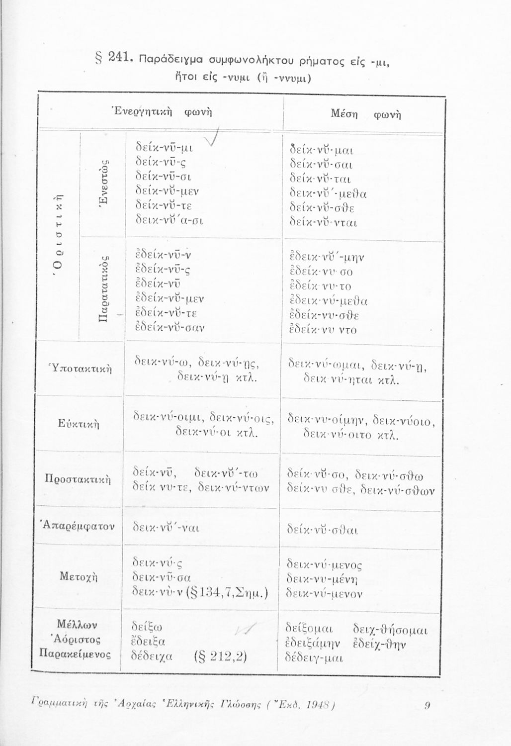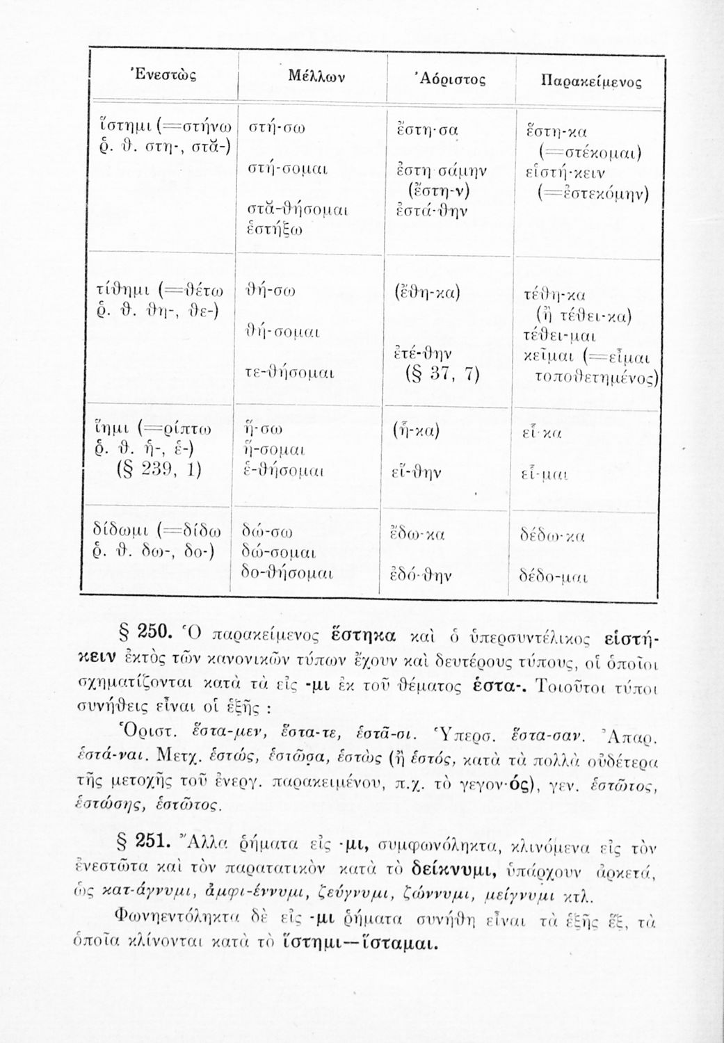 Σχολικό εγχειρίδιο Αρχαίων Ελληνικών Γυμνασίου που περιέχει τους κανόνες γραμματικής και είναι χωρισμένο σε φθογγολογικό, τυπολογικό και ετυμολογικό μέρος. Περιέχει και κατάλογο ανωμάλων ρημάτων.