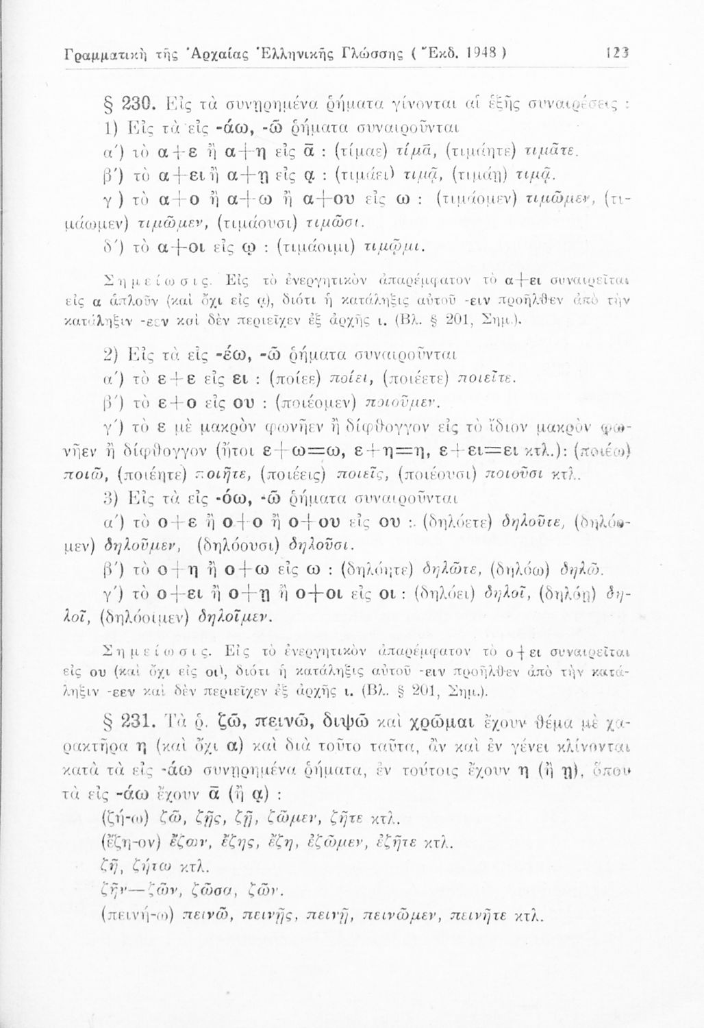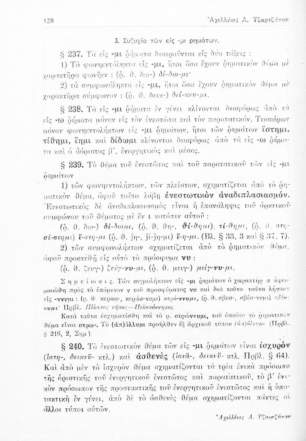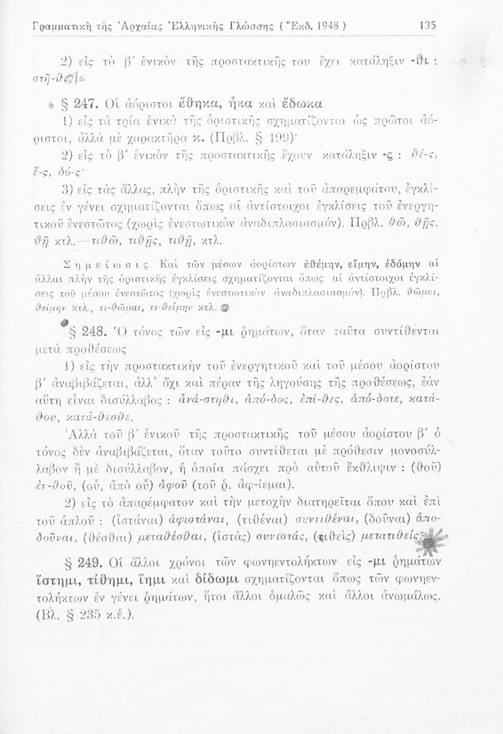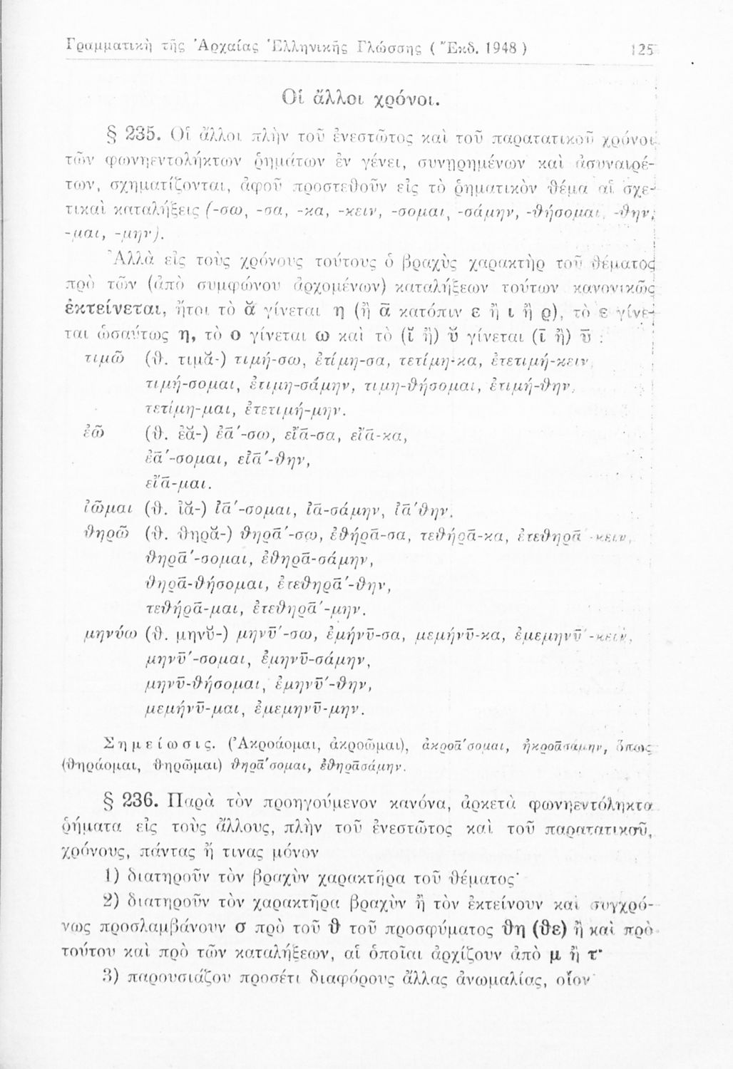 Σχολικό εγχειρίδιο Αρχαίων Ελληνικών Γυμνασίου που περιέχει τους κανόνες γραμματικής και είναι χωρισμένο σε φθογγολογικό, τυπολογικό και ετυμολογικό μέρος. Περιέχει και κατάλογο ανωμάλων ρημάτων.