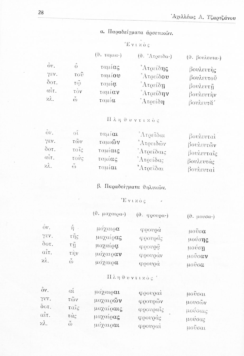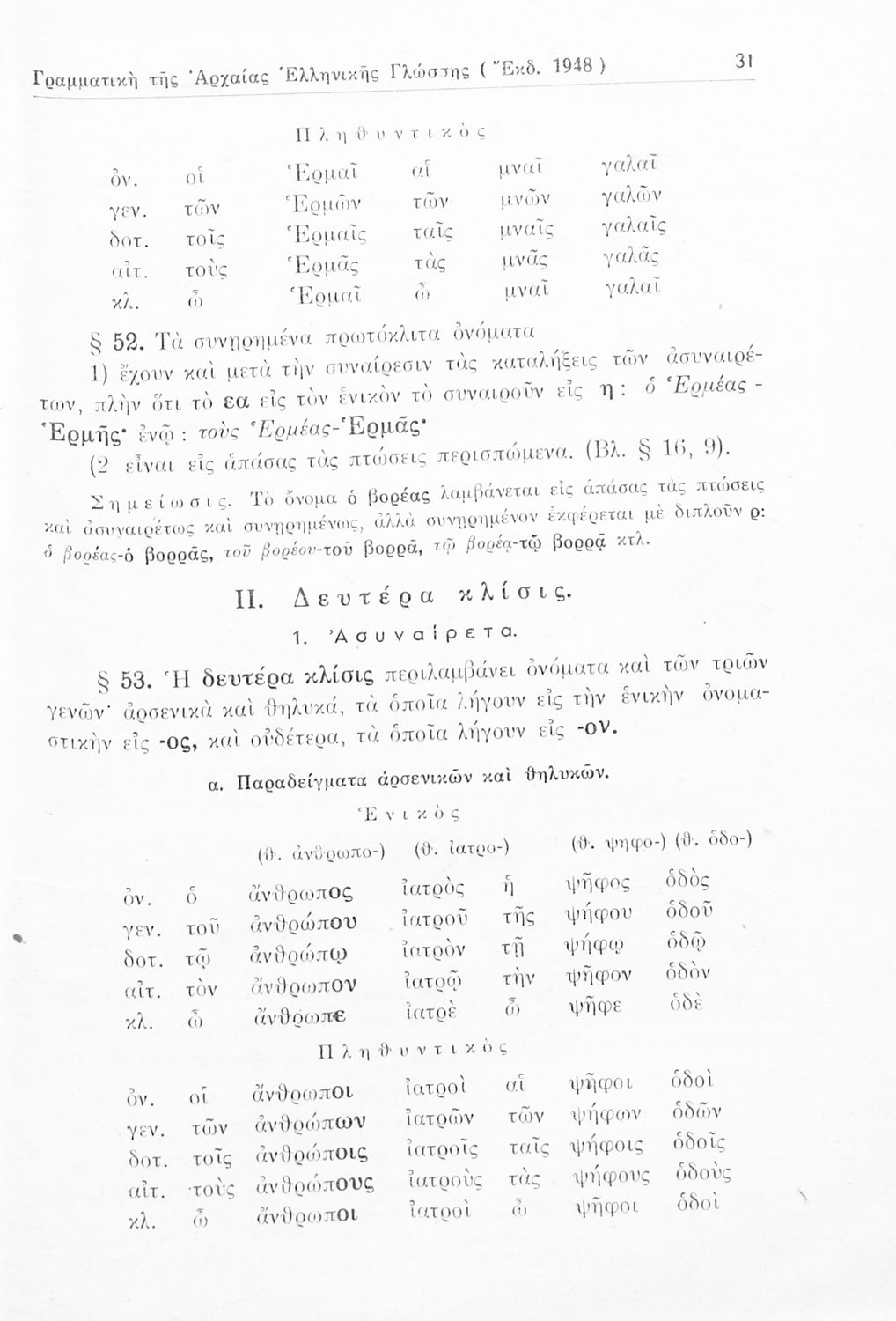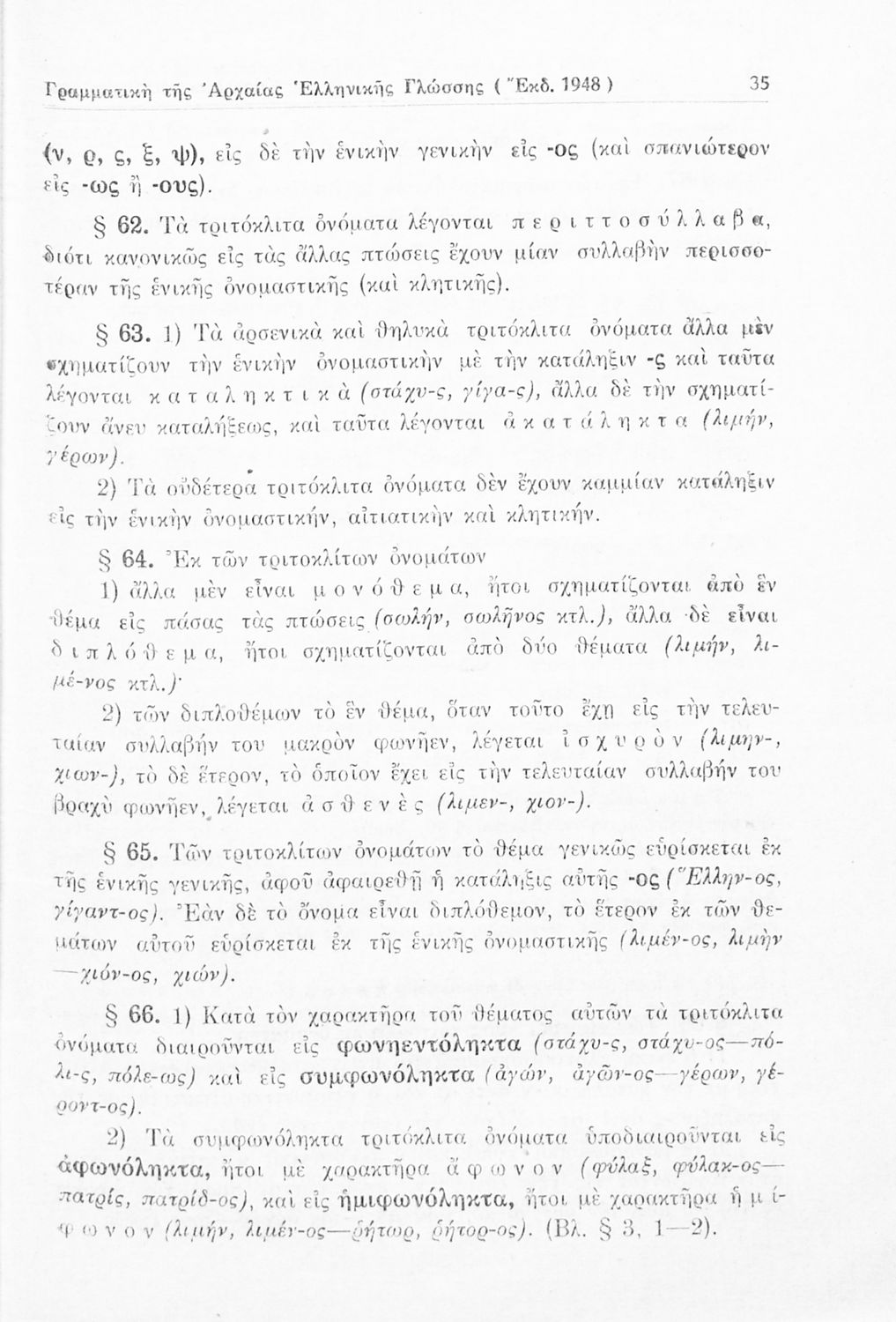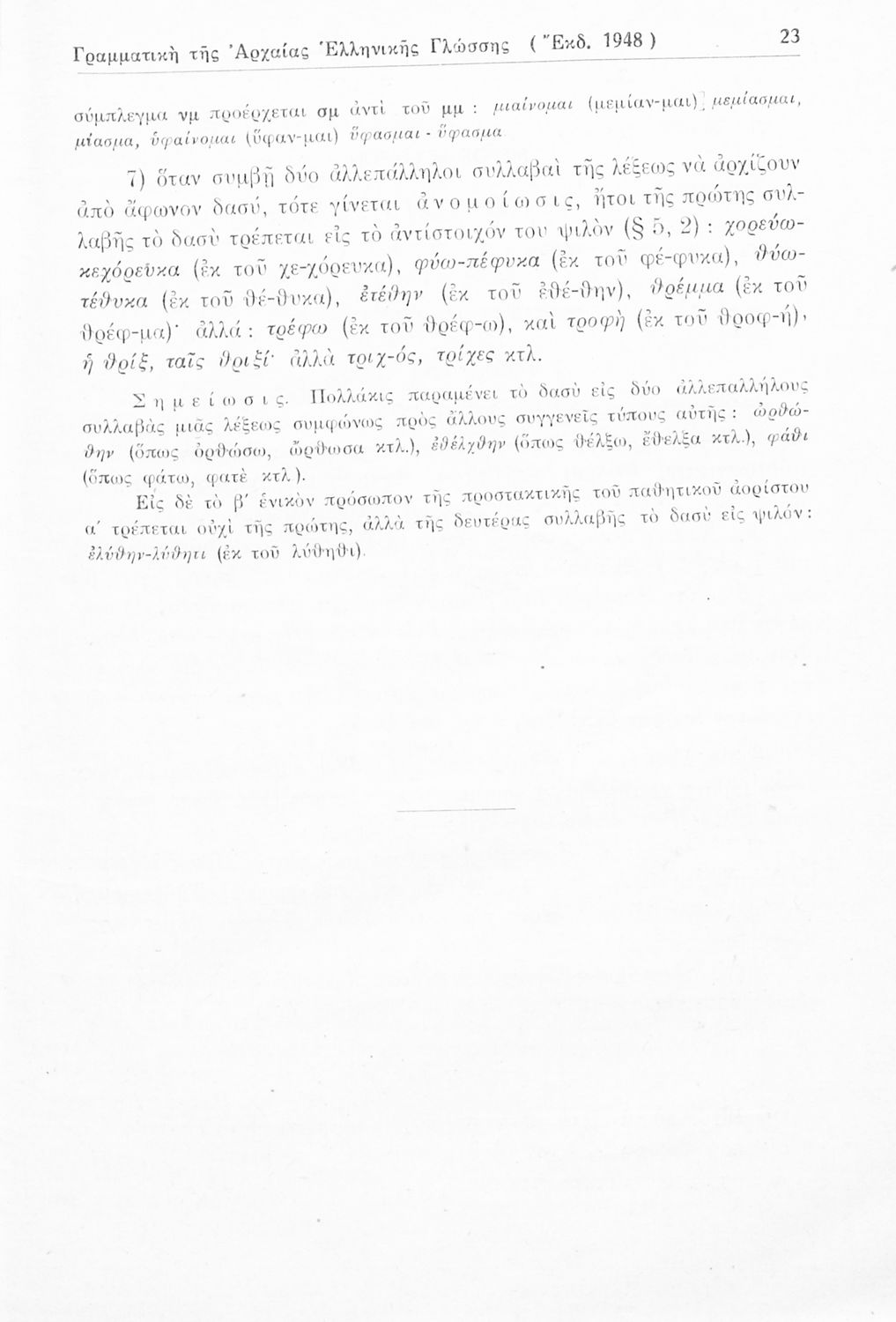 Σχολικό εγχειρίδιο Αρχαίων Ελληνικών Γυμνασίου που περιέχει τους κανόνες γραμματικής και είναι χωρισμένο σε φθογγολογικό, τυπολογικό και ετυμολογικό μέρος. Περιέχει και κατάλογο ανωμάλων ρημάτων.