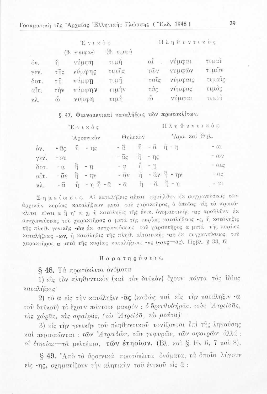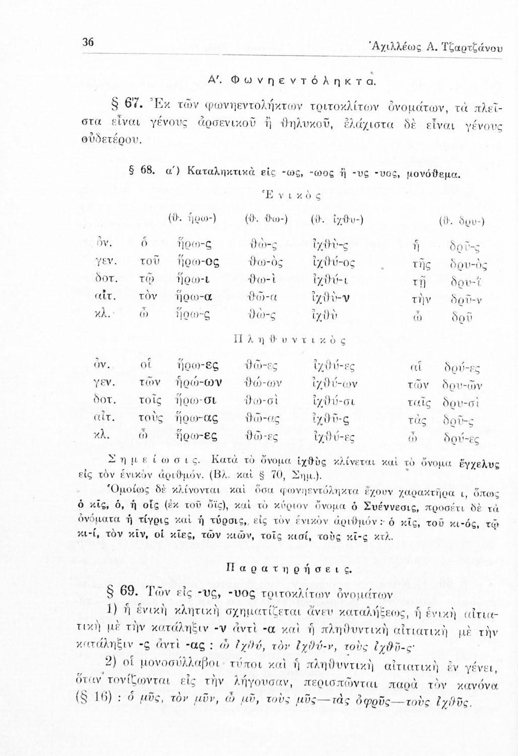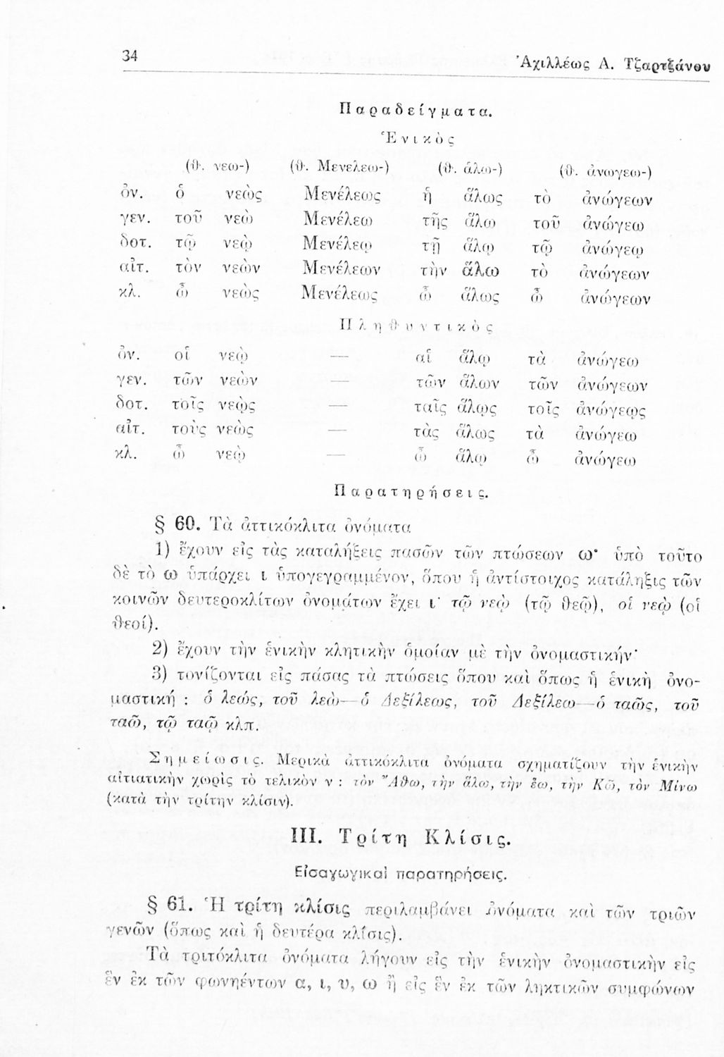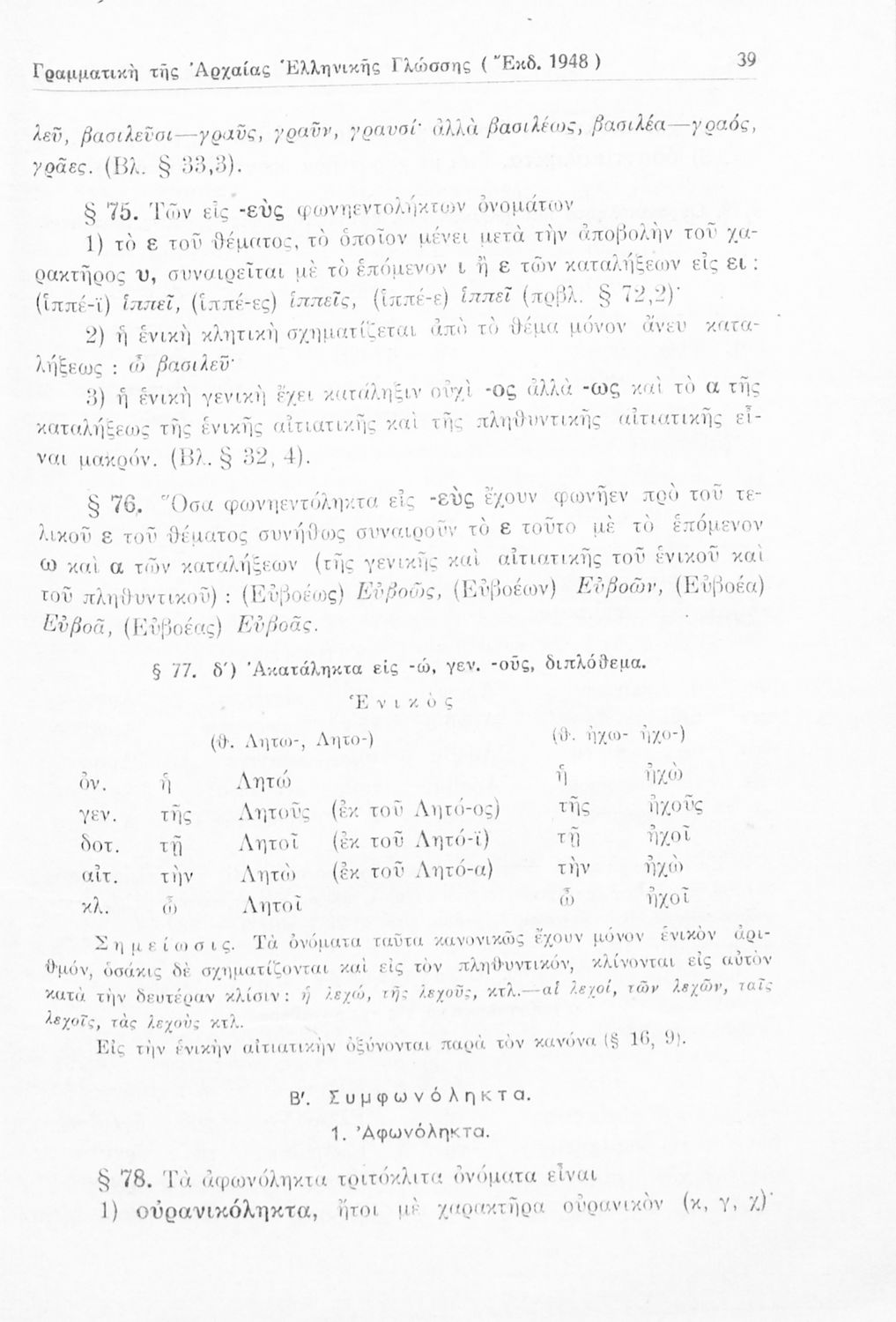 Σχολικό εγχειρίδιο Αρχαίων Ελληνικών Γυμνασίου που περιέχει τους κανόνες γραμματικής και είναι χωρισμένο σε φθογγολογικό, τυπολογικό και ετυμολογικό μέρος. Περιέχει και κατάλογο ανωμάλων ρημάτων.
