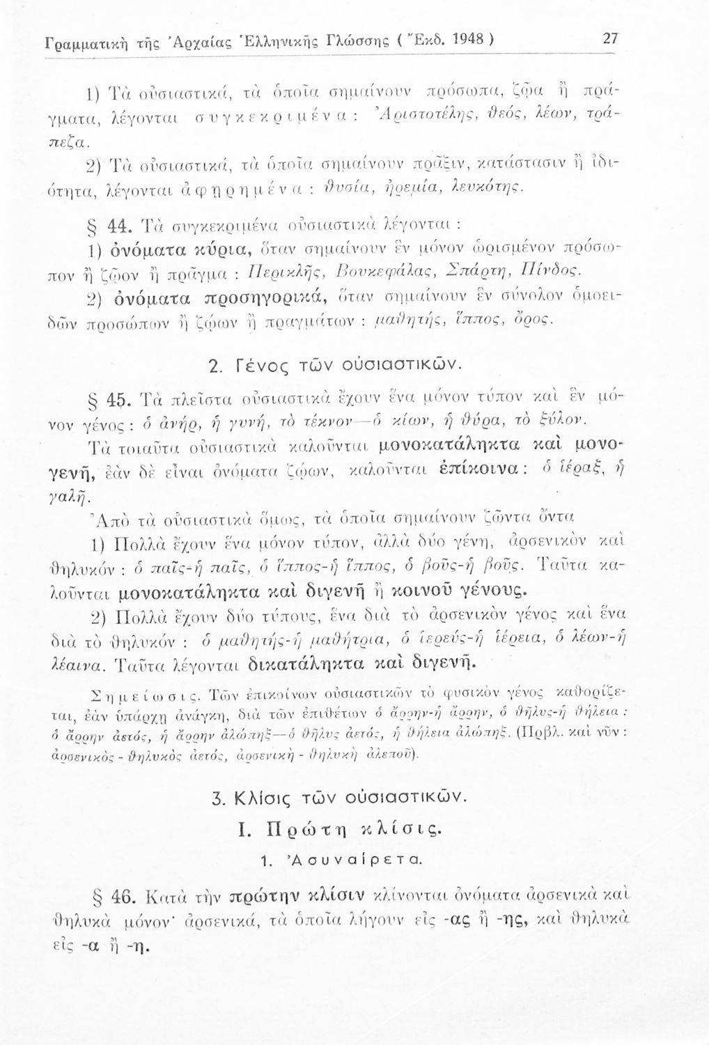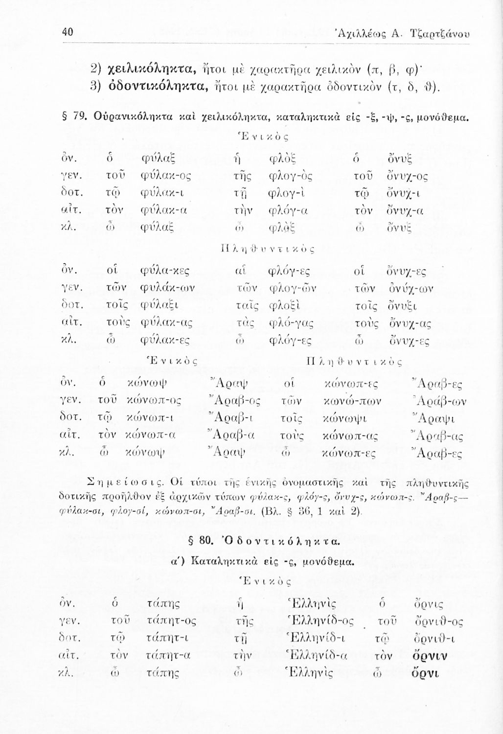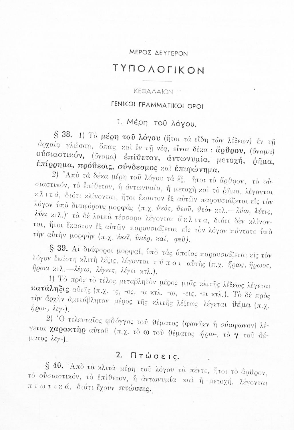 Σχολικό εγχειρίδιο Αρχαίων Ελληνικών Γυμνασίου που περιλαμβάνει τους κανόνες γραμματικής και είναι χωρισμένη στο φθογγολογικό, το τυπολογικό και ετυμολογικό μέρος.
