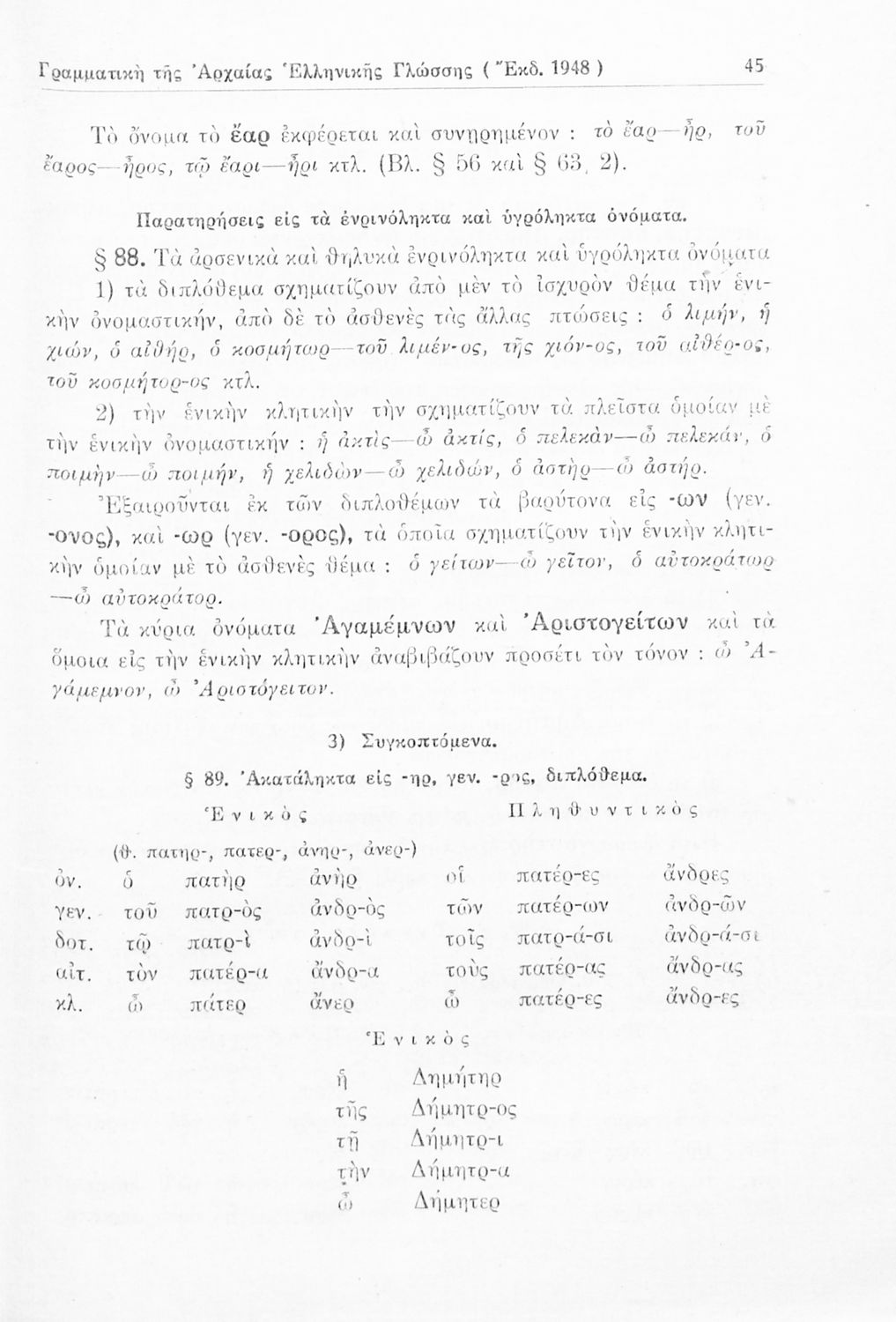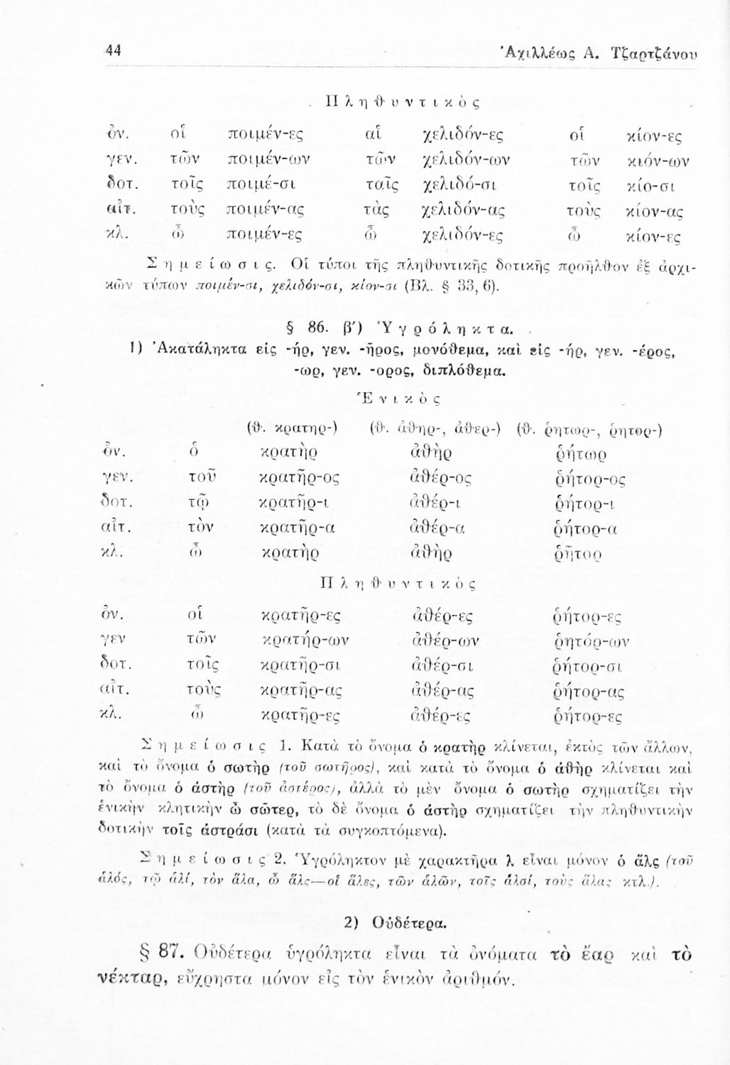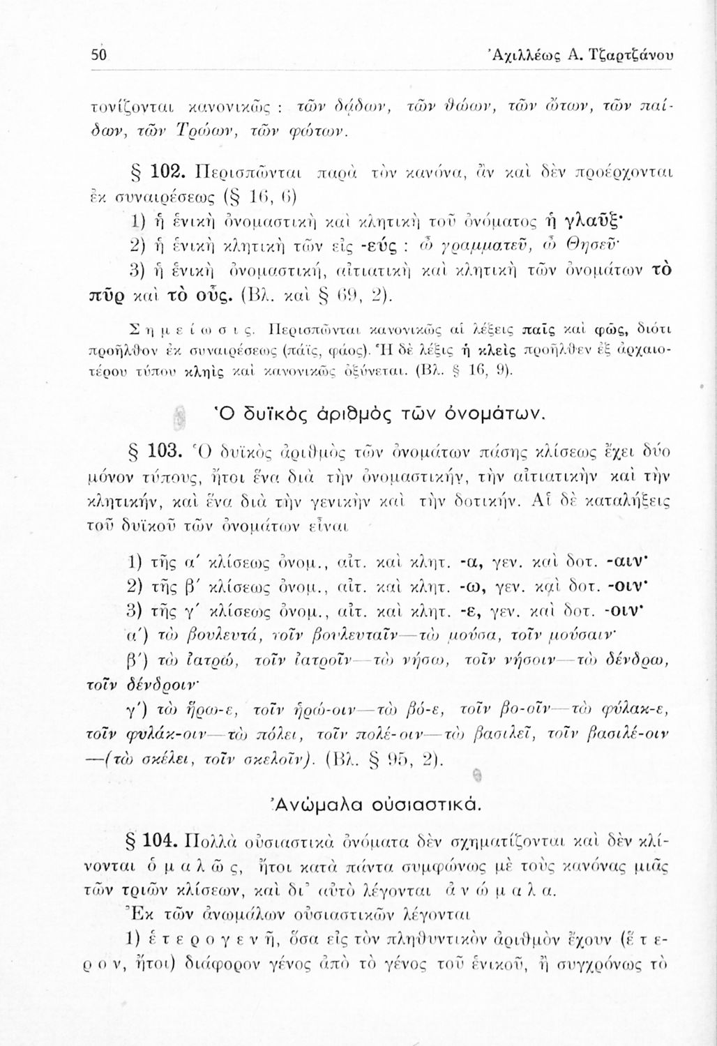 Σχολικό εγχειρίδιο Αρχαίων Ελληνικών Γυμνασίου που περιέχει τους κανόνες γραμματικής και είναι χωρισμένο σε φθογγολογικό, τυπολογικό και ετυμολογικό μέρος. Περιέχει και κατάλογο ανωμάλων ρημάτων.