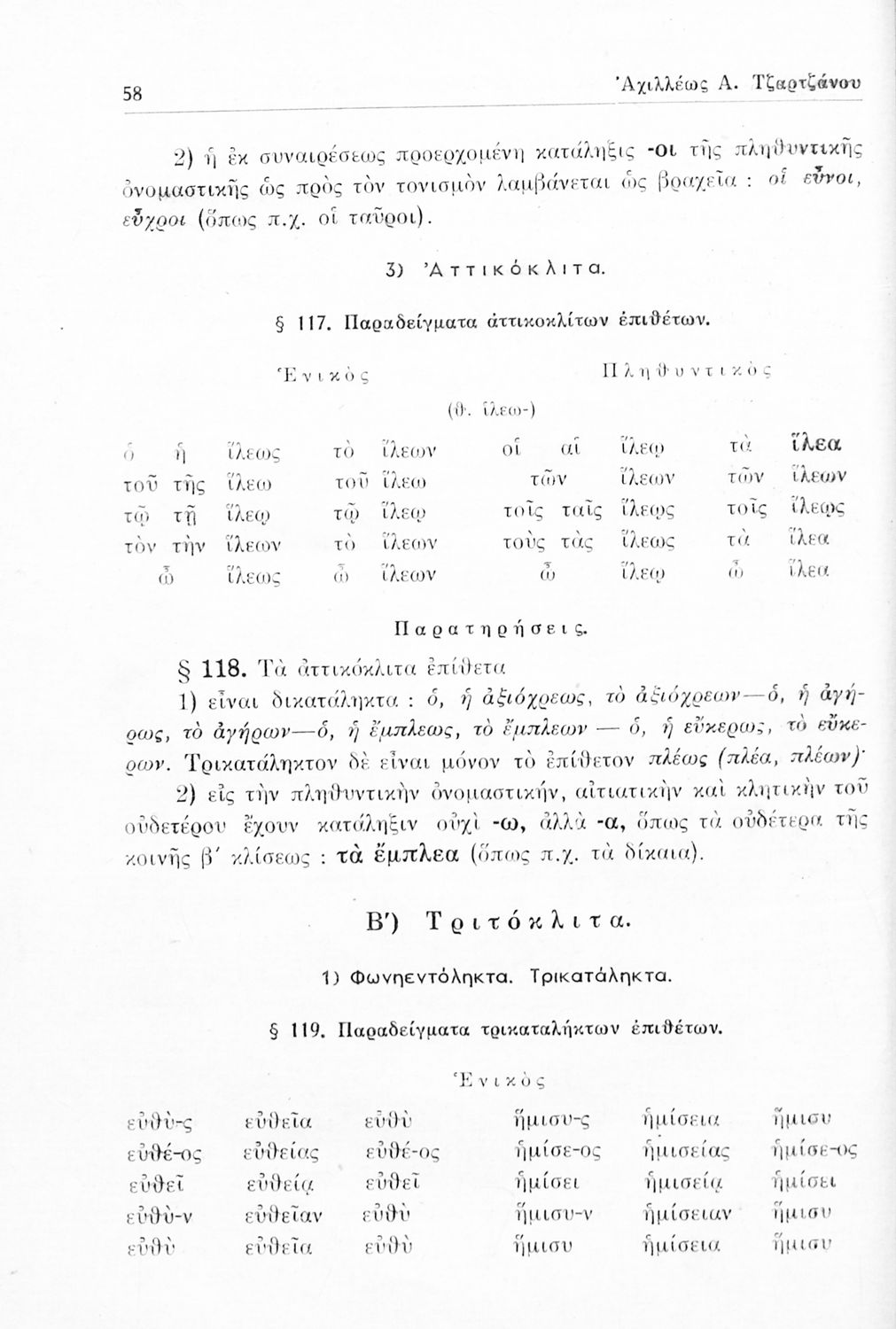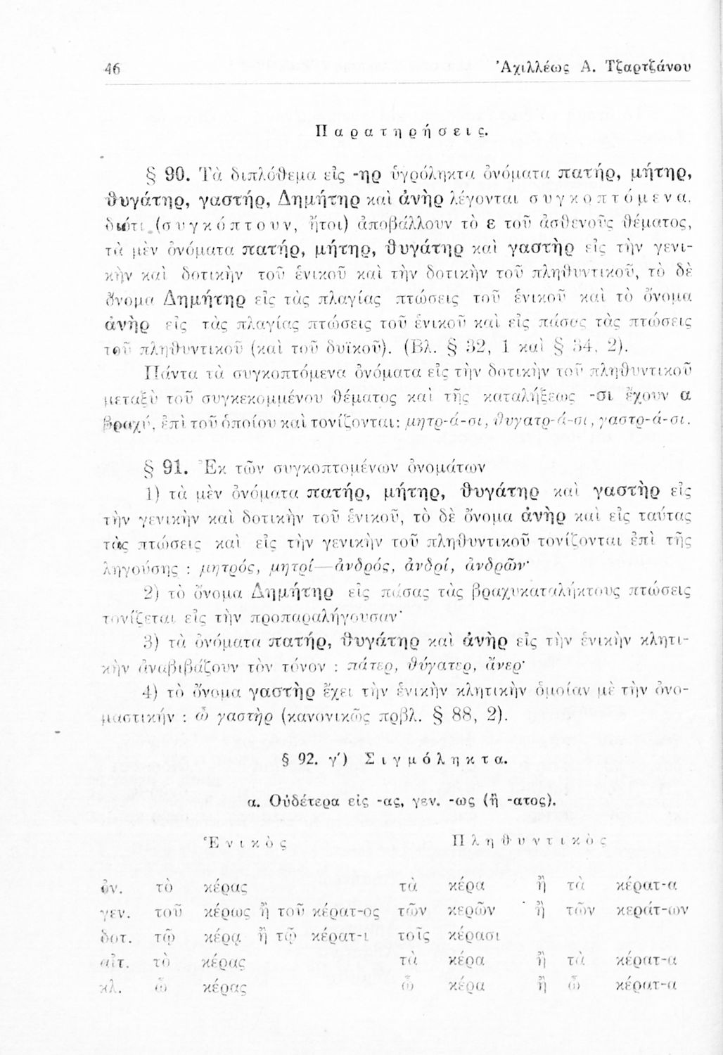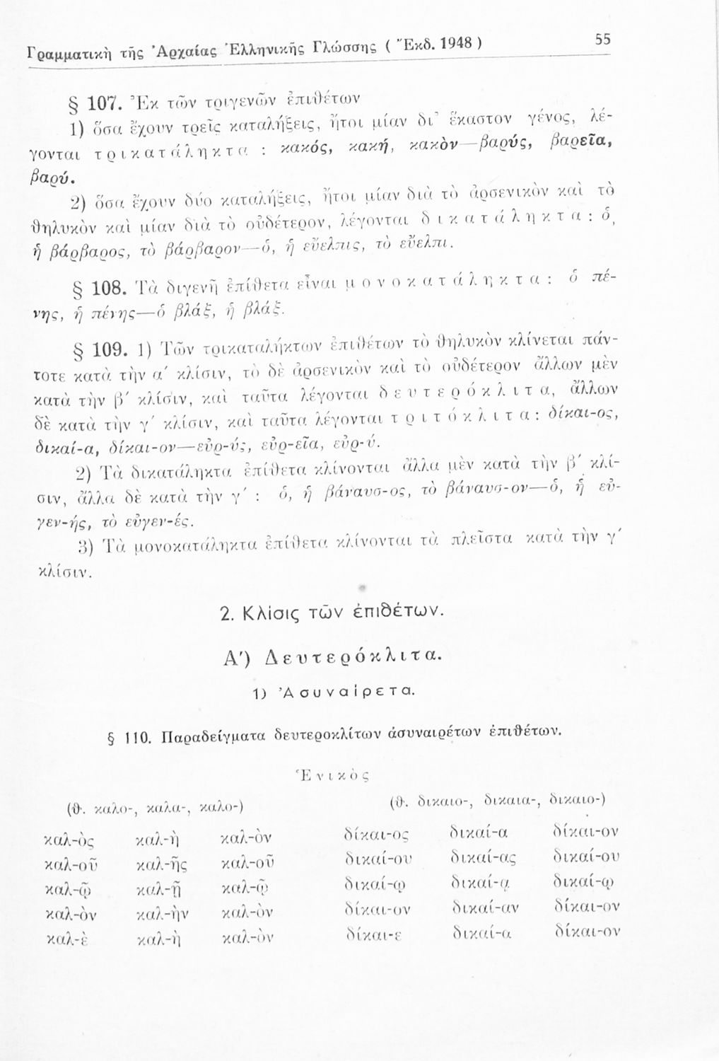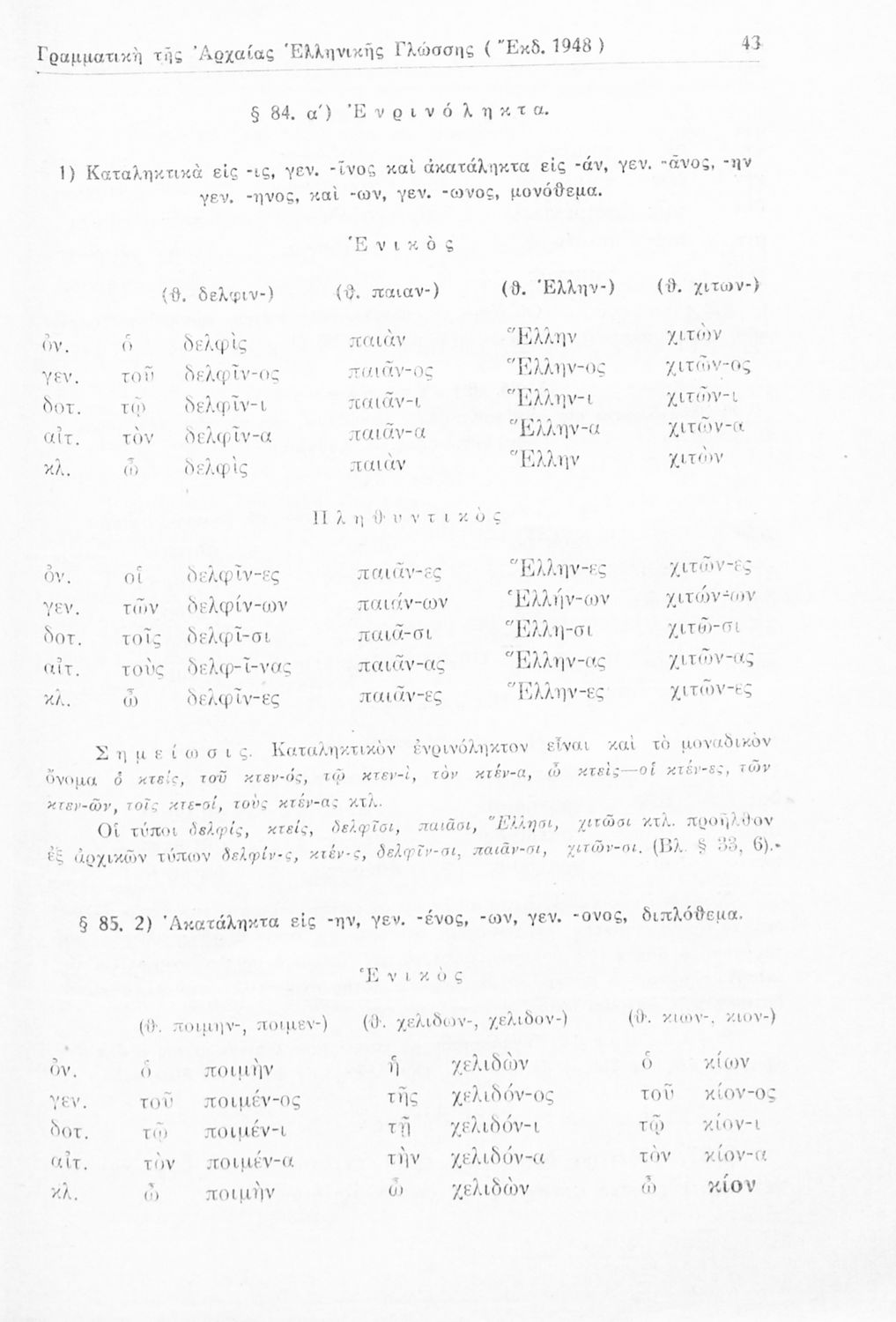 Σχολικό εγχειρίδιο Αρχαίων Ελληνικών Γυμνασίου που περιέχει τους κανόνες γραμματικής και είναι χωρισμένο σε φθογγολογικό, τυπολογικό και ετυμολογικό μέρος. Περιέχει και κατάλογο ανωμάλων ρημάτων.