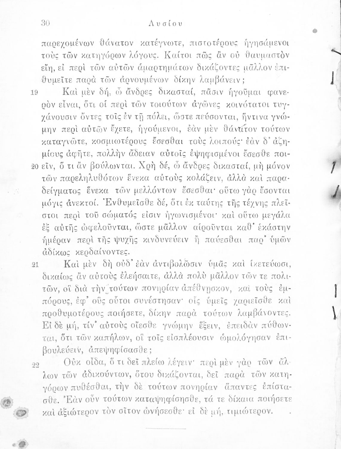 Σχολικό εγχειρίδιο της Γ΄ Γυμνασίου για τα Αρχαία Ελληνικά. Περιλαμβάνει Λόγους του Λυσία, Υπέρ Μαντιθέου, Κατά Εργοκλέους, Περί του σηκού απολογία, Υπέρ του αδυνάτου, Κατά των σιτοπωλών και ερμηνευτικές, ...