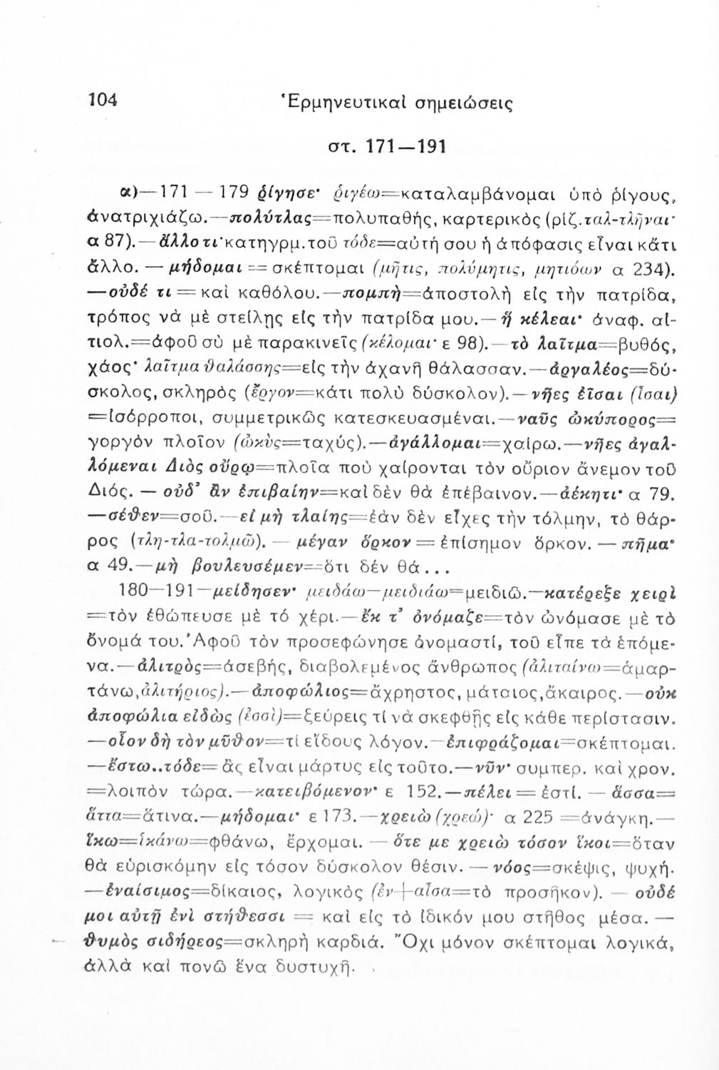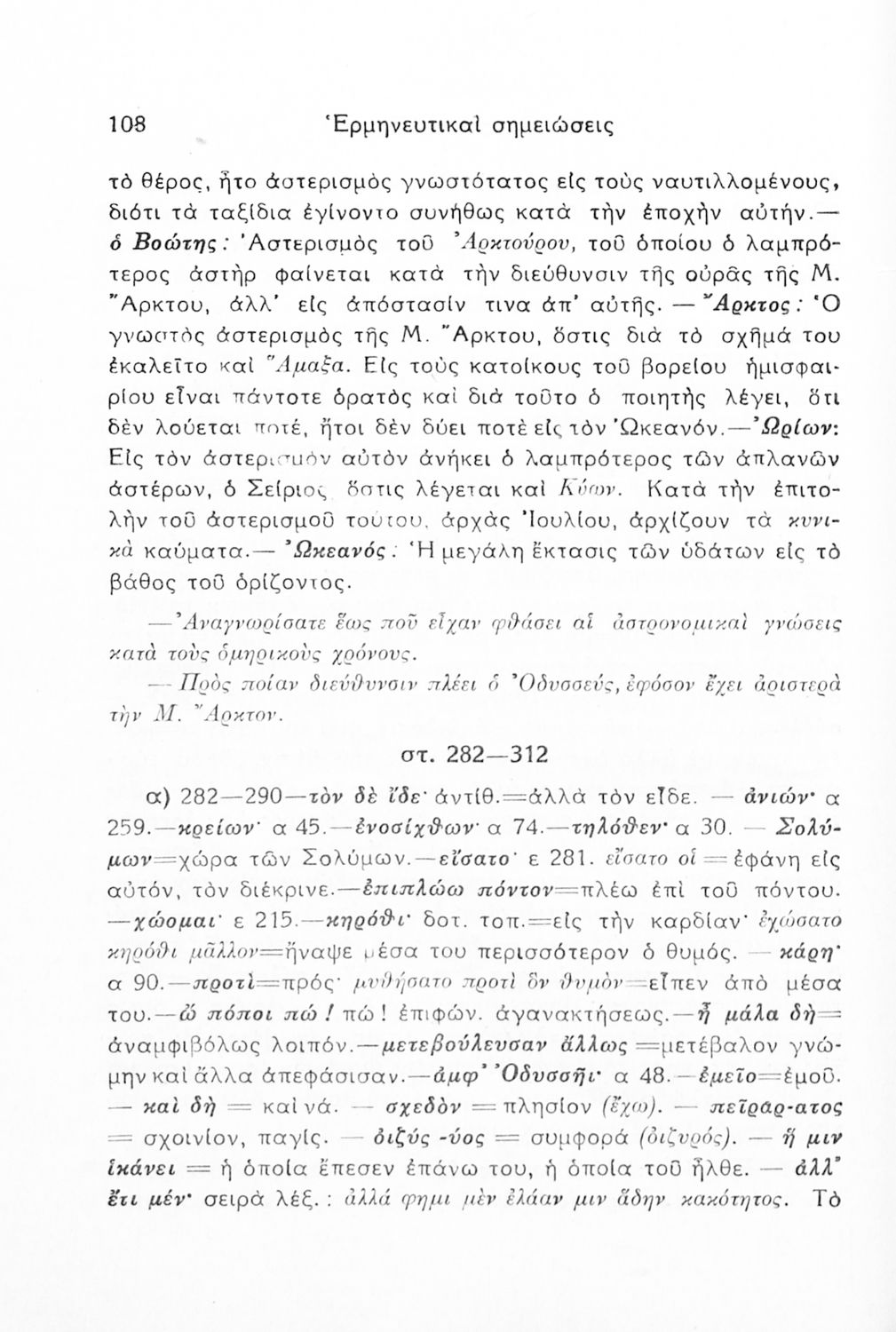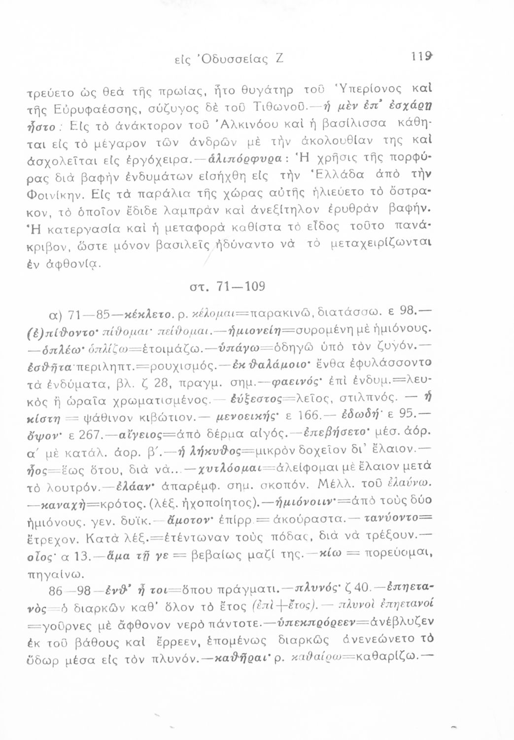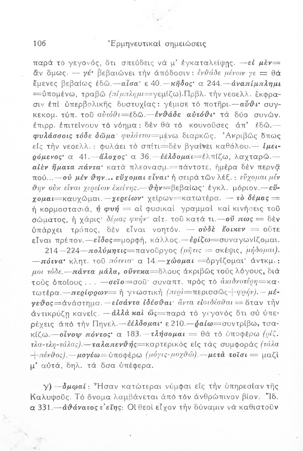 Σχολικό εγχειρίδιο Αρχαίων Ελληνικών Γυμνασίου που περιλαμβάνει αποσπάσματα από τις ραψωδίες της Οδύσσειας, ερμηνευτικά και πραγματολογικά σχόλια, και λεξιλογικές παρατηρήσεις.