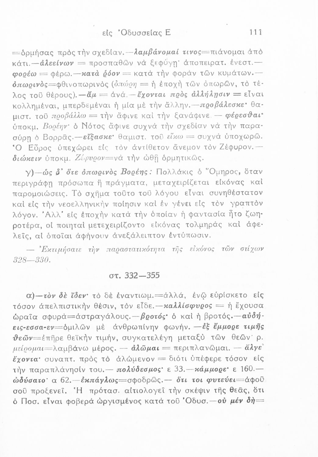 Σχολικό εγχειρίδιο Αρχαίων Ελληνικών Ε΄ Γυμνασίου που περιλαμβάνει εισαγωγικά σχόλια για τις αρχές της ελληνικής ποίησης, βιογραφία και εργογραφία του Όμηρου, αποσπάσματα από ραψωδίες της Οδύσσειας και ερμηνευτικά, πραγματολογικά και σημασιολογικά σχόλια.