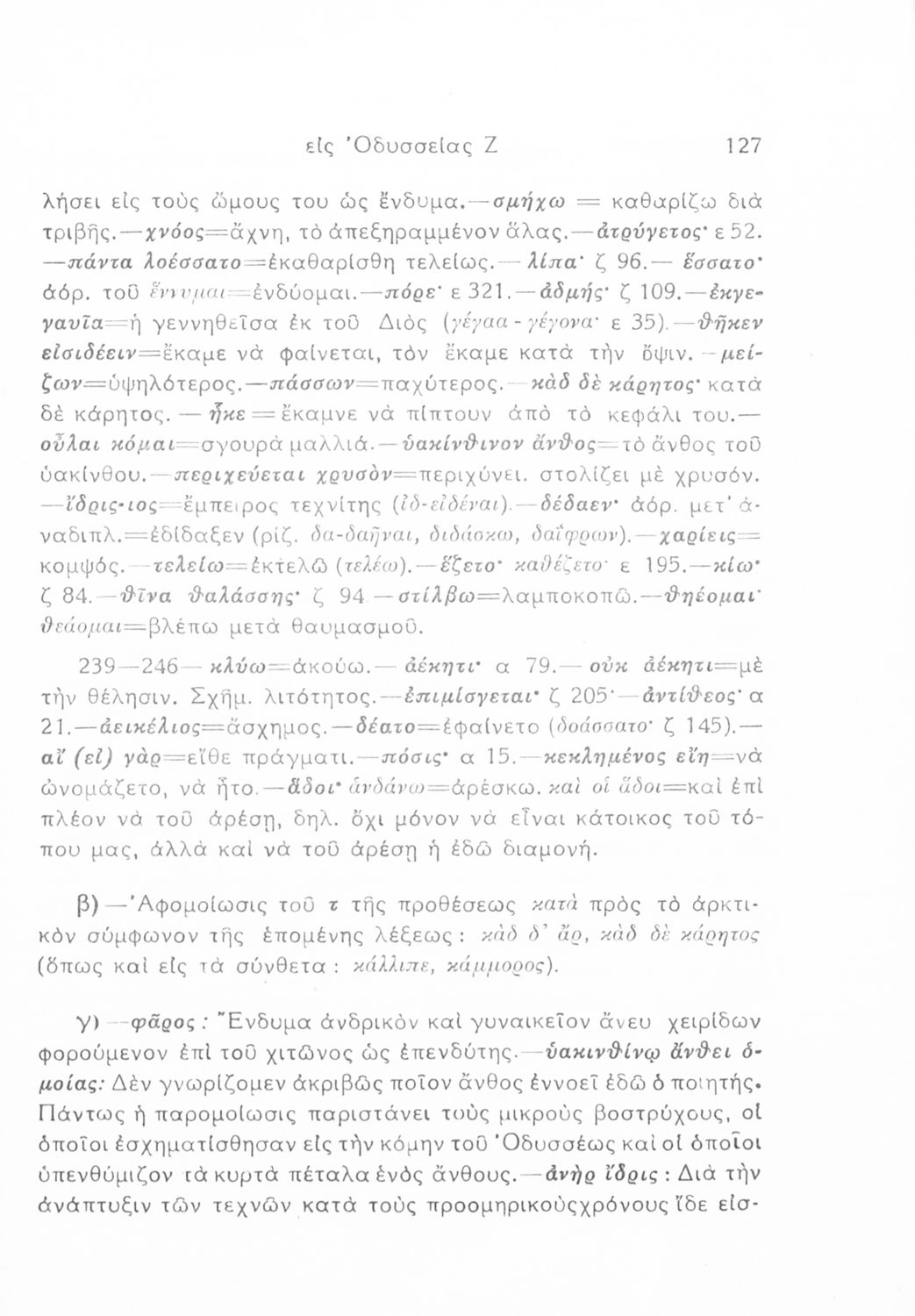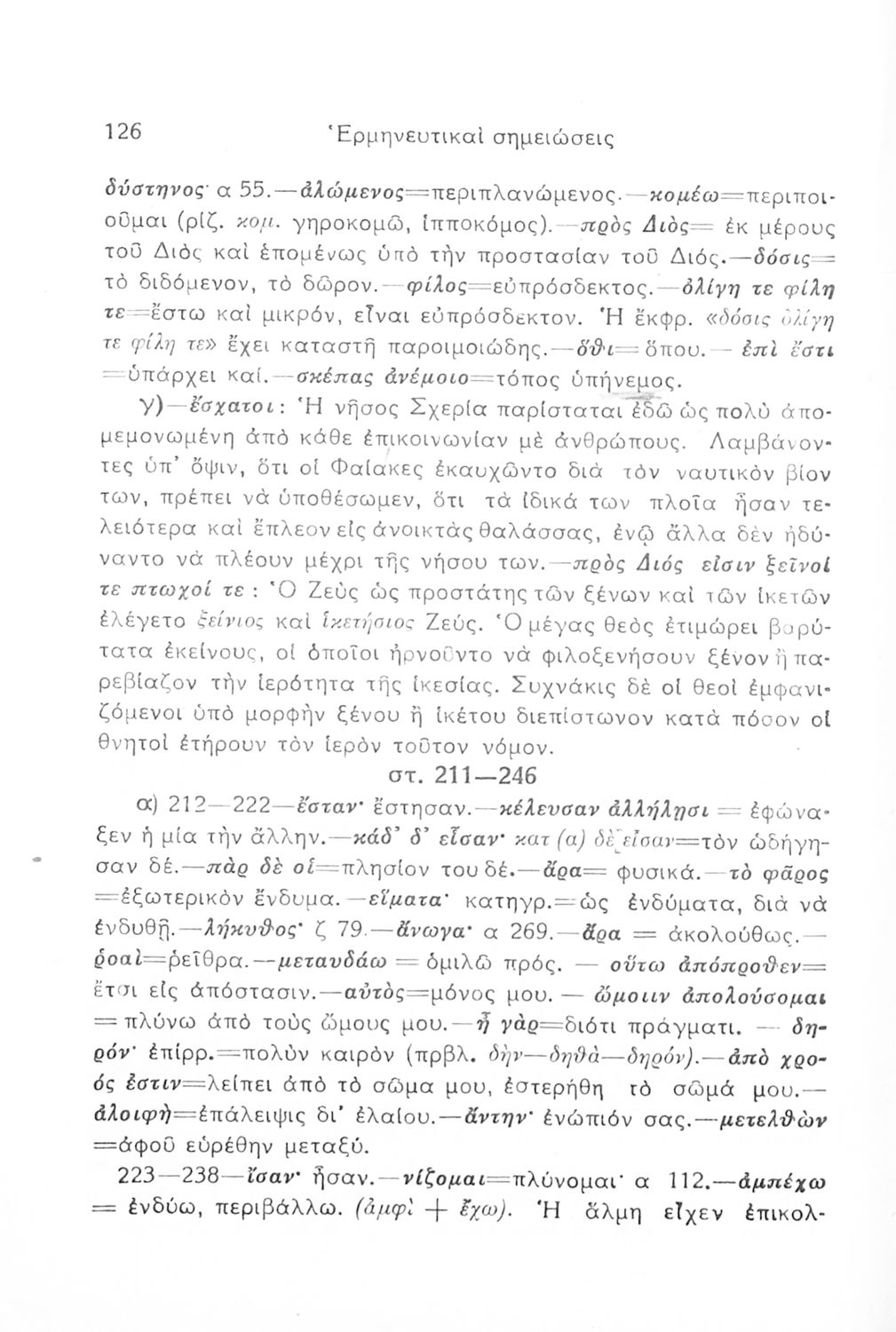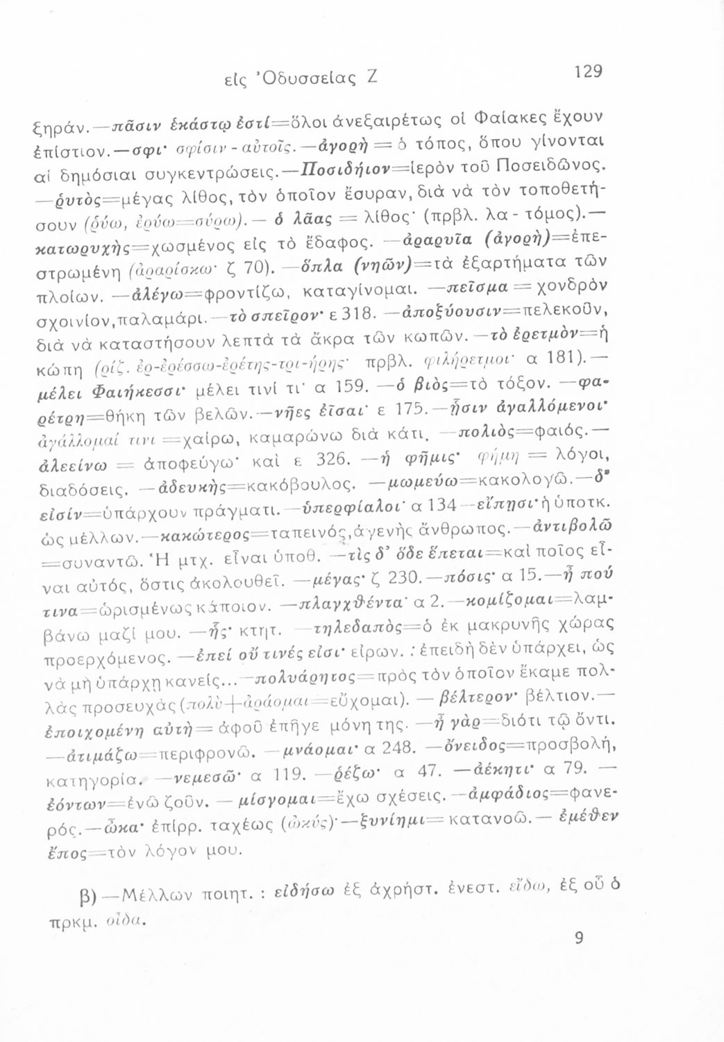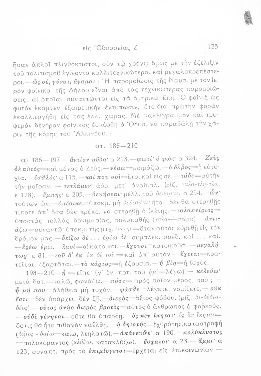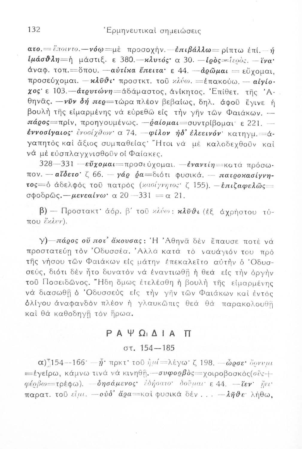 Σχολικό εγχειρίδιο Αρχαίων Ελληνικών Γυμνασίου που περιλαμβάνει αποσπάσματα από τις ραψωδίες της Οδύσσειας, ερμηνευτικά και πραγματολογικά σχόλια, και λεξιλογικές παρατηρήσεις.