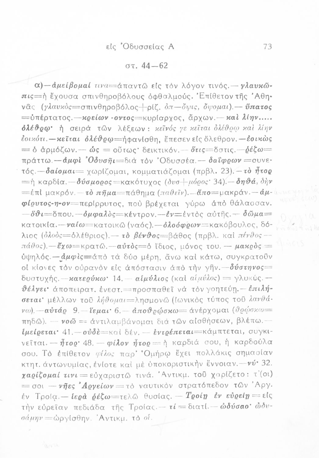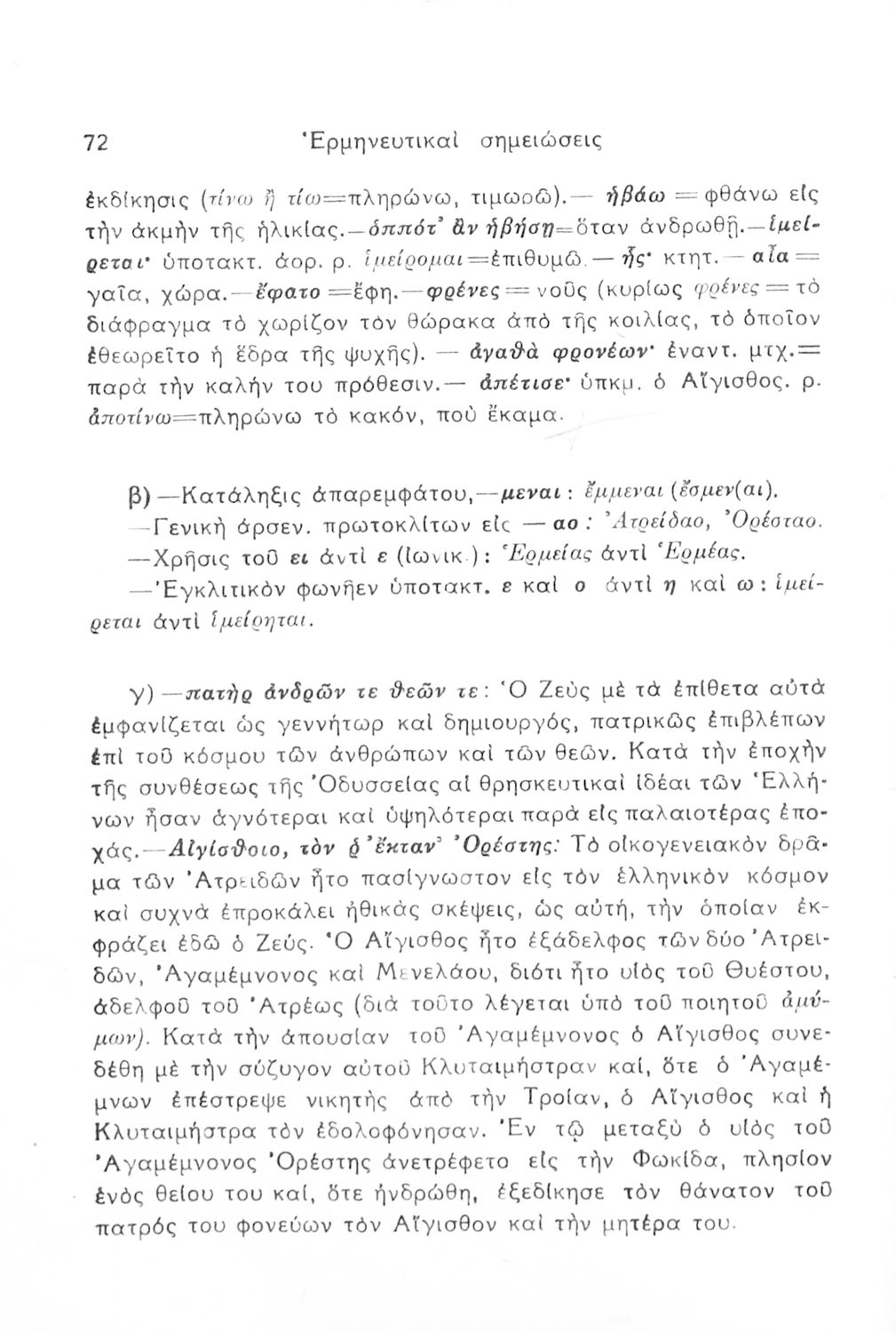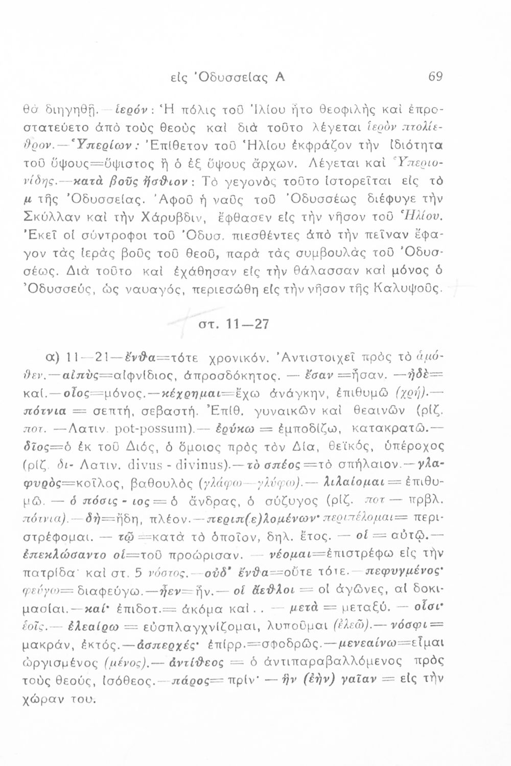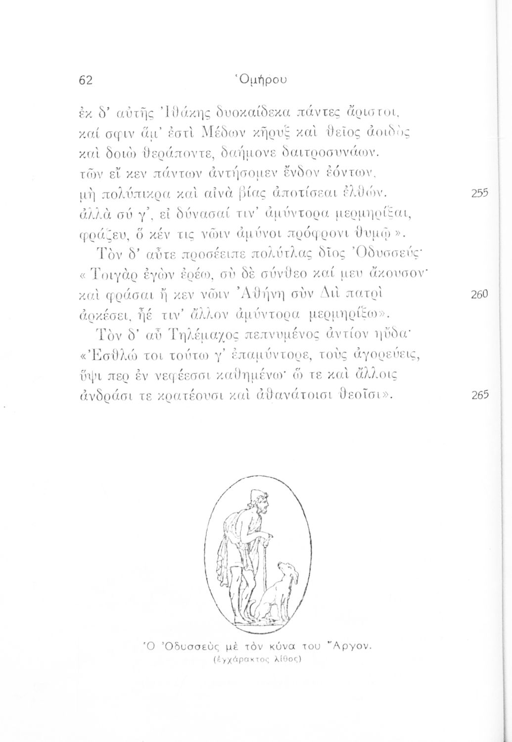 Σχολικό εγχειρίδιο Αρχαίων Ελληνικών Γυμνασίου που περιλαμβάνει αποσπάσματα από τις ραψωδίες της Οδύσσειας, ερμηνευτικά και πραγματολογικά σχόλια, και λεξιλογικές παρατηρήσεις.