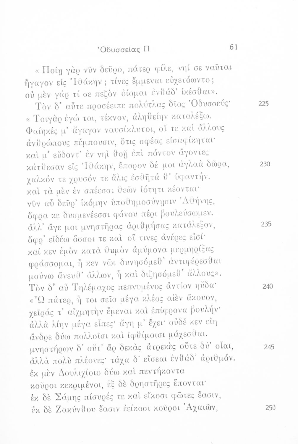 Σχολικό εγχειρίδιο της Ε΄ Γυμνασίου για το μάθημα των Αρχαίων Ελληνικών. Περιέχει αποσπάσματα από τις ραψωδίες της Οδύσσειας, ερμηνευτικά και πραγματολογικά σχόλια και τις γραμματικές παρατηρήσεις.