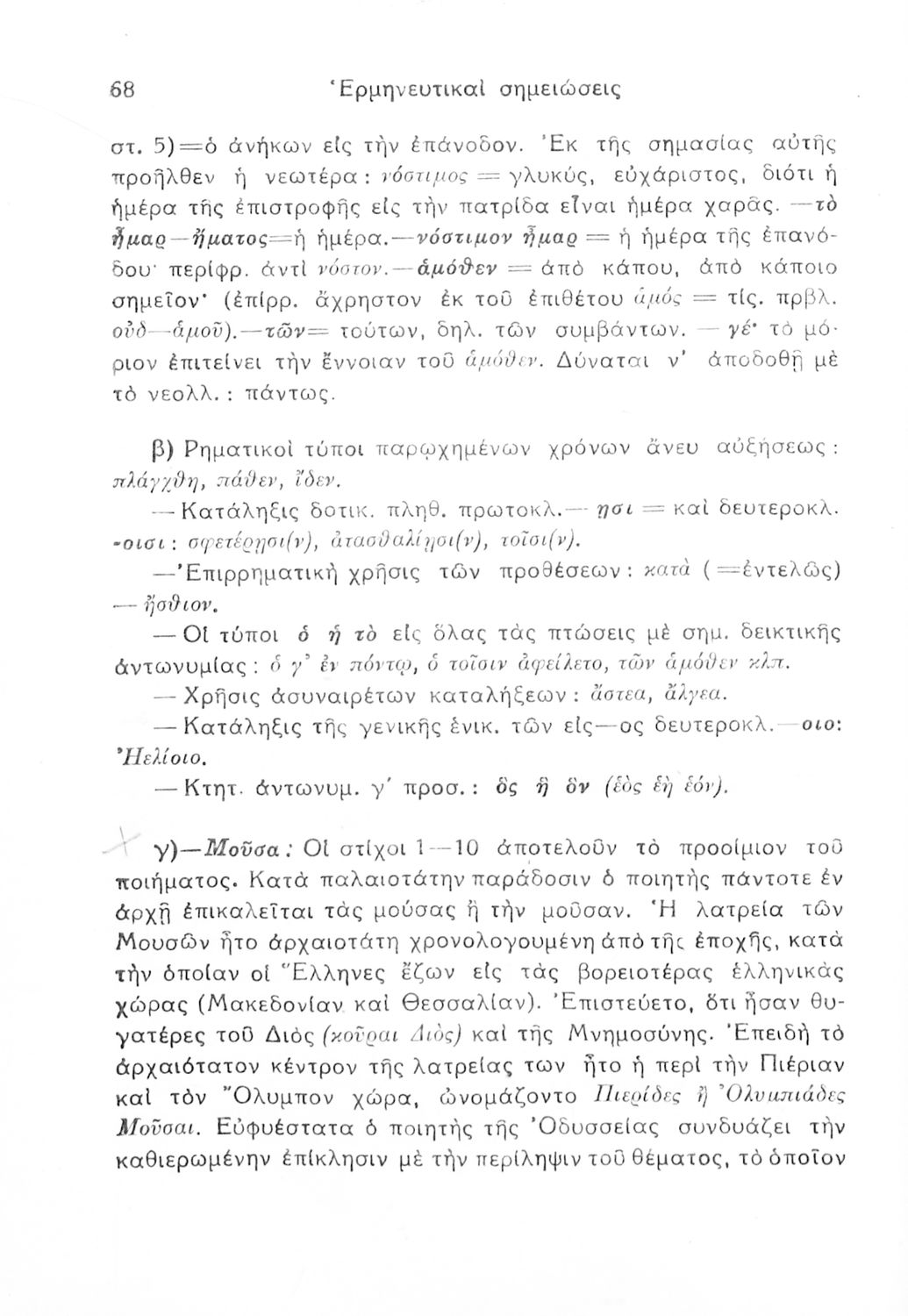 Σχολικό εγχειρίδιο Αρχαίων Ελληνικών Ε΄ Γυμνασίου που περιλαμβάνει εισαγωγικά σχόλια για τις αρχές της ελληνικής ποίησης, βιογραφία και εργογραφία του Όμηρου, αποσπάσματα από ραψωδίες της Οδύσσειας και ερμηνευτικά, πραγματολογικά και σημασιολογικά σχόλια.