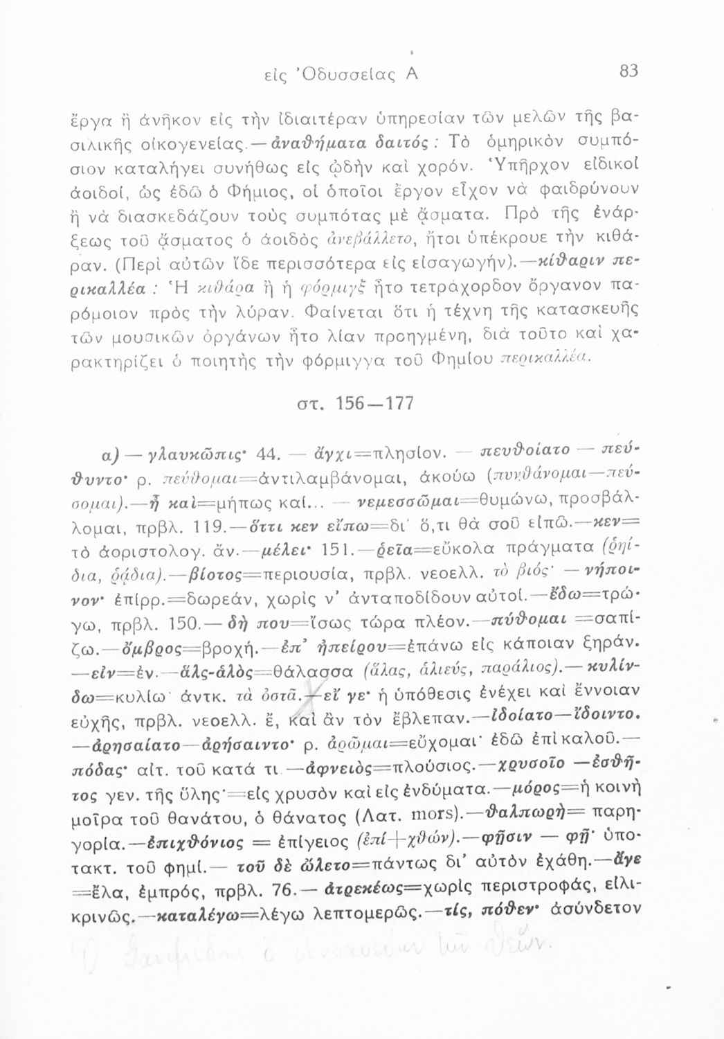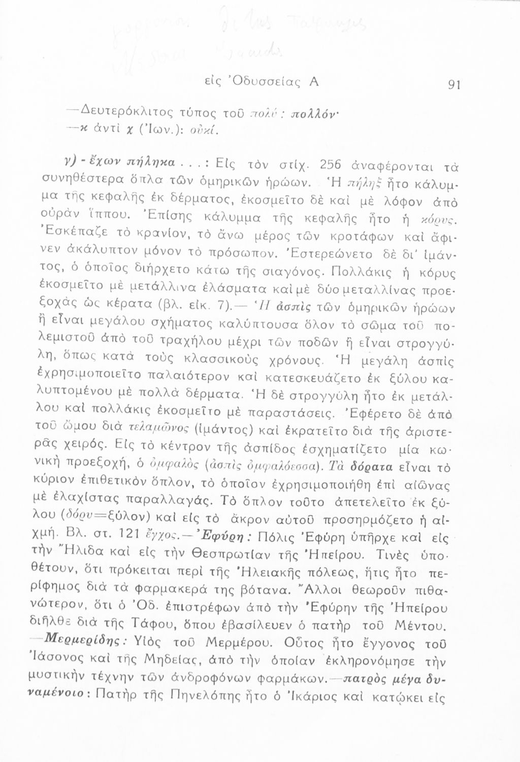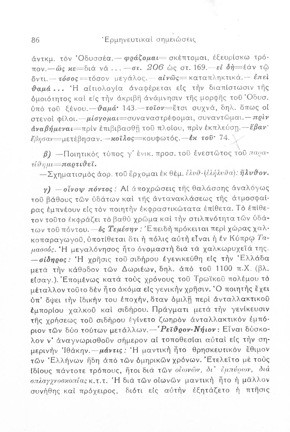 Σχολικό εγχειρίδιο Αρχαίων Ελληνικών Γυμνασίου που περιλαμβάνει αποσπάσματα από τις ραψωδίες της Οδύσσειας, ερμηνευτικά και πραγματολογικά σχόλια, και λεξιλογικές παρατηρήσεις.