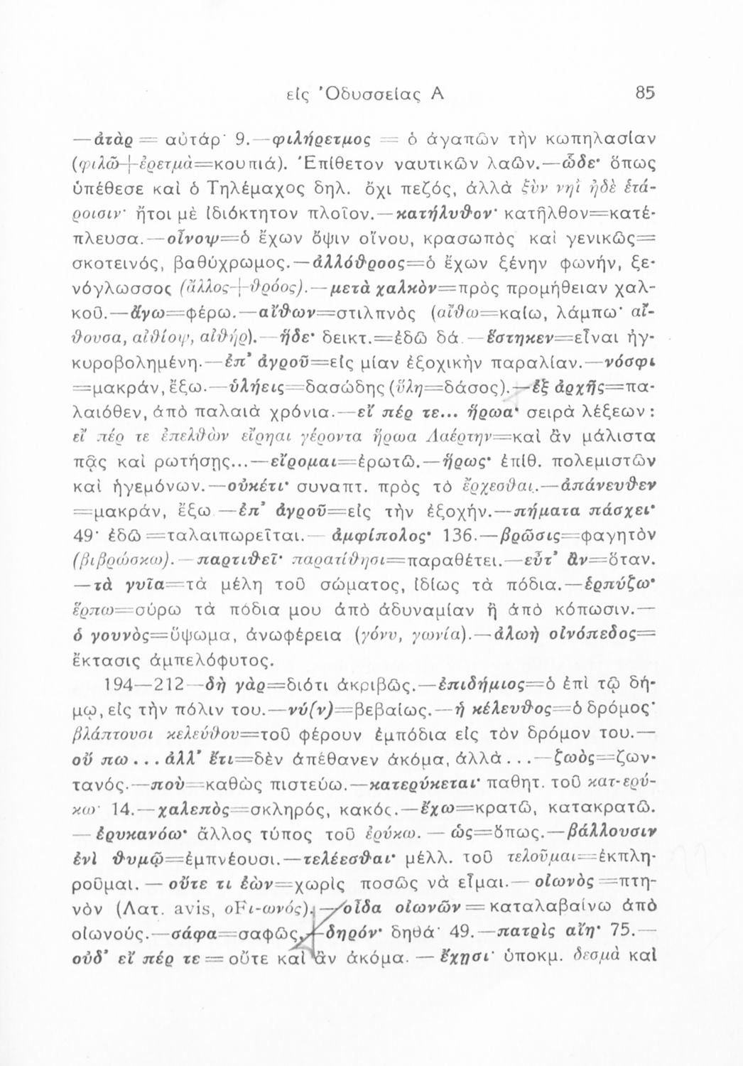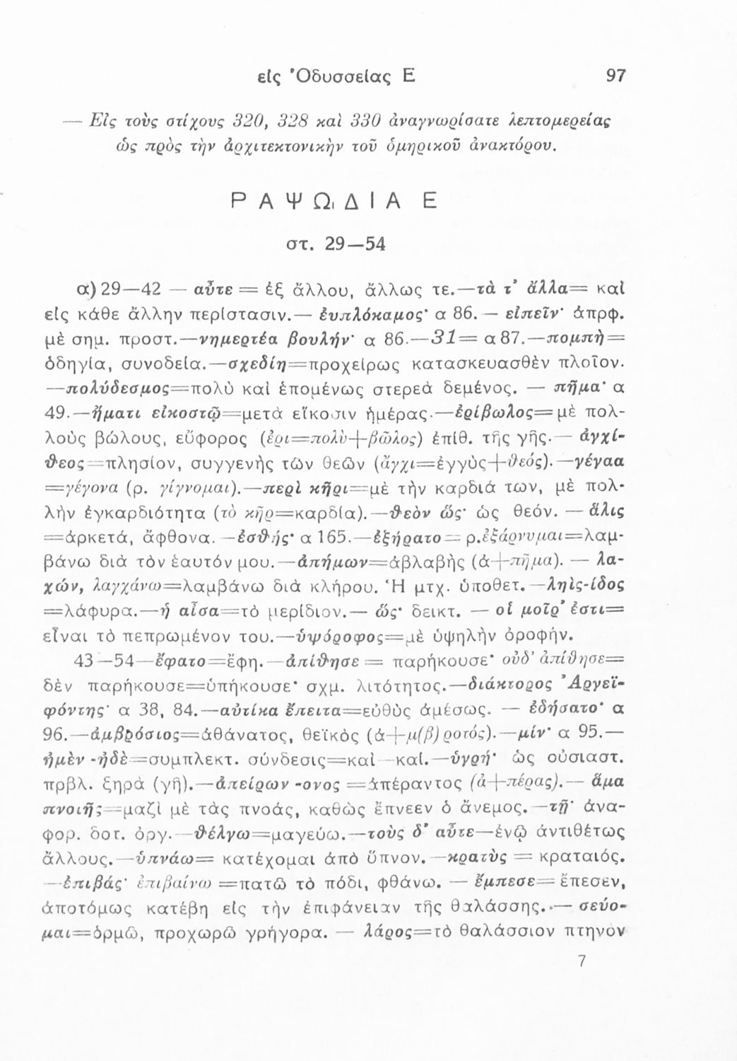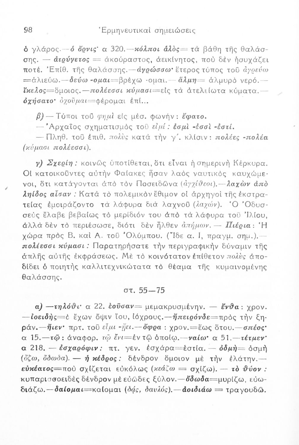 Σχολικό εγχειρίδιο Αρχαίων Ελληνικών Γυμνασίου που περιλαμβάνει αποσπάσματα από τις ραψωδίες της Οδύσσειας, ερμηνευτικά και πραγματολογικά σχόλια, και λεξιλογικές παρατηρήσεις.