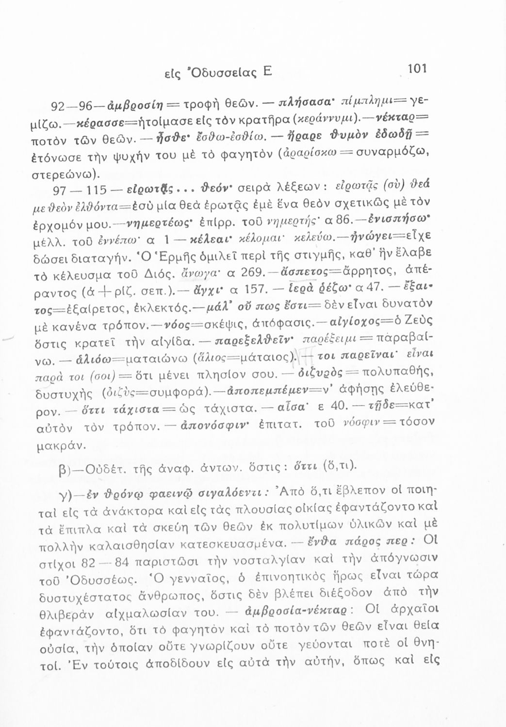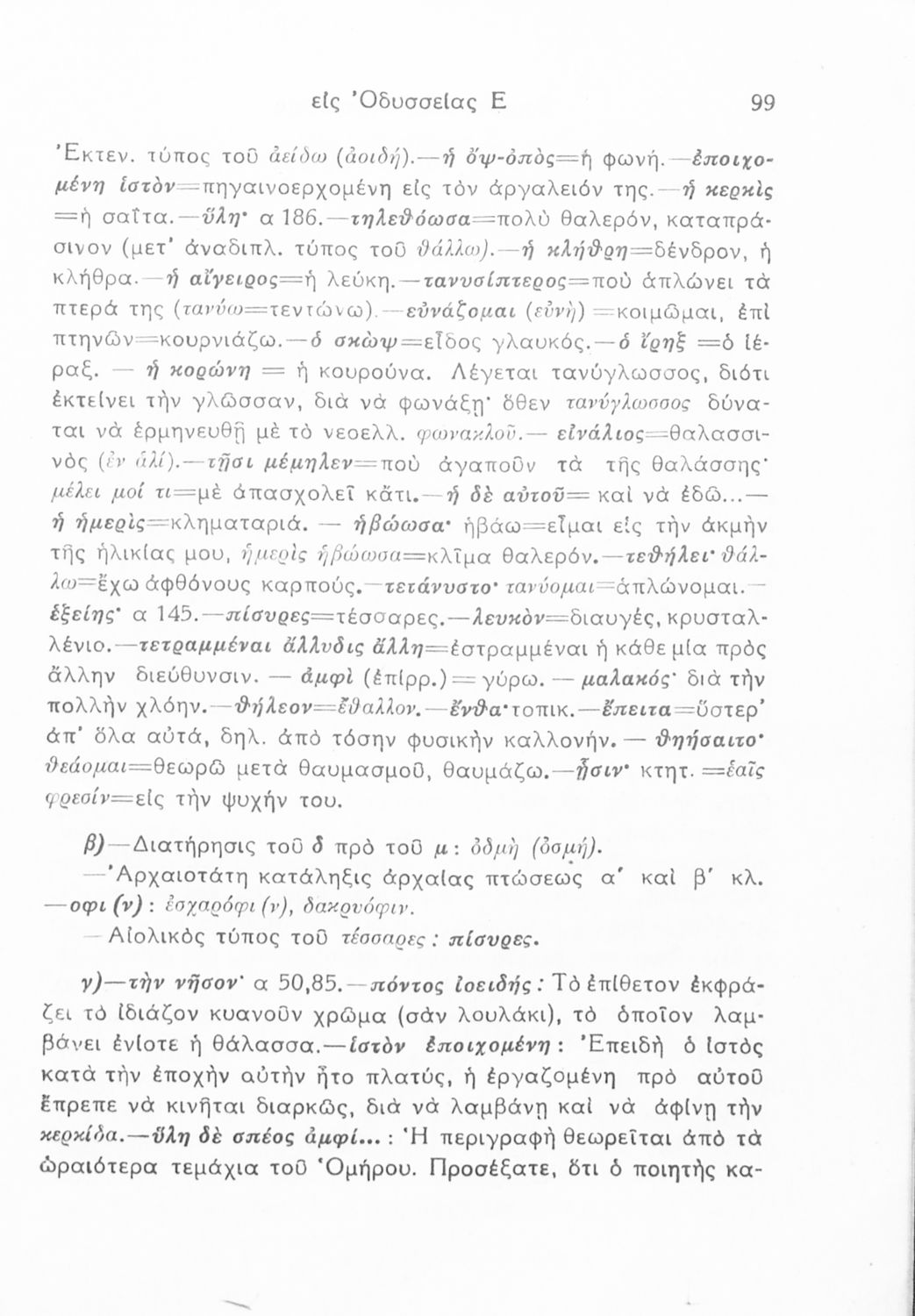 Σχολικό εγχειρίδιο Αρχαίων Ελληνικών Ε΄ Γυμνασίου που περιλαμβάνει εισαγωγικά σχόλια για τις αρχές της ελληνικής ποίησης, βιογραφία και εργογραφία του Όμηρου, αποσπάσματα από ραψωδίες της Οδύσσειας και ερμηνευτικά, πραγματολογικά και σημασιολογικά σχόλια.