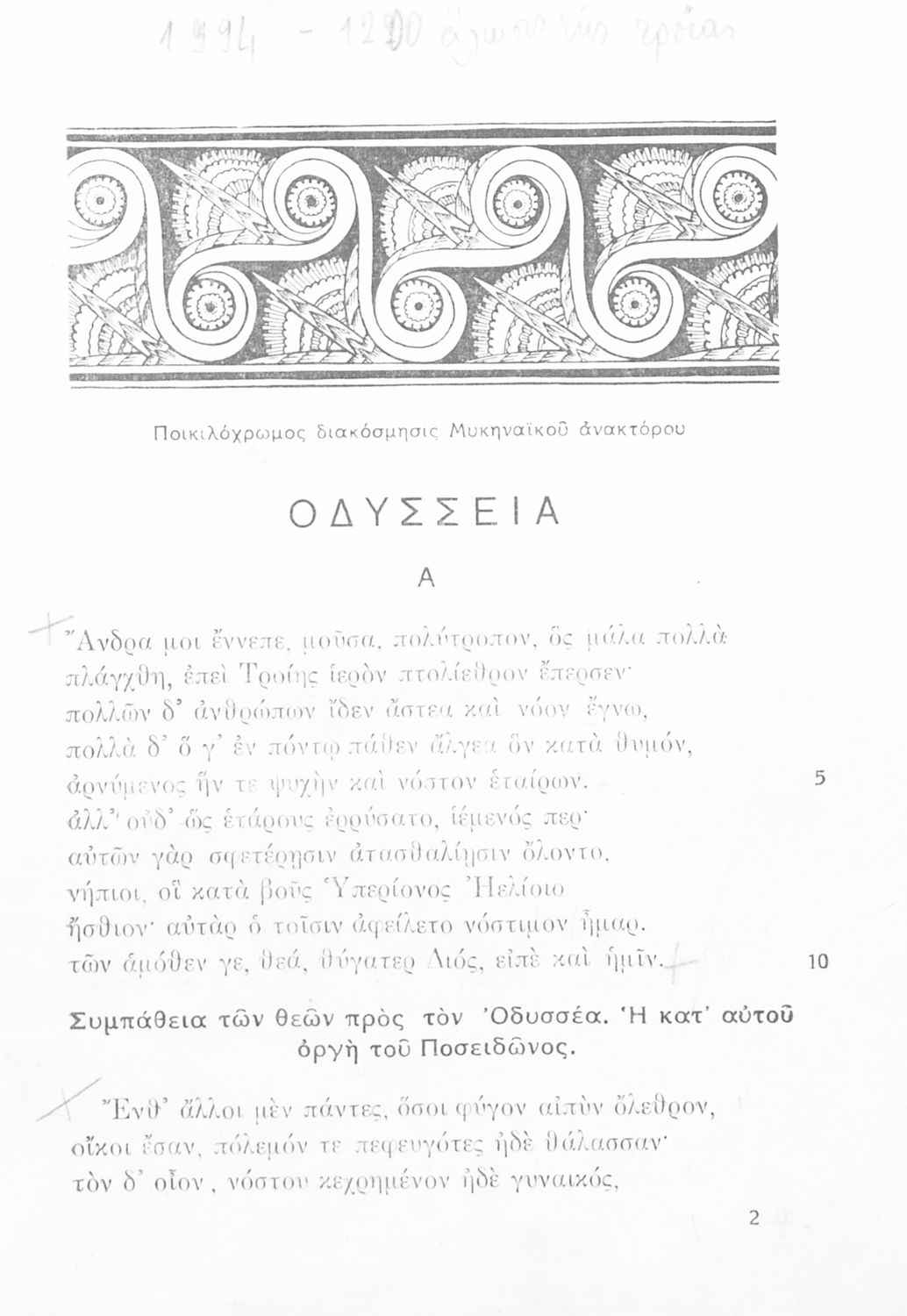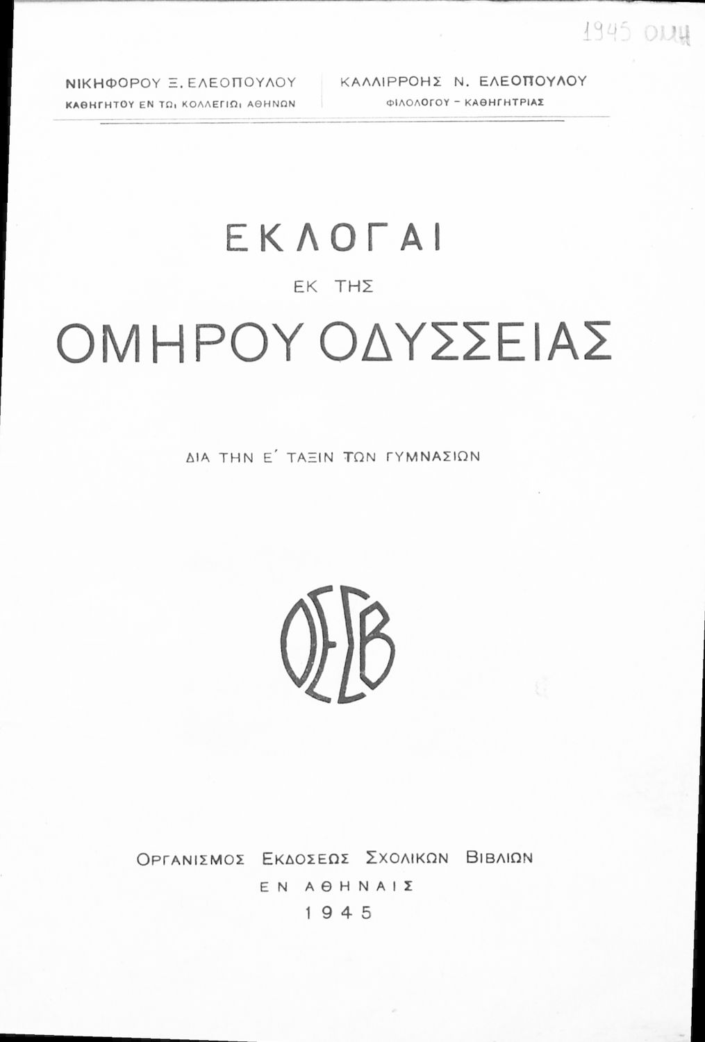 Τίτλος: Εκλογαί εκ της Ομήρου Οδύσσειας δια την Ε΄ τάξιν των Γυμνασίων