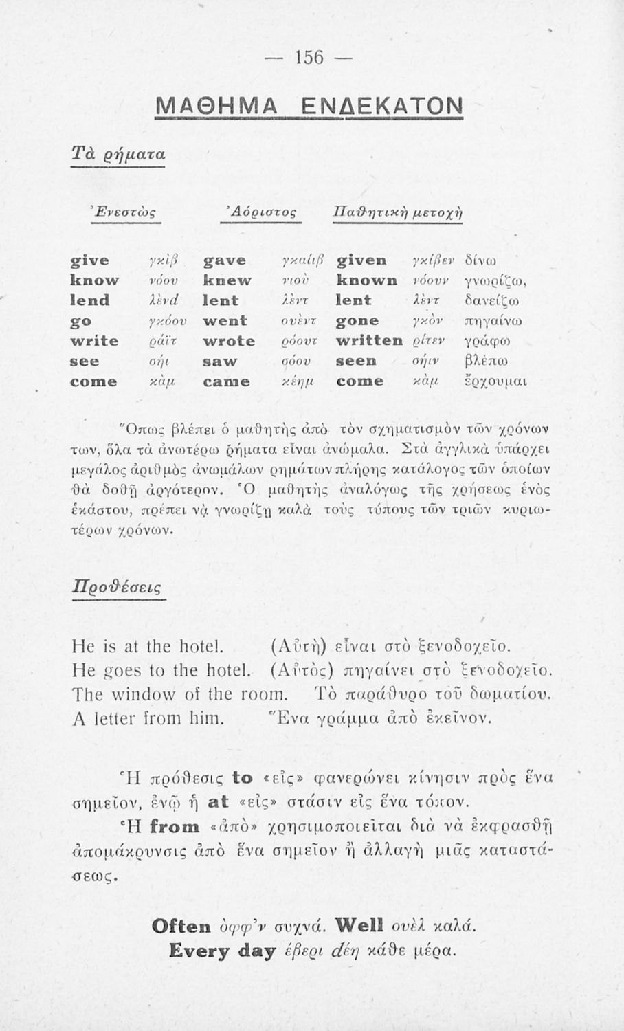 Μαθητικό βοήθημα Αγγλικών που περιλαμβάνει γραμματικούς και συντακτικούς κανόνες, λεξιλόγιο, μικρά κείμενα, μετάφραση και ασκήσεις. Περιέχει και παράρτημα με κατάλογο των ανωμάλων ρημάτων.