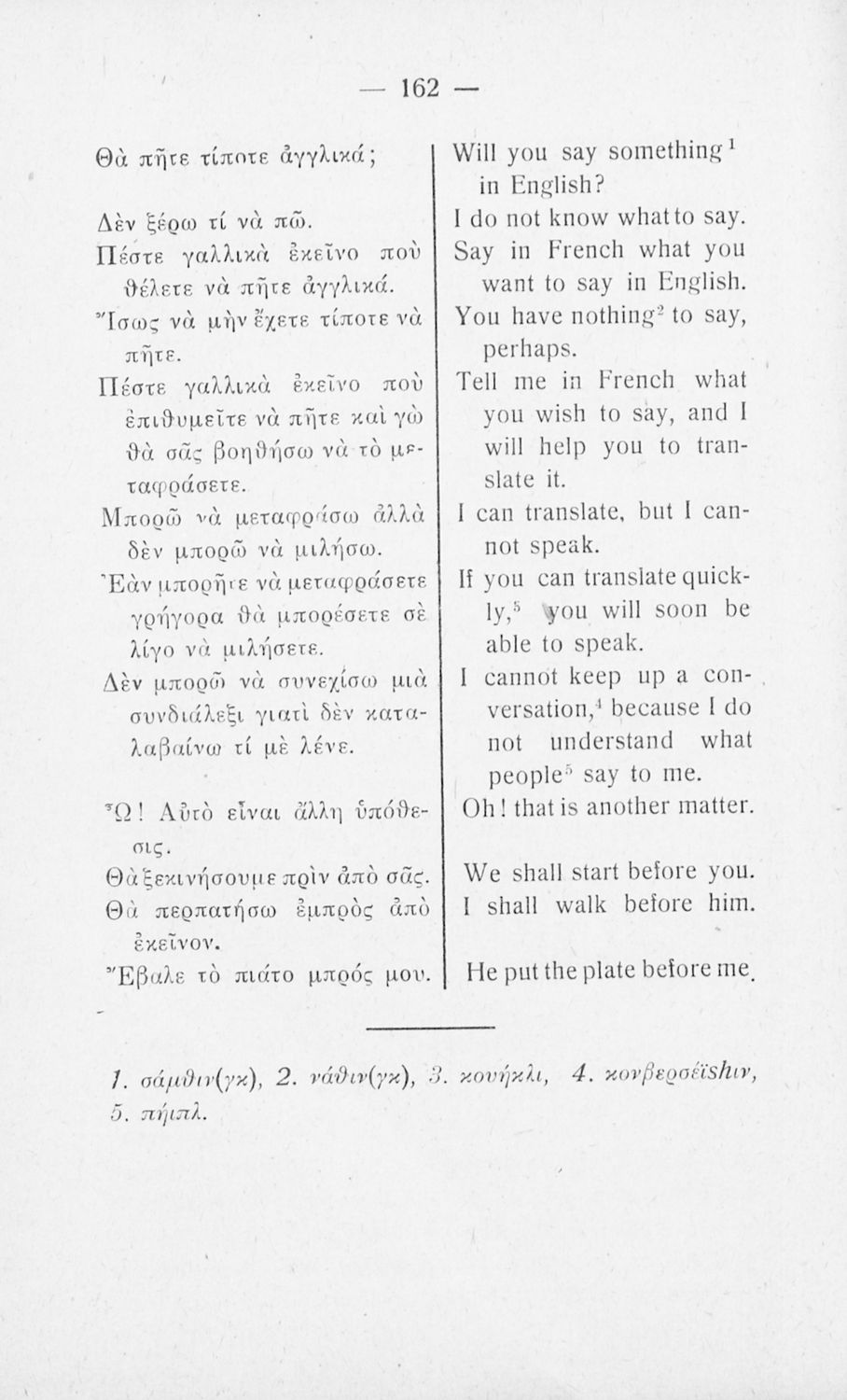 Μαθητικό βοήθημα Αγγλικών που περιλαμβάνει λέξεις και φράσεις στα ελληνικά και αγγλικά και την προφορά τους. Περιέχει και υποδείγματα επιστολών και σύντομες συνομιλίες.