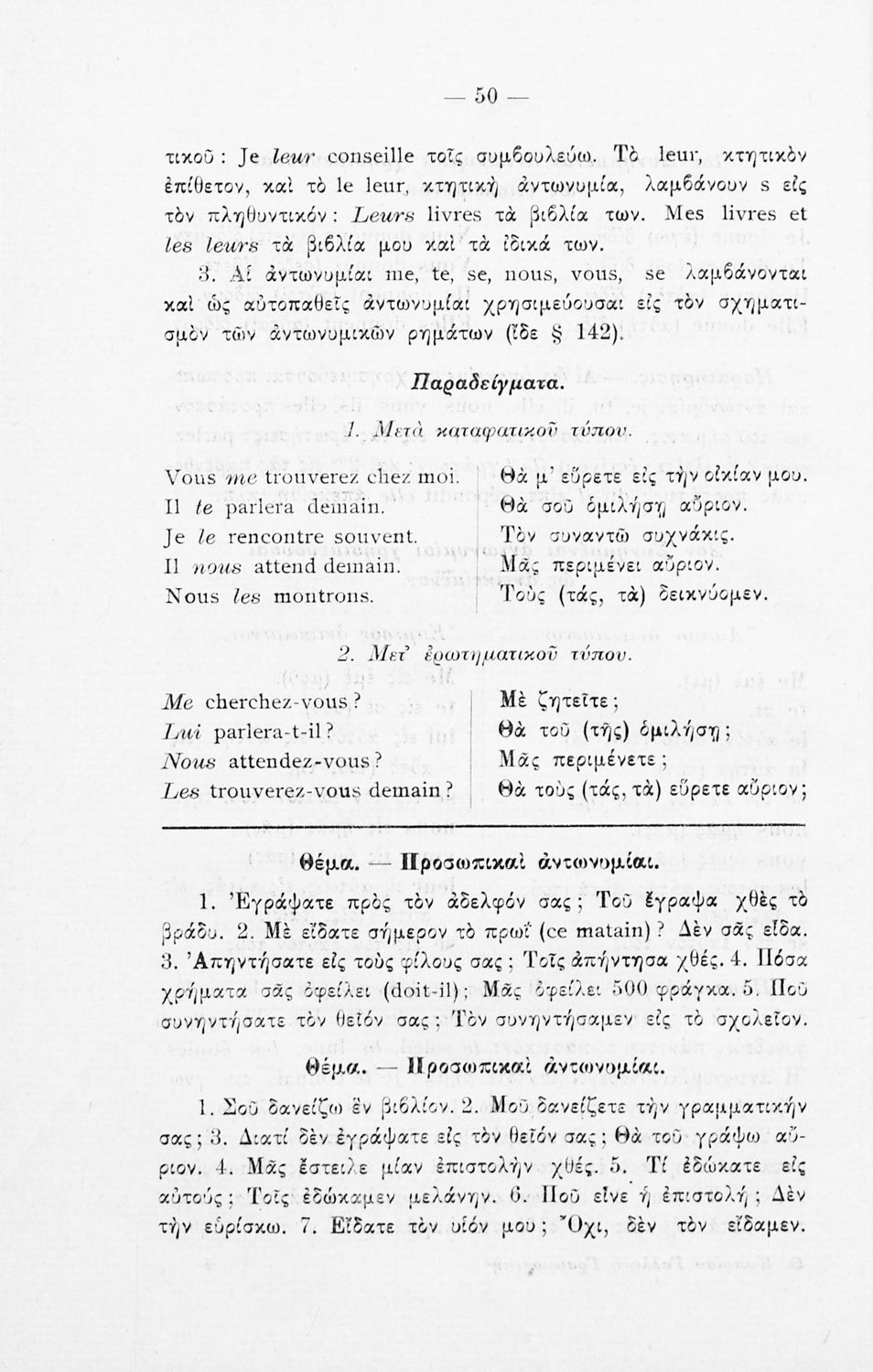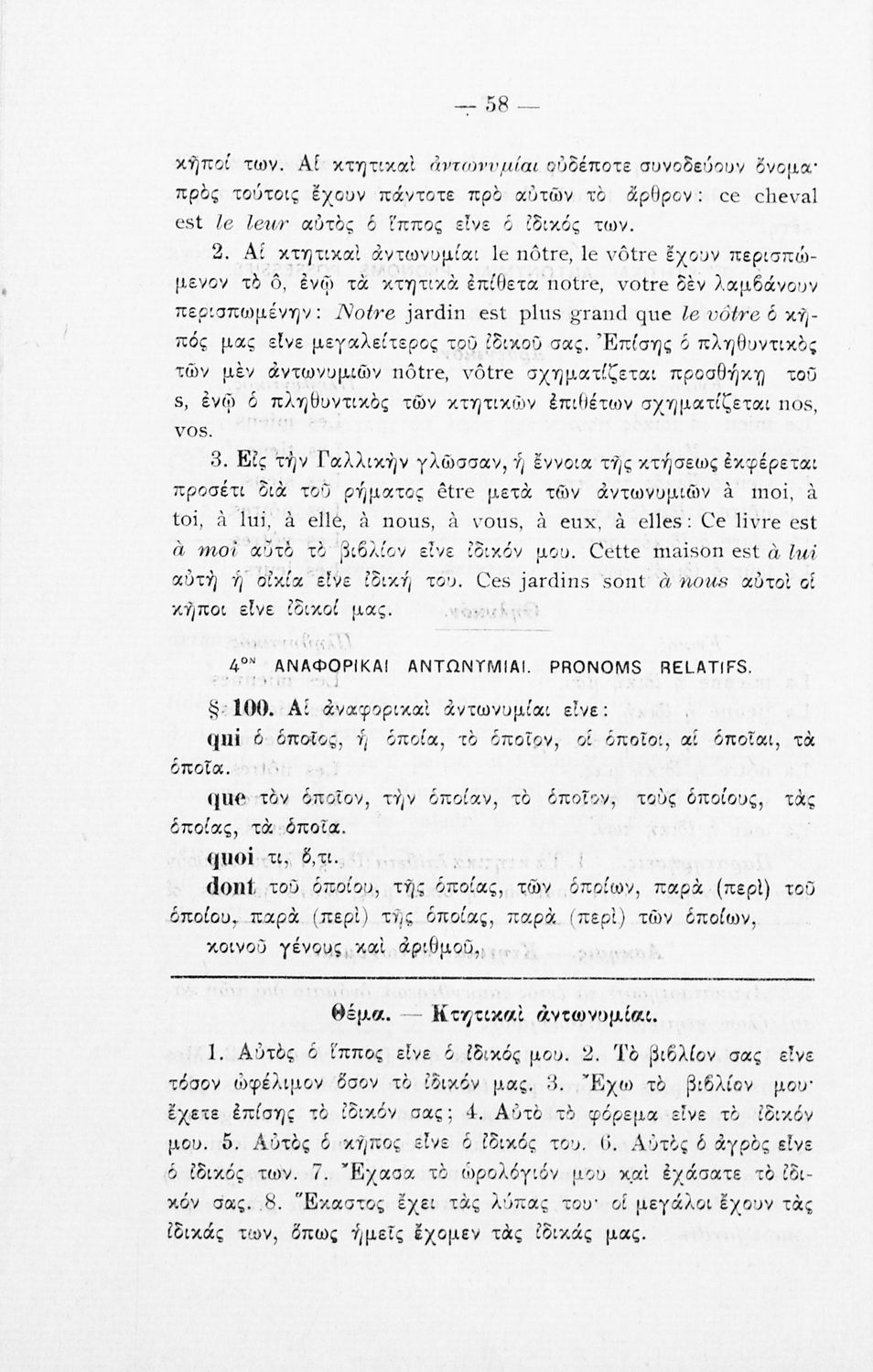 Γραμματική της γαλλικής γλώσσης προς χρήσιν πασών των τάξεων των Γυμνασίων και των αντιστοίχων τάξεων των λοιπών Σχολείων της Μέσης Εκπαιδεύσεως