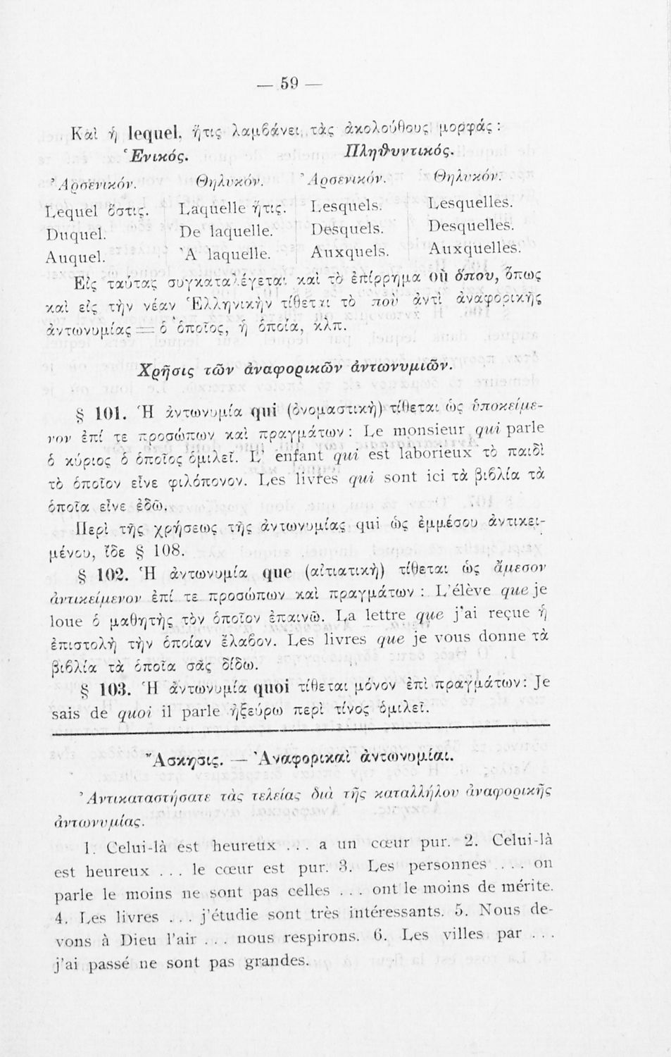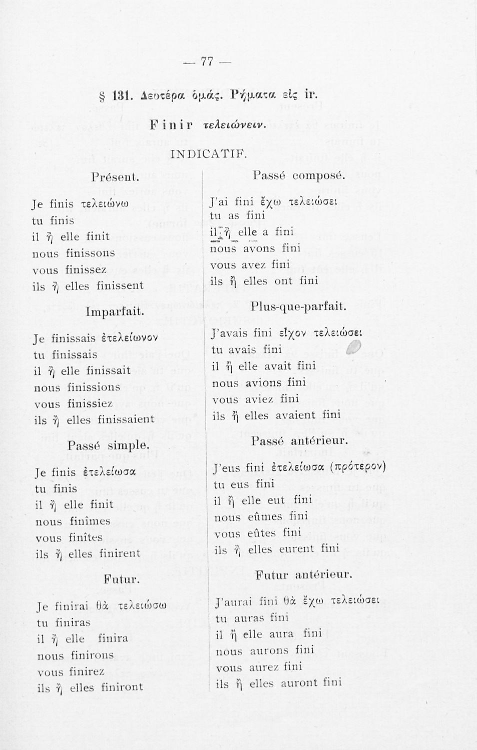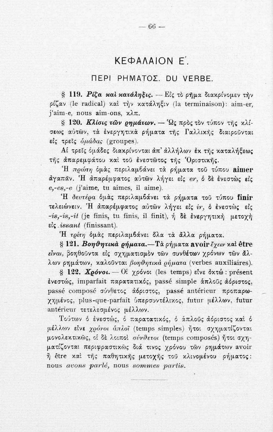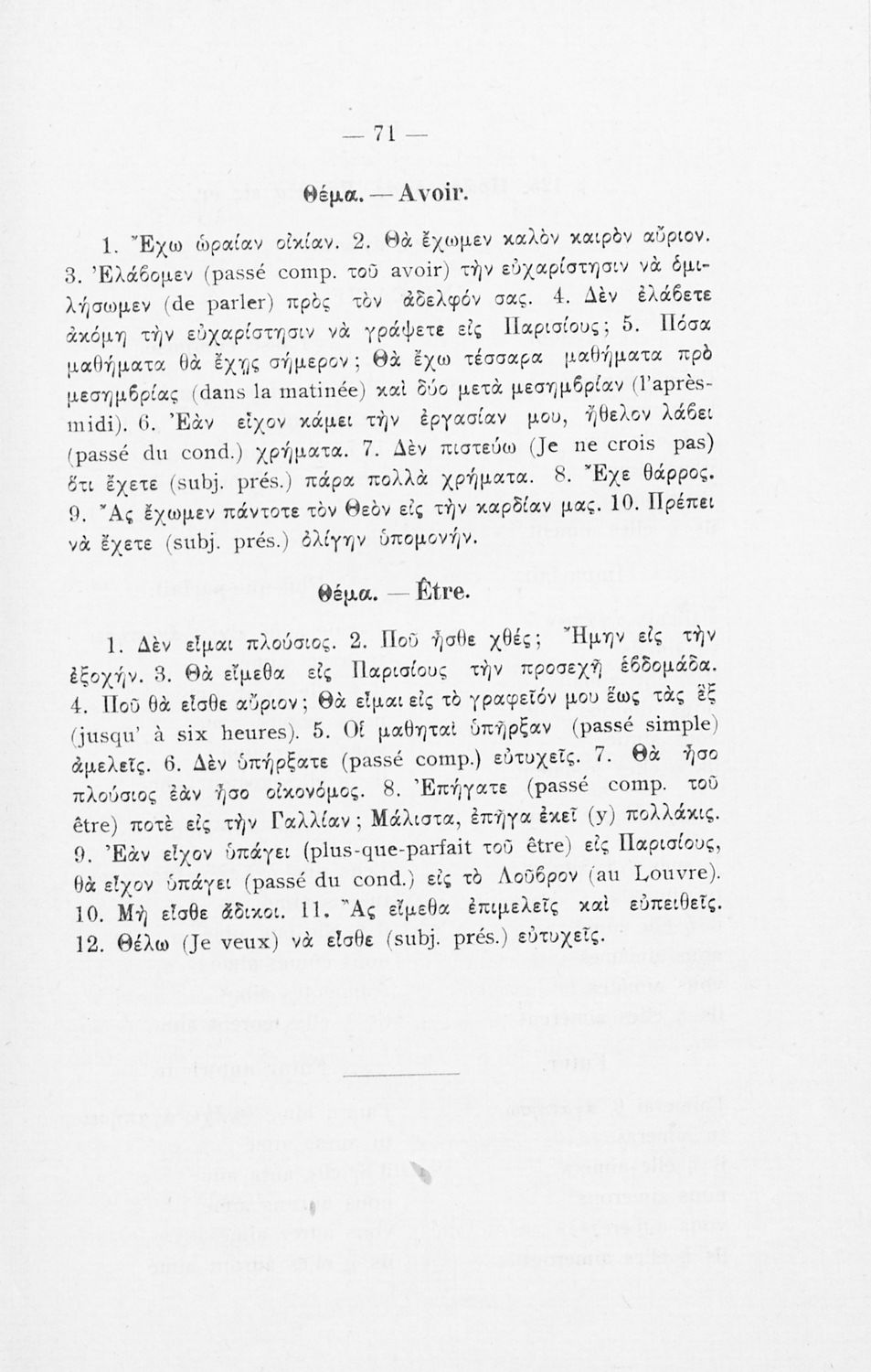 Βαθμίδα εκπαίδευσης: Δευτεροβάθμια Τάξη: Γυμνάσιο Μάθημα: Γαλλικά Γλώσσα: Καθαρεύουσα Παρουσίαση περιεχομένου: Σχολικό εγχειρίδιο Γαλλικών Γυμνασίου που περιέχει τους κανόνες γραμματικής και συντακτικού και ασκήσεις. |