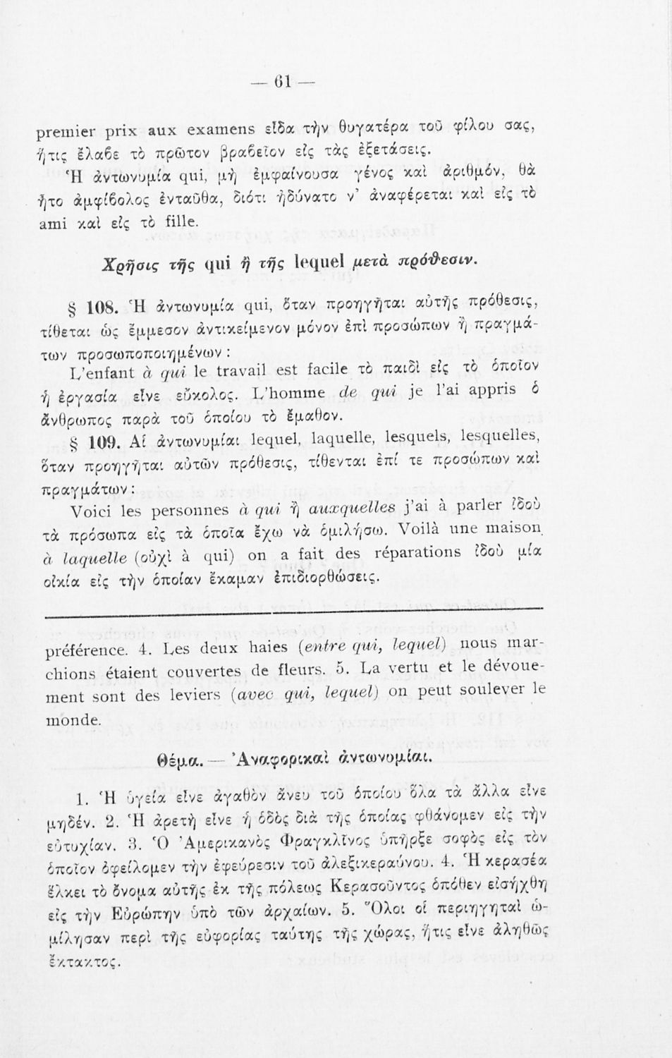 LDR 01171 2200205 4500 035 ## _a02-01097 040 ## _aΕλληνικό Λογοτεχνικό και Ιστορικό Αρχείο 041 ## _ael 100 ## _aΘεόδωρος Γ. Κύπριος 110 ## _a1944 ΚΥΠ ΓΡΑ 245 0# _aΓραμματική της γαλλικής γλώσσης προς χρήσιν πασών των τάξεων των Γυμνασίων και των αντιστοίχων τάξεων των λοιπών Σχολείων της Μέσης Εκπαιδεύσεως 250 ## _a8η Έκδοση 260 ## _aΑθήνα _bΙωάννης Δ. Κολλάρος και ΣΙΑ, Βιβλιοπωλείο της "Εστίας" _c1944 300 ## _a204 520 ## _aΣχολικό εγχειρίδιο Γαλλικών Γυμνασίου που περιέχει τους κανόνες γραμματικής και συντακτικού και ασκήσεις. 521 ## _aΓυμνάσιο 522 ## _aΕλλάδα 546 ## _aΚαθαρεύουσα 563 ## _aΜαλακό Εξώφυλλο 650 #4 _aΑντωνυμίες _aΕπίθετα _aΟνόματα _aΡήματα