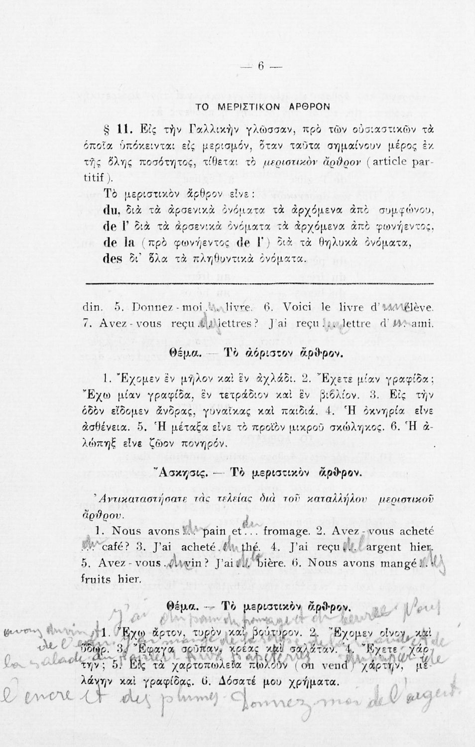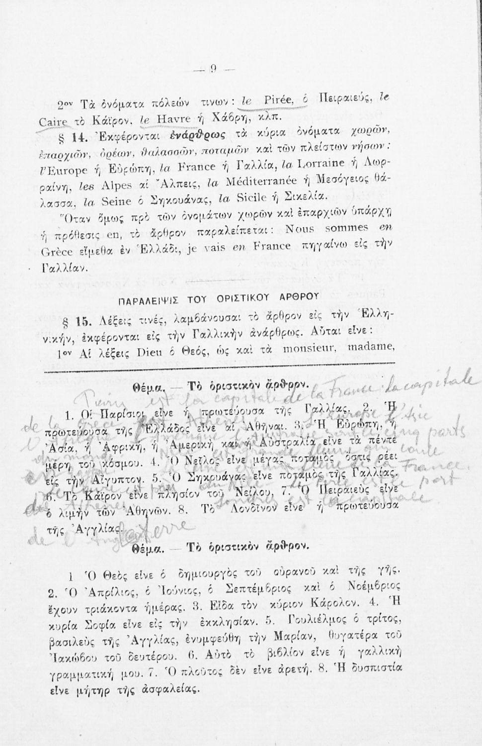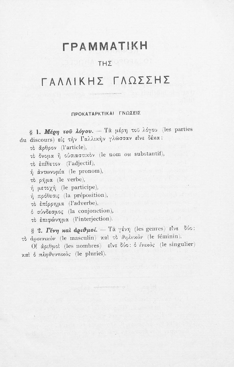 Βαθμίδα εκπαίδευσης: Δευτεροβάθμια Τάξη: Γυμνάσιο Μάθημα: Γαλλικά Γλώσσα: Καθαρεύουσα Παρουσίαση περιεχομένου: Σχολικό εγχειρίδιο Γαλλικών Γυμνασίου που περιέχει τους κανόνες γραμματικής και συντακτικού και ασκήσεις. |