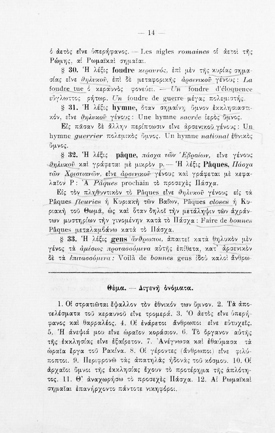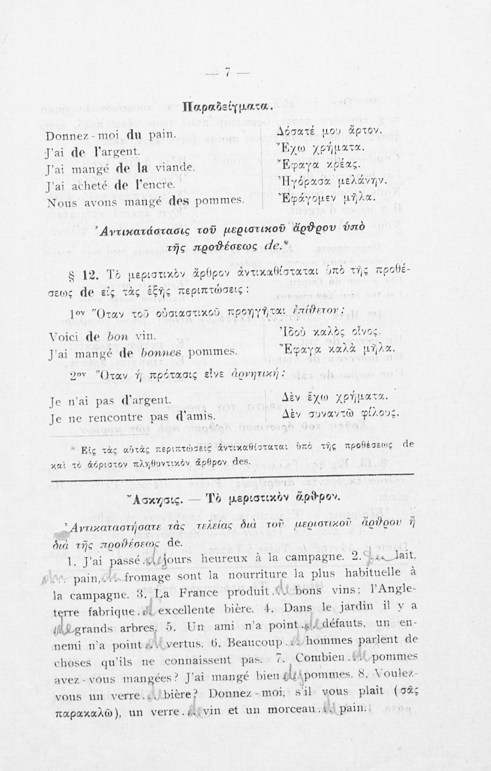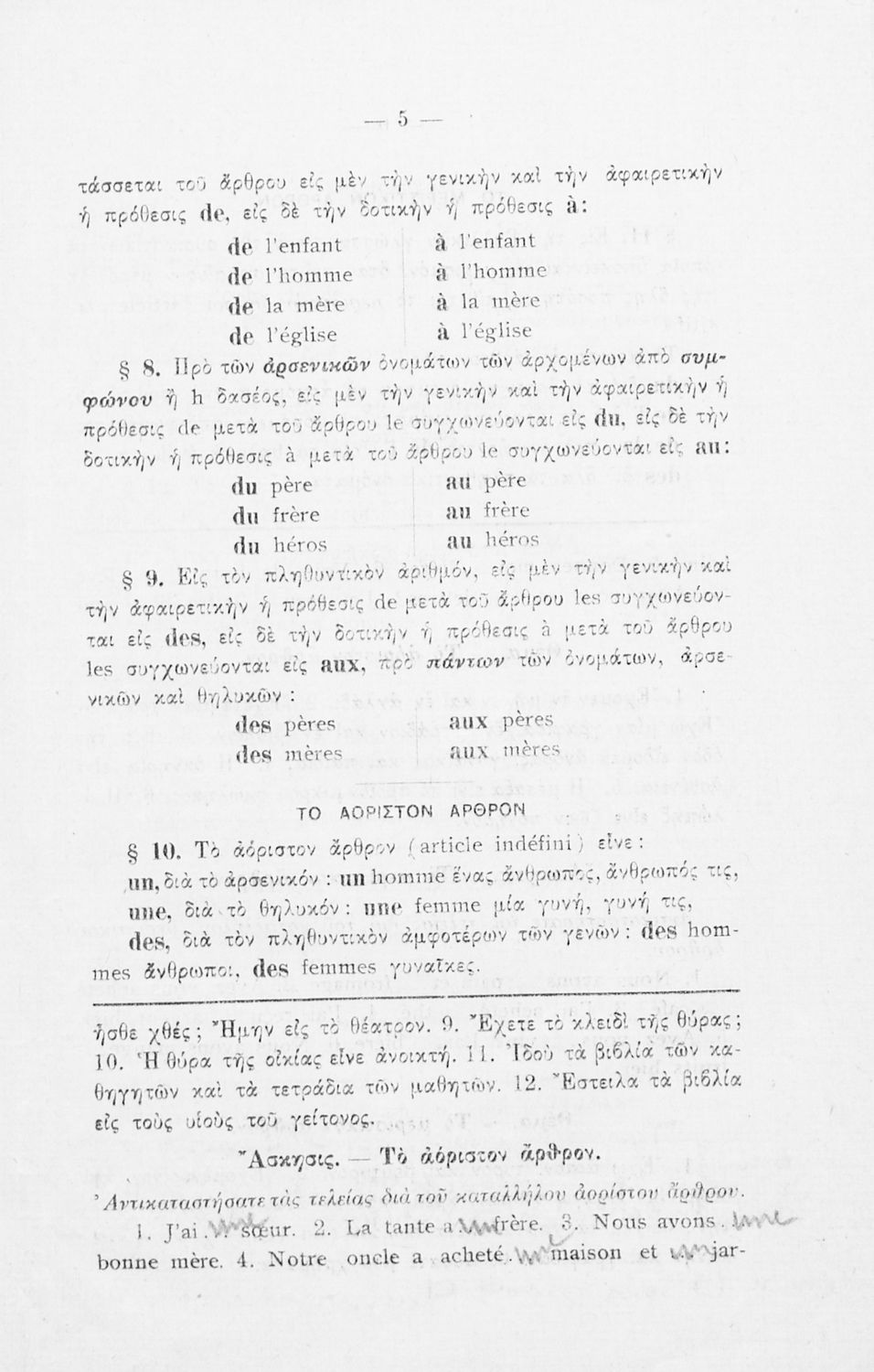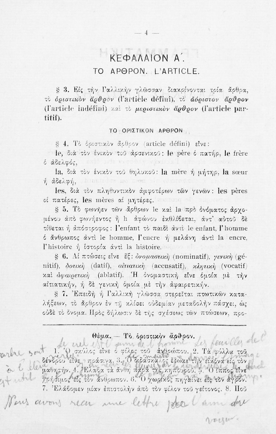 Βαθμίδα εκπαίδευσης: Δευτεροβάθμια Τάξη: Γυμνάσιο Μάθημα: Γαλλικά Γλώσσα: Καθαρεύουσα Παρουσίαση περιεχομένου: Σχολικό εγχειρίδιο Γαλλικών Γυμνασίου που περιέχει τους κανόνες γραμματικής και συντακτικού και ασκήσεις. |