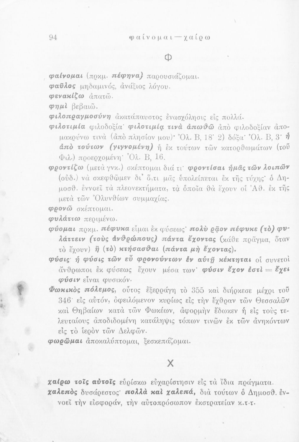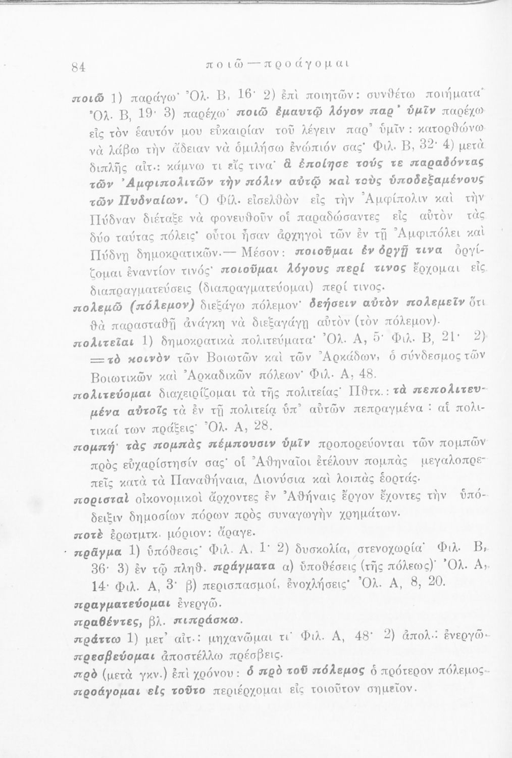 Σχολικό εγχειρίδιο Αρχαίων Ελληνικών Ε΄ Γυμνασίου που περιέχει τους Ολυνθιακούς Α΄ και Β΄ και τους Φιλιππικούς Α΄ και Β΄ του Δημοσθένη, βιογραφικό σημείωμα, λεξιλόγιο και ερμηνευτικά και ετυμολογικά σχόλια.