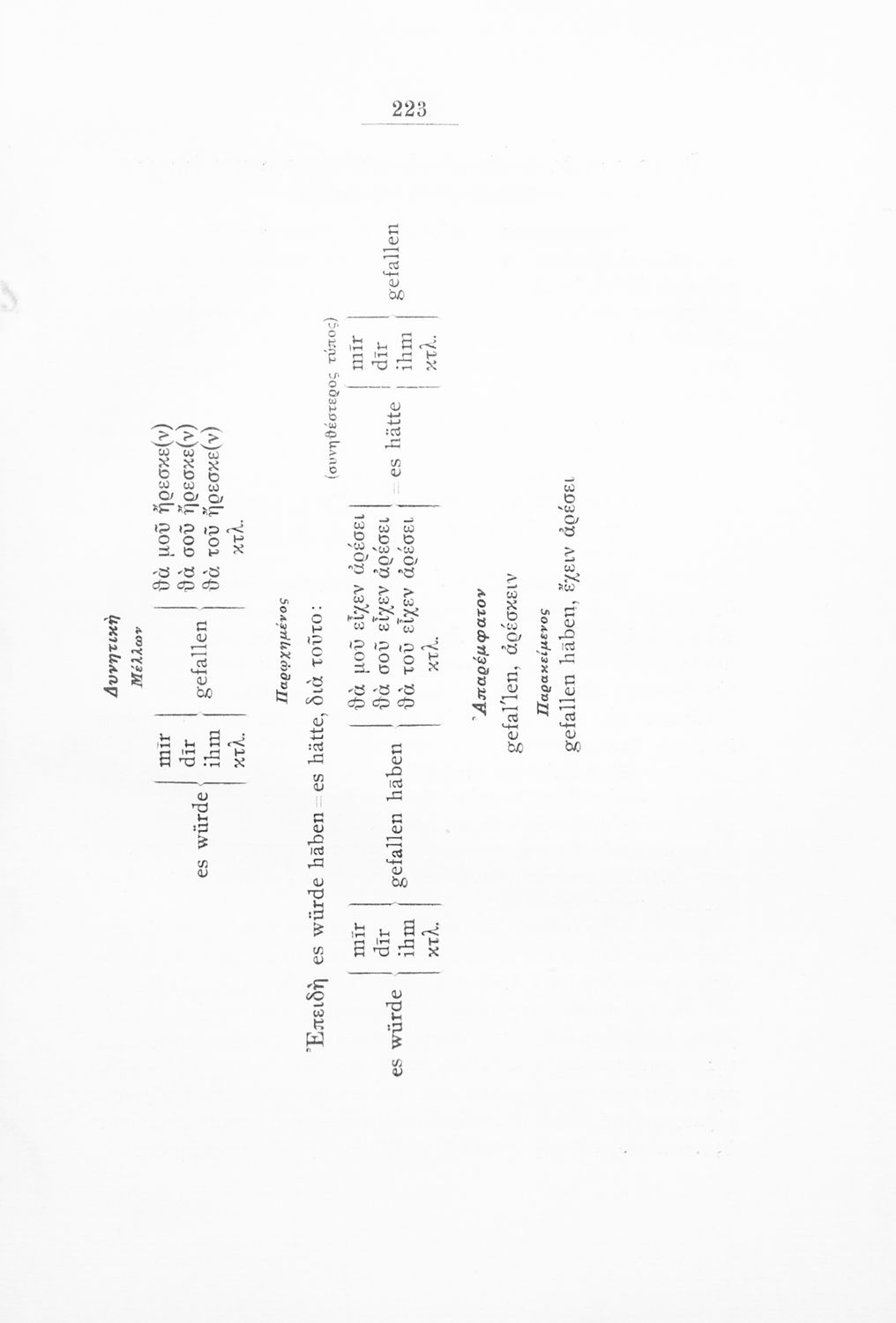 Πρόκειται για εγχειρίδιο που στόχο είχε την εκμάθηση των γραμματικών και συντακτικών φαινομένων της Γερμανικής γλώσσας με στόχο την ταχεία εκμάθησή της από Ελληνικό πληθυσμό. Φέρει λίγες προσωπικές σημειώσεις ...