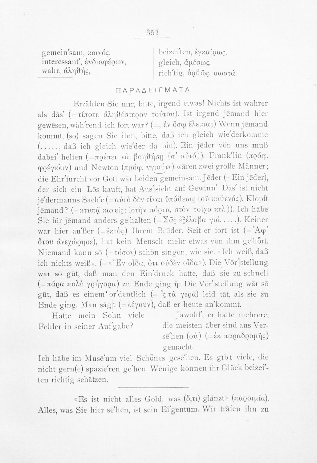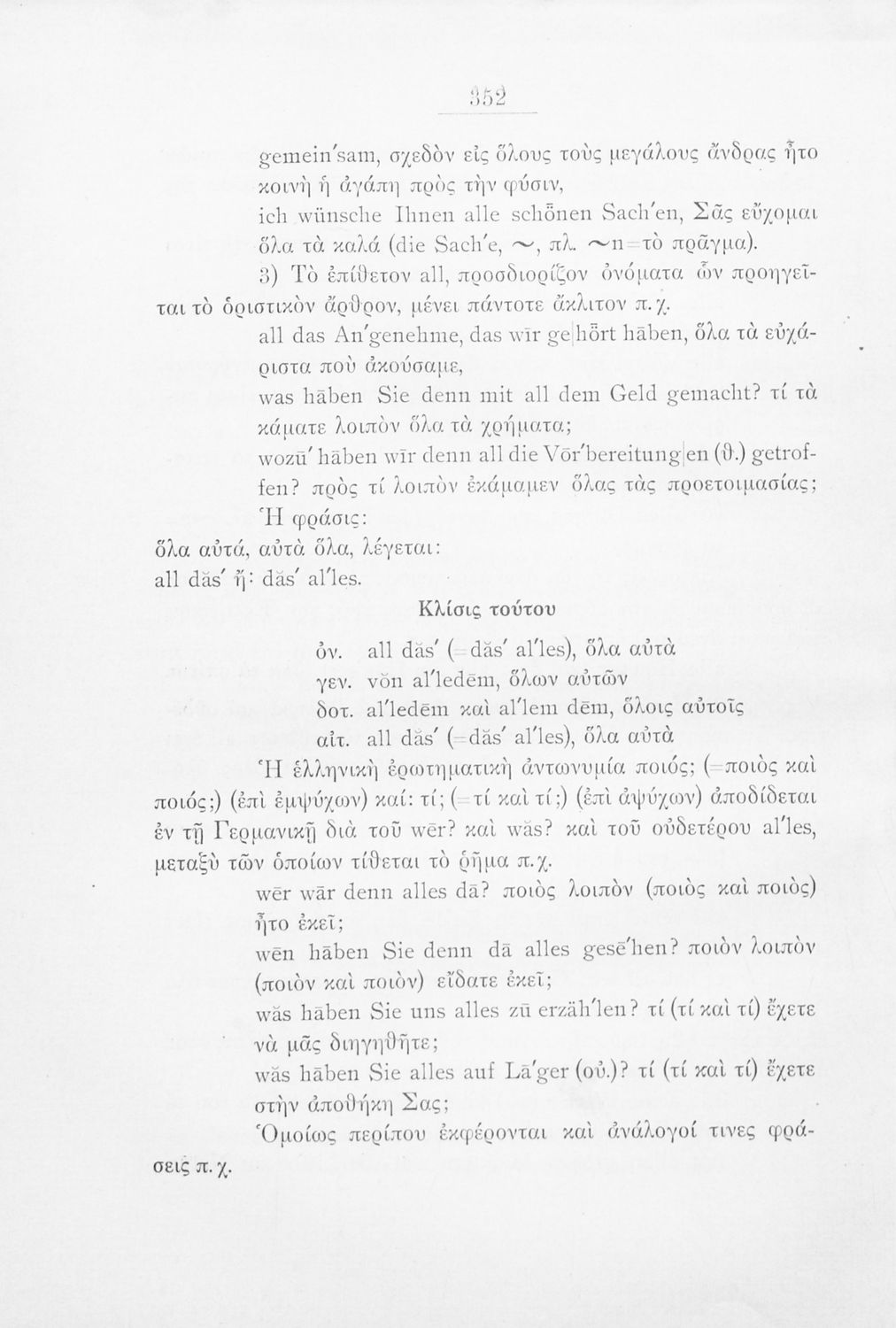 Πρόκειται για εγχειρίδιο που στόχο είχε την εκμάθηση των γραμματικών και συντακτικών φαινομένων της Γερμανικής γλώσσας με στόχο την ταχεία εκμάθησή της από Ελληνικό πληθυσμό. Φέρει λίγες προσωπικές σημειώσεις ...
