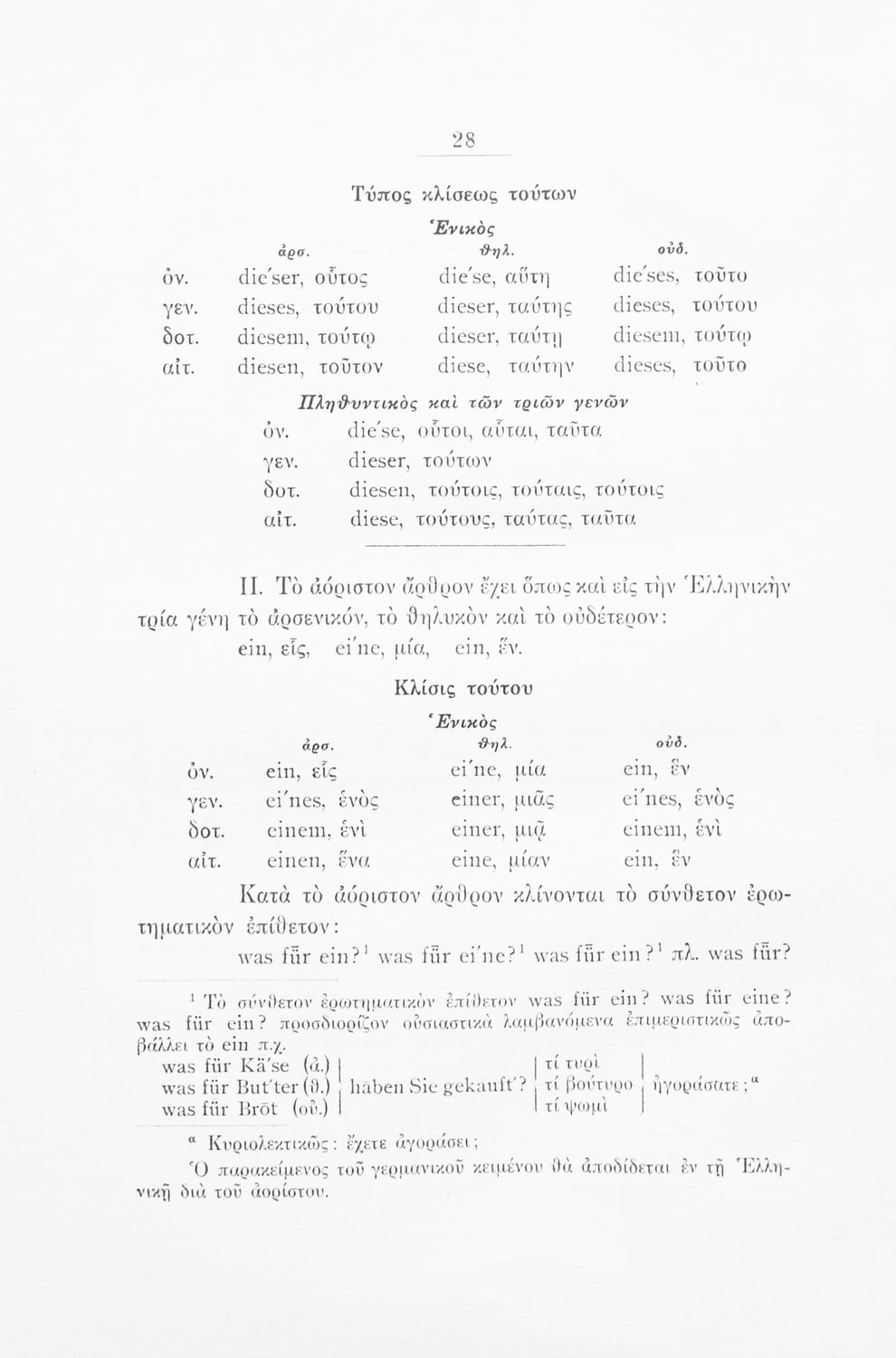 Πρόκειται για εγχειρίδιο που στόχο είχε την εκμάθηση, μέσω της μεθόδου της αυτοδιδασκαλίας κατά το σύστημα Traut-Berlitz-Dr Wogasli, των γραμματικών και συντακτικών φαινομένων της Γερμανικής γλώσσας σε ...