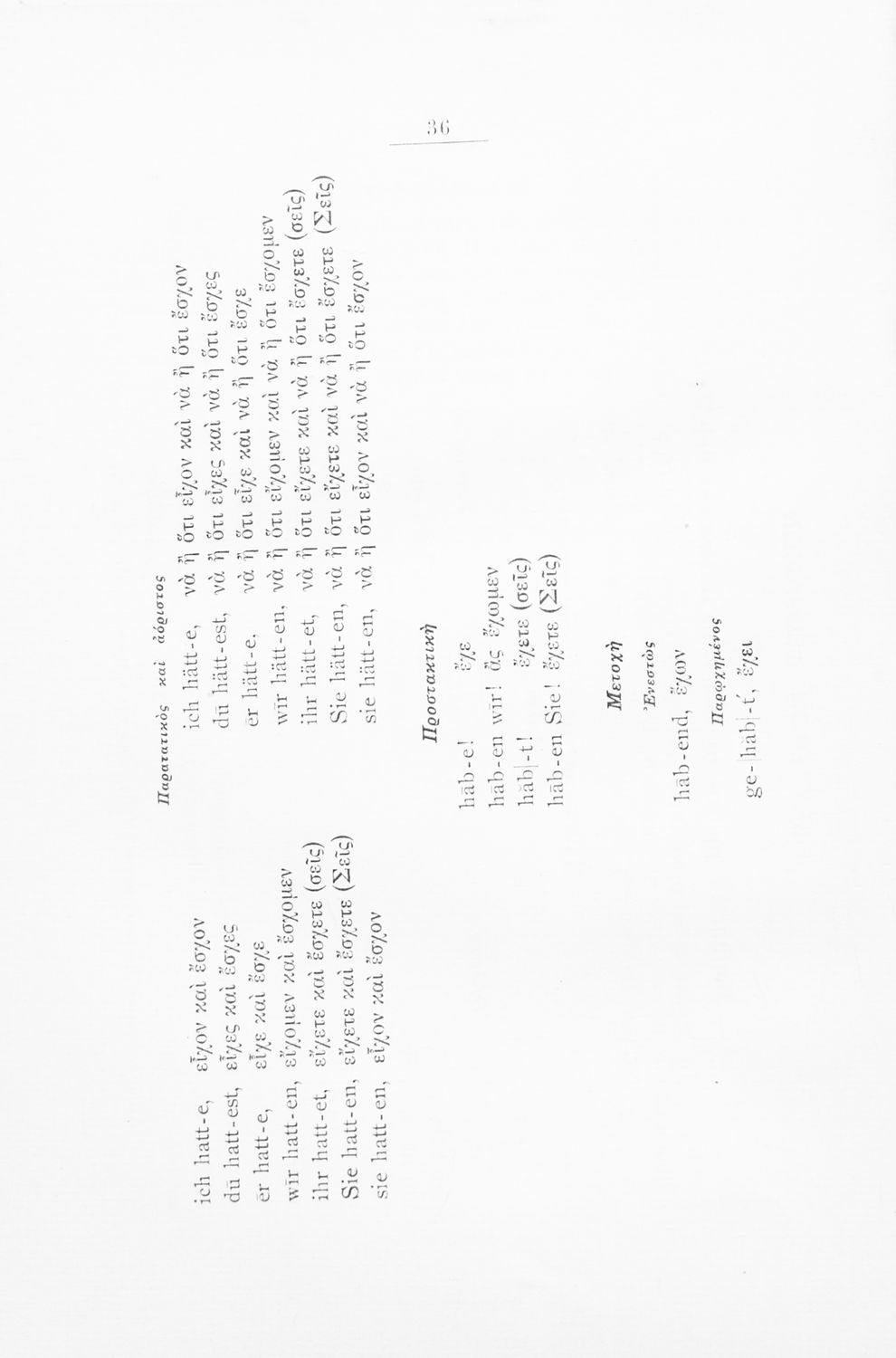 Πρόκειται για εγχειρίδιο που στόχο είχε την εκμάθηση των γραμματικών και συντακτικών φαινομένων της Γερμανικής γλώσσας με στόχο την ταχεία εκμάθησή της από Ελληνικό πληθυσμό. Φέρει λίγες προσωπικές σημειώσεις ...
