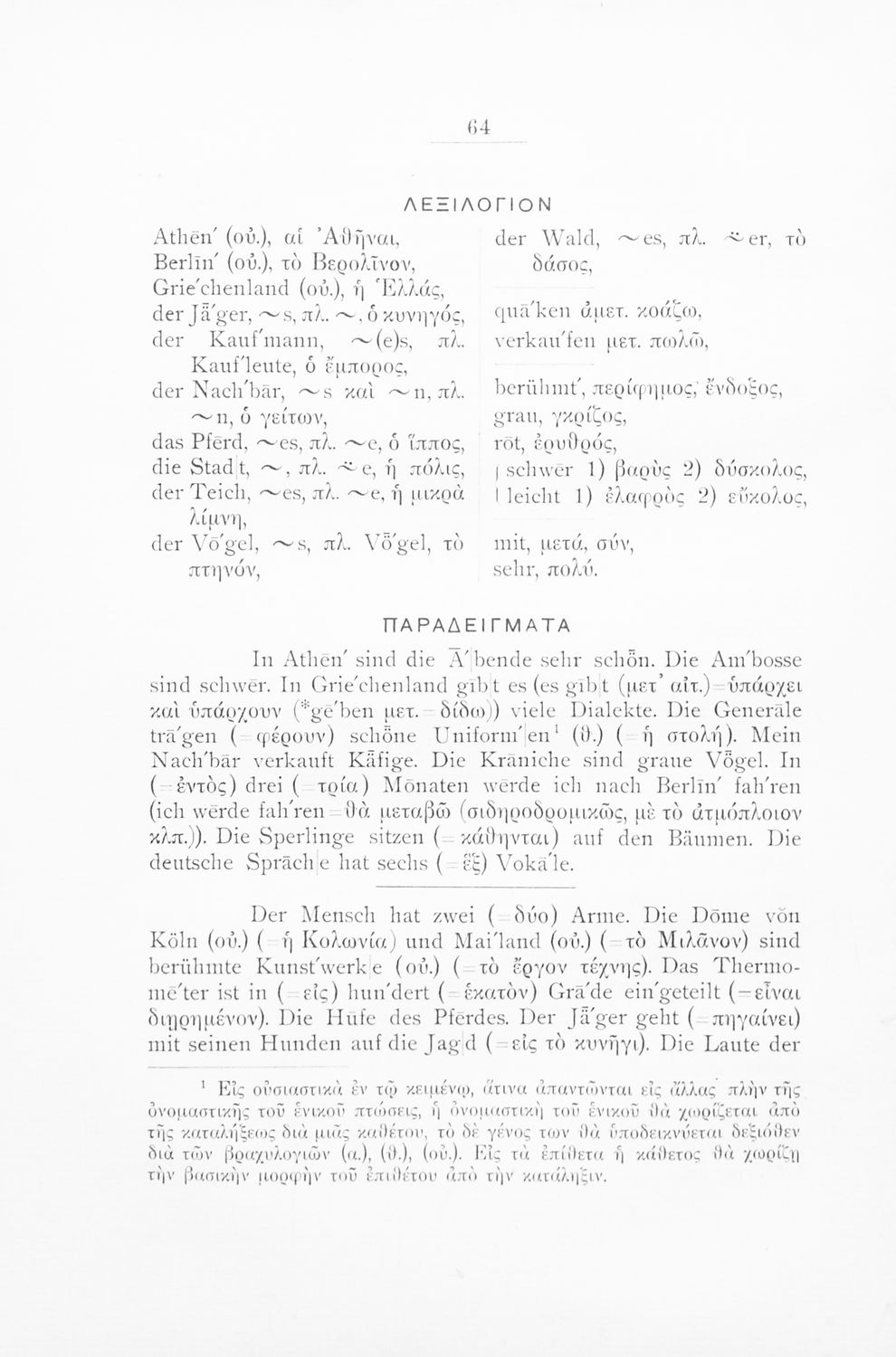 Πρόκειται για εγχειρίδιο που στόχο είχε την εκμάθηση των γραμματικών και συντακτικών φαινομένων της Γερμανικής γλώσσας με στόχο την ταχεία εκμάθησή της από Ελληνικό πληθυσμό. Φέρει λίγες προσωπικές σημειώσεις ...