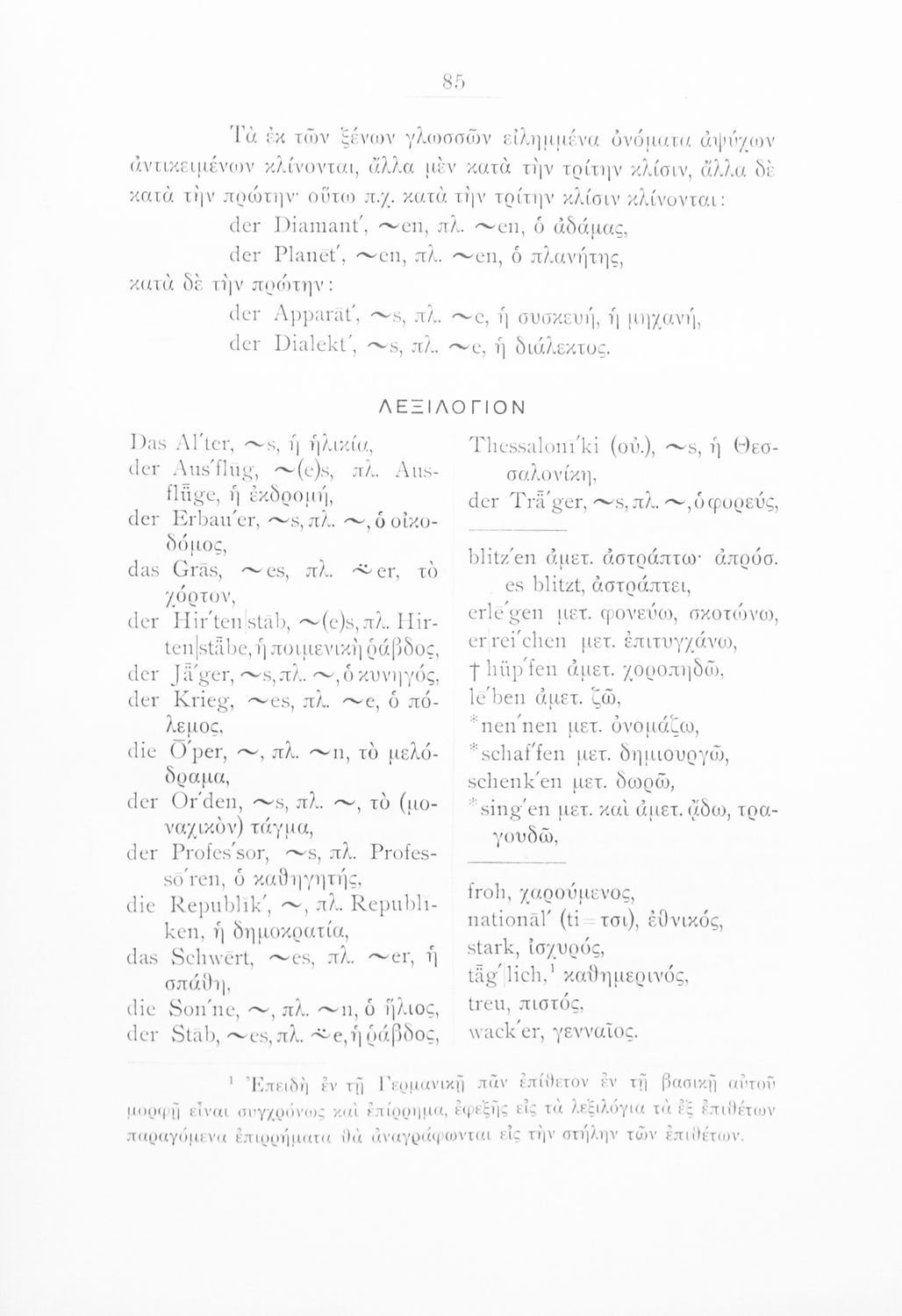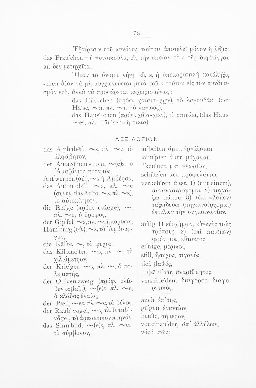 Πρόκειται για εγχειρίδιο που στόχο είχε την εκμάθηση των γραμματικών και συντακτικών φαινομένων της Γερμανικής γλώσσας με στόχο την ταχεία εκμάθησή της από Ελληνικό πληθυσμό. Φέρει λίγες προσωπικές σημειώσεις ...
