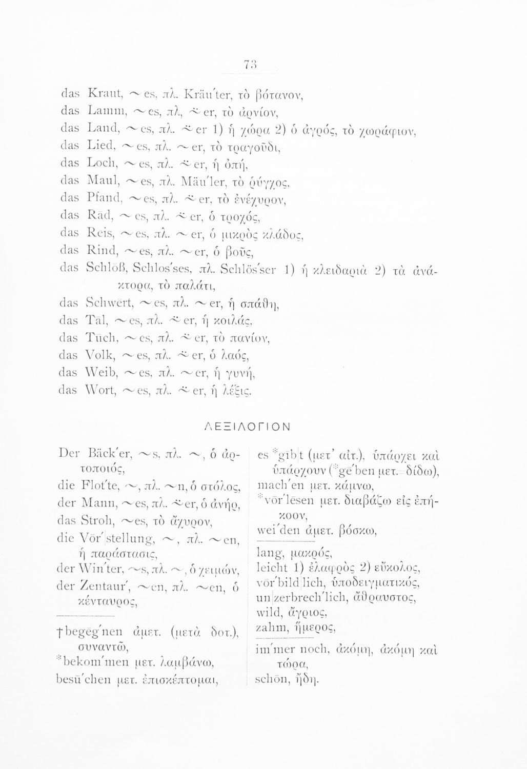 Πρόκειται για εγχειρίδιο που στόχο είχε την εκμάθηση, μέσω της μεθόδου της αυτοδιδασκαλίας κατά το σύστημα Traut-Berlitz-Dr Wogasli, των γραμματικών και συντακτικών φαινομένων της Γερμανικής γλώσσας σε ...