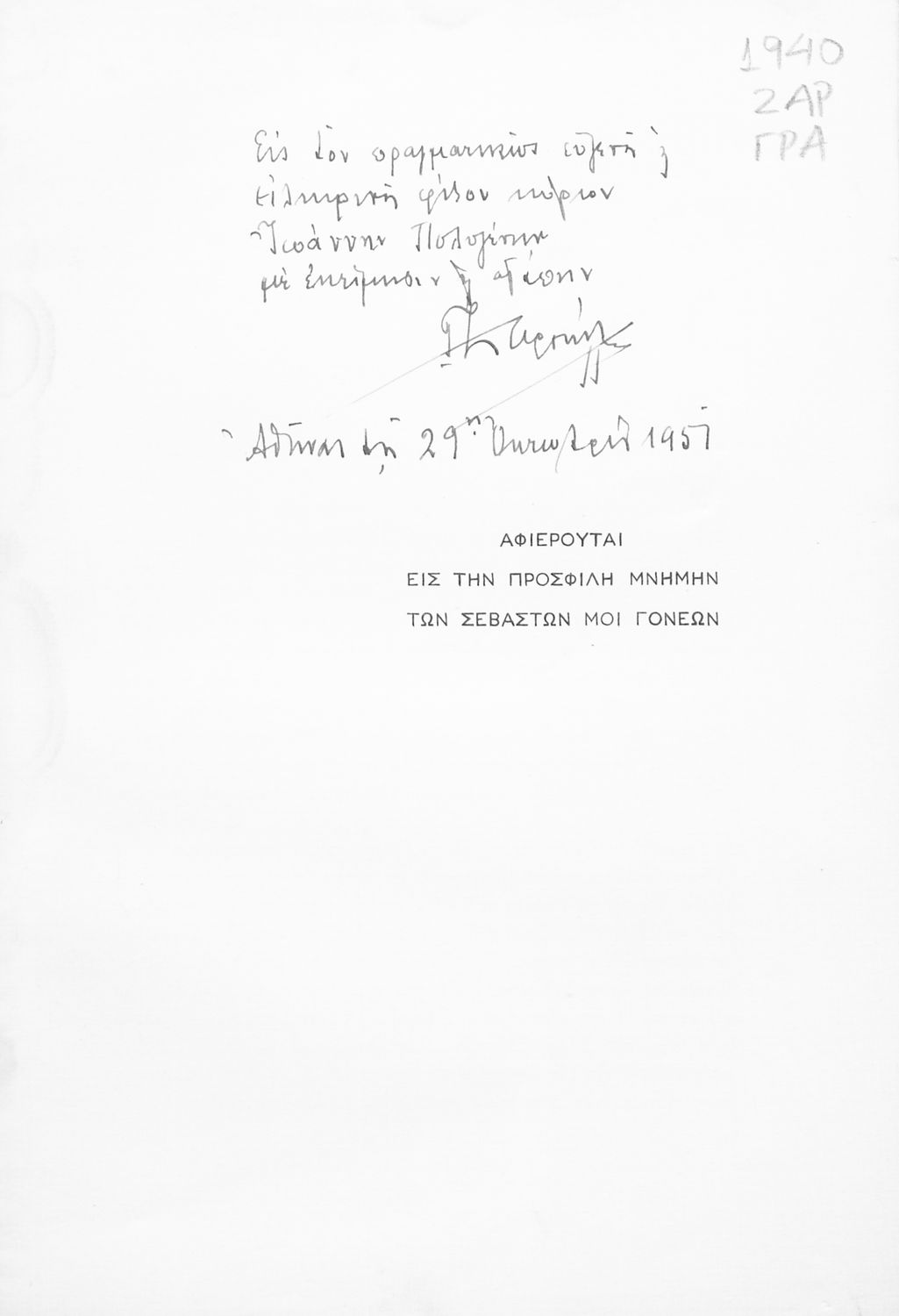 Έτος έκδοσης: 1940 Τόπος έκδοσης: Αθήνα |