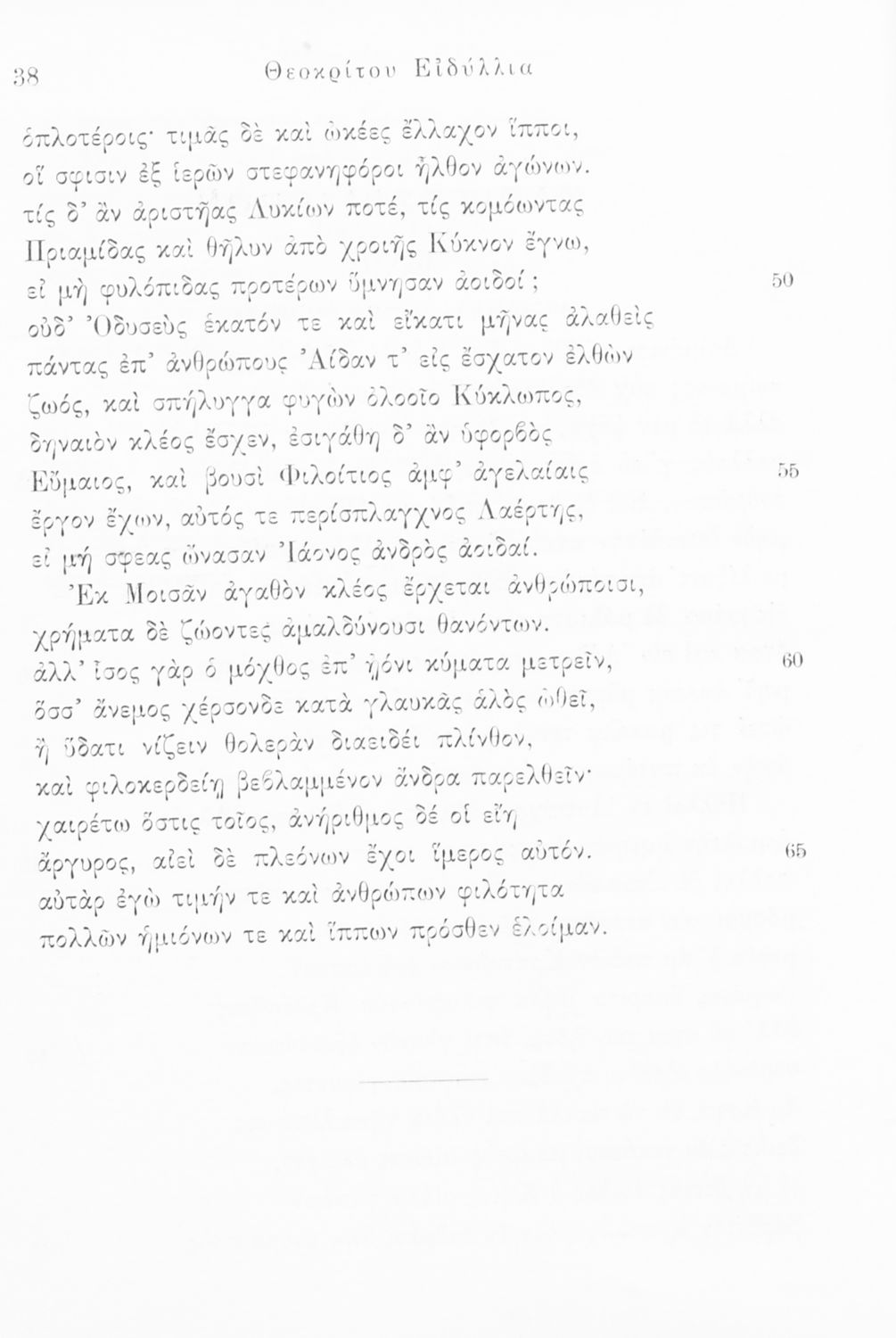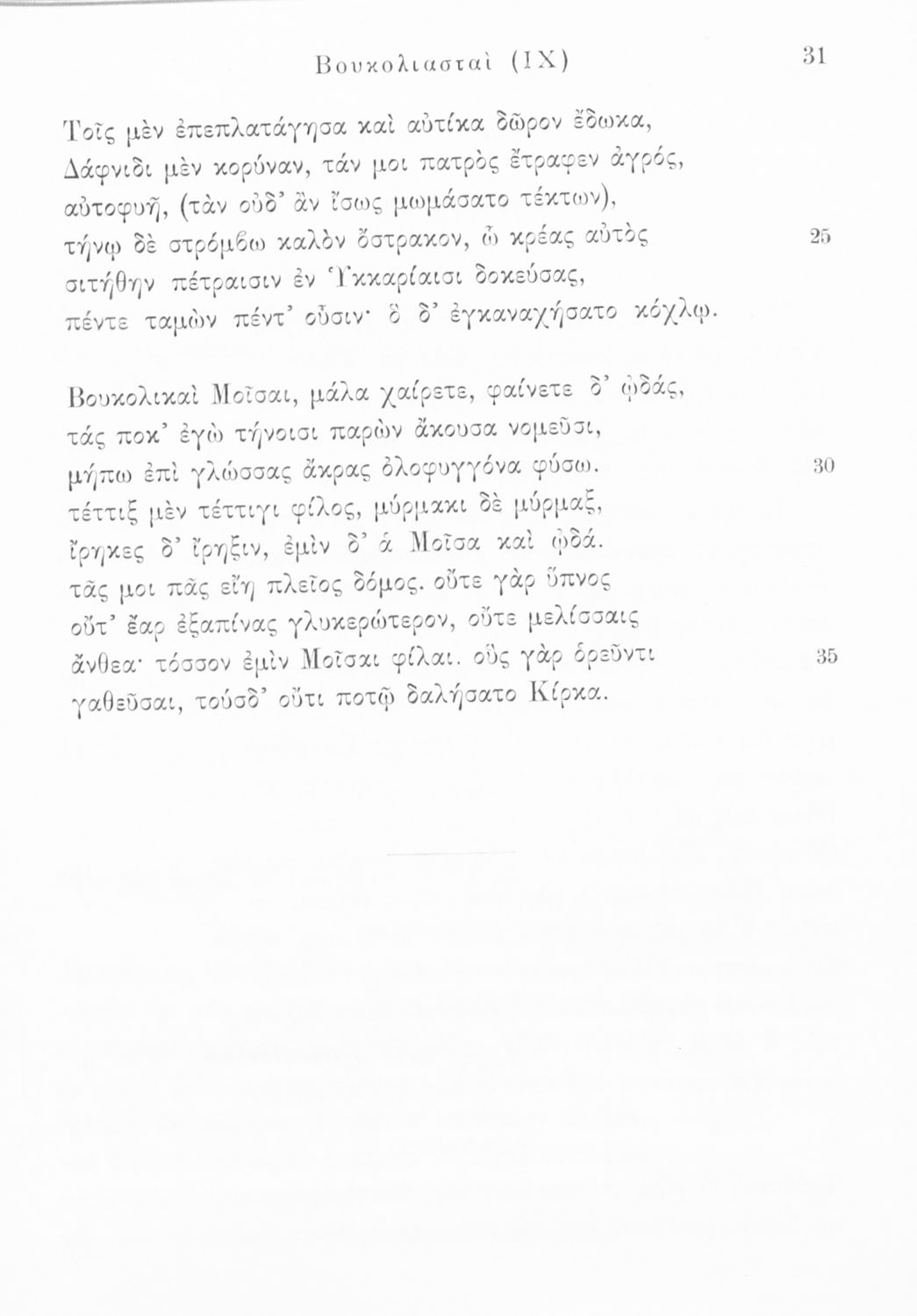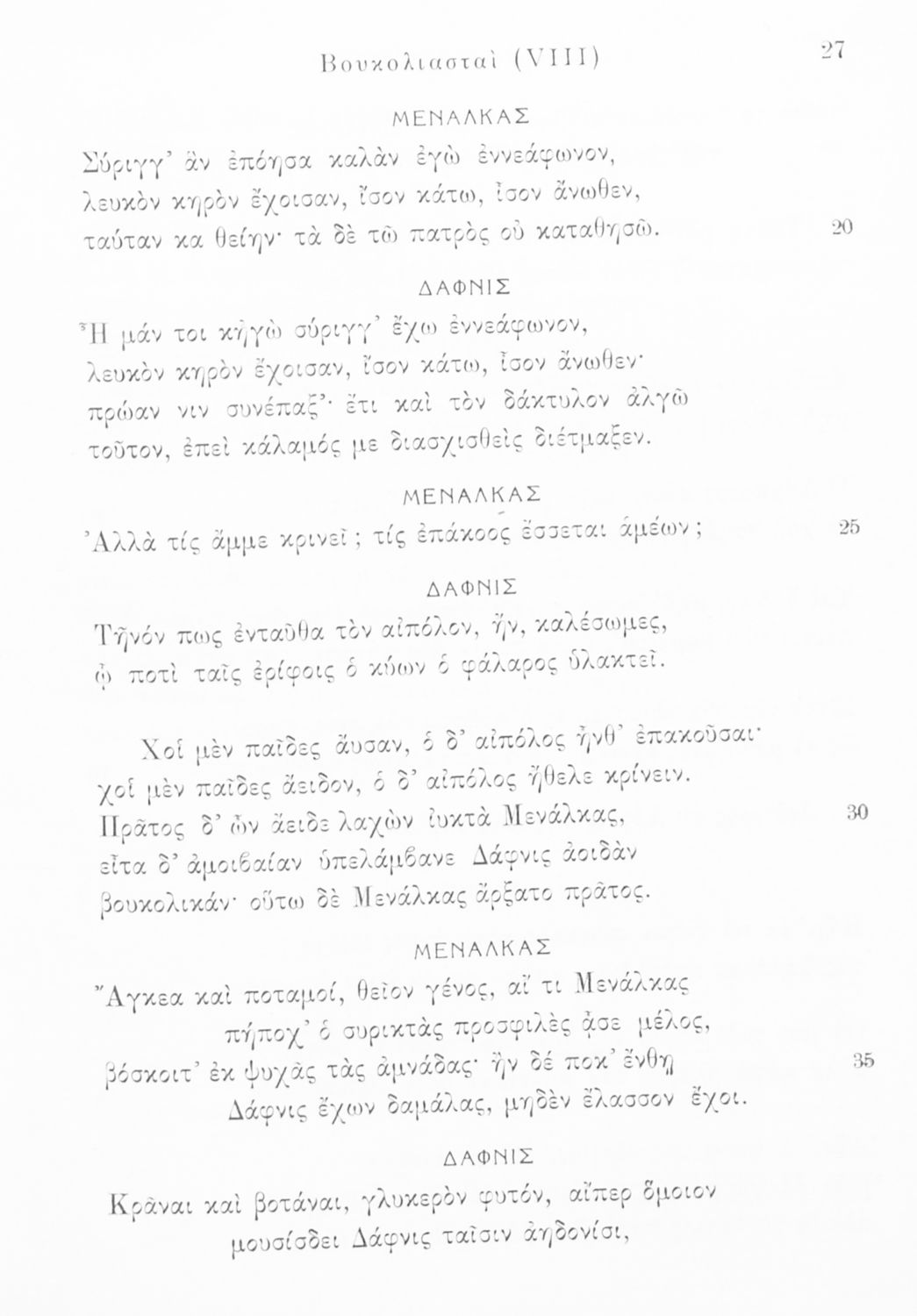 Σχολικό εγχειρίδιο Αρχαίων Ελληνικών ΣΤ΄ Γυμνασίου που περιλαμβάνει εισαγωγή στη ζωή και το έργο του Θεόκριτου, τα Ειδύλλιά του και ερμηνευτικά σχόλια.
