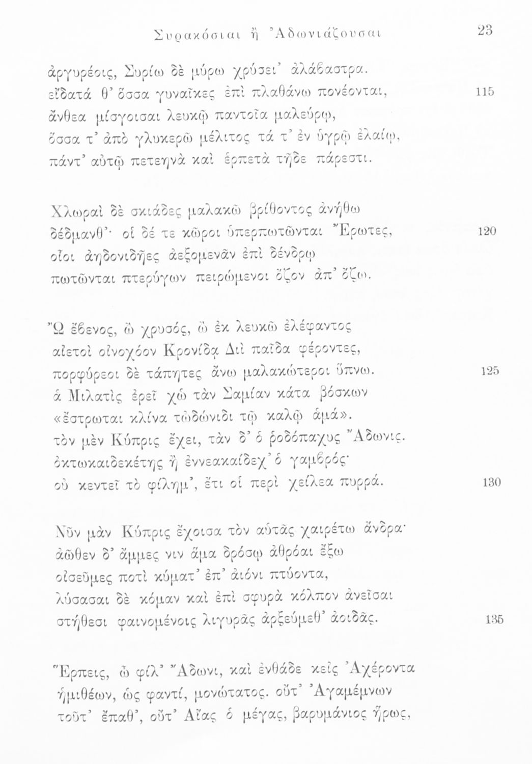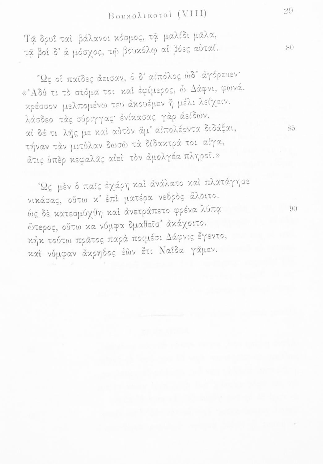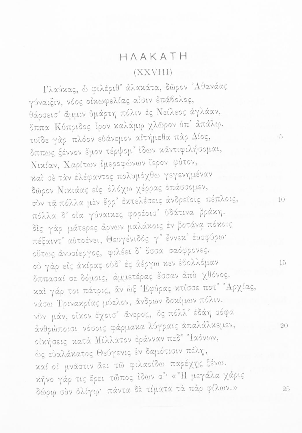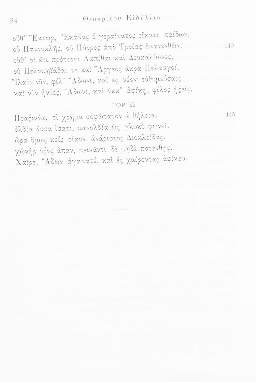 Σχολικό εγχειρίδιο Αρχαίων Ελληνικών ΣΤ΄ Γυμνασίου που περιλαμβάνει εισαγωγή στη ζωή και το έργο του Θεόκριτου, τα Ειδύλλιά του και ερμηνευτικά σχόλια.