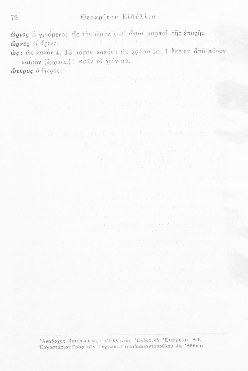 Συγγραφέας: Θεόκριτος, Θρασύβουλος Σταύρου (σχόλια)