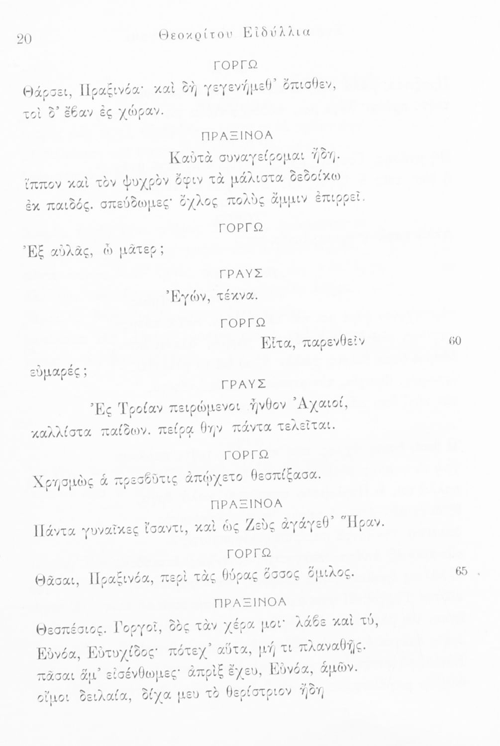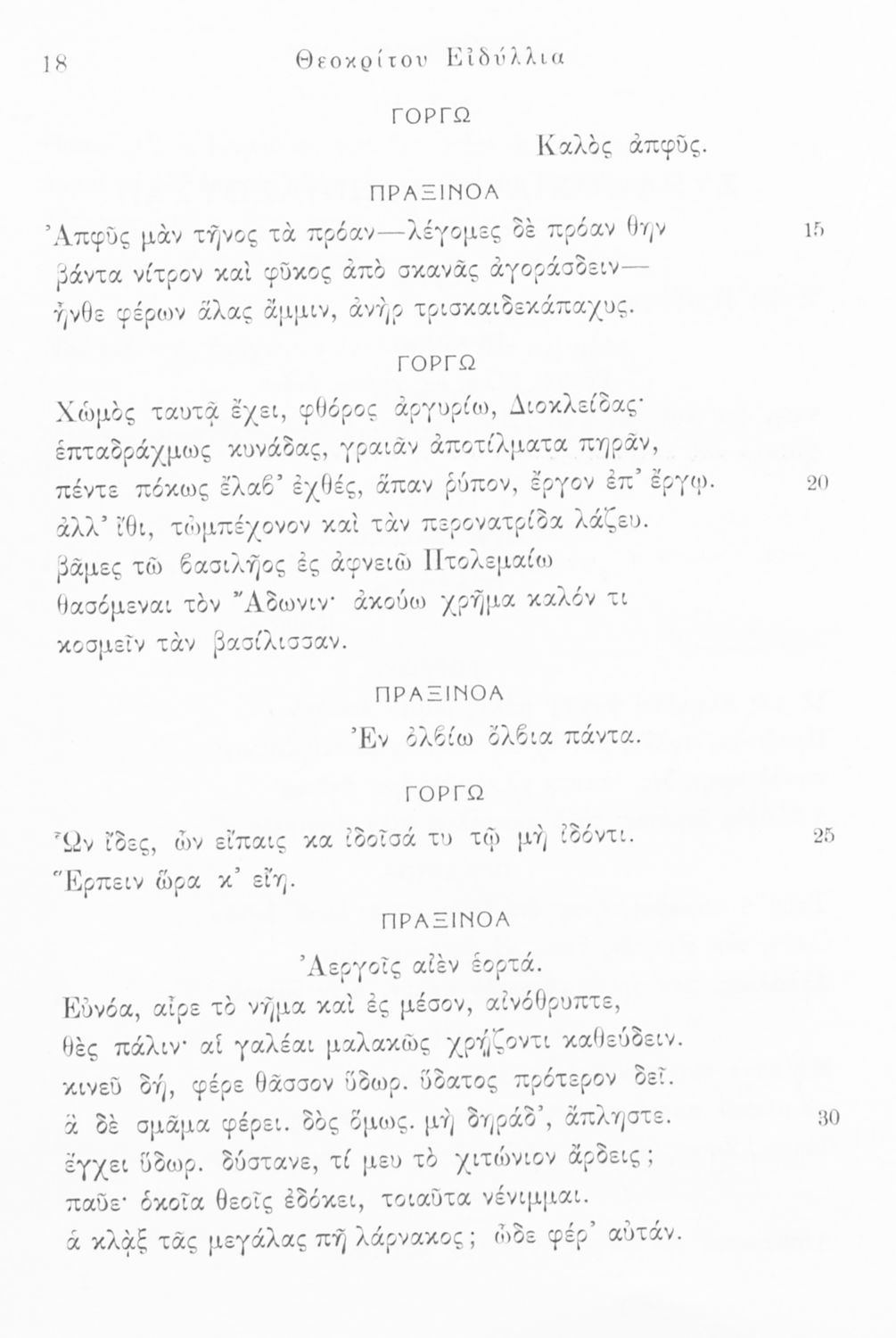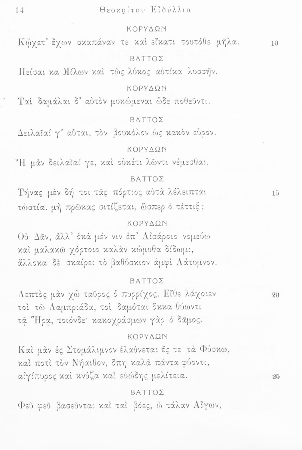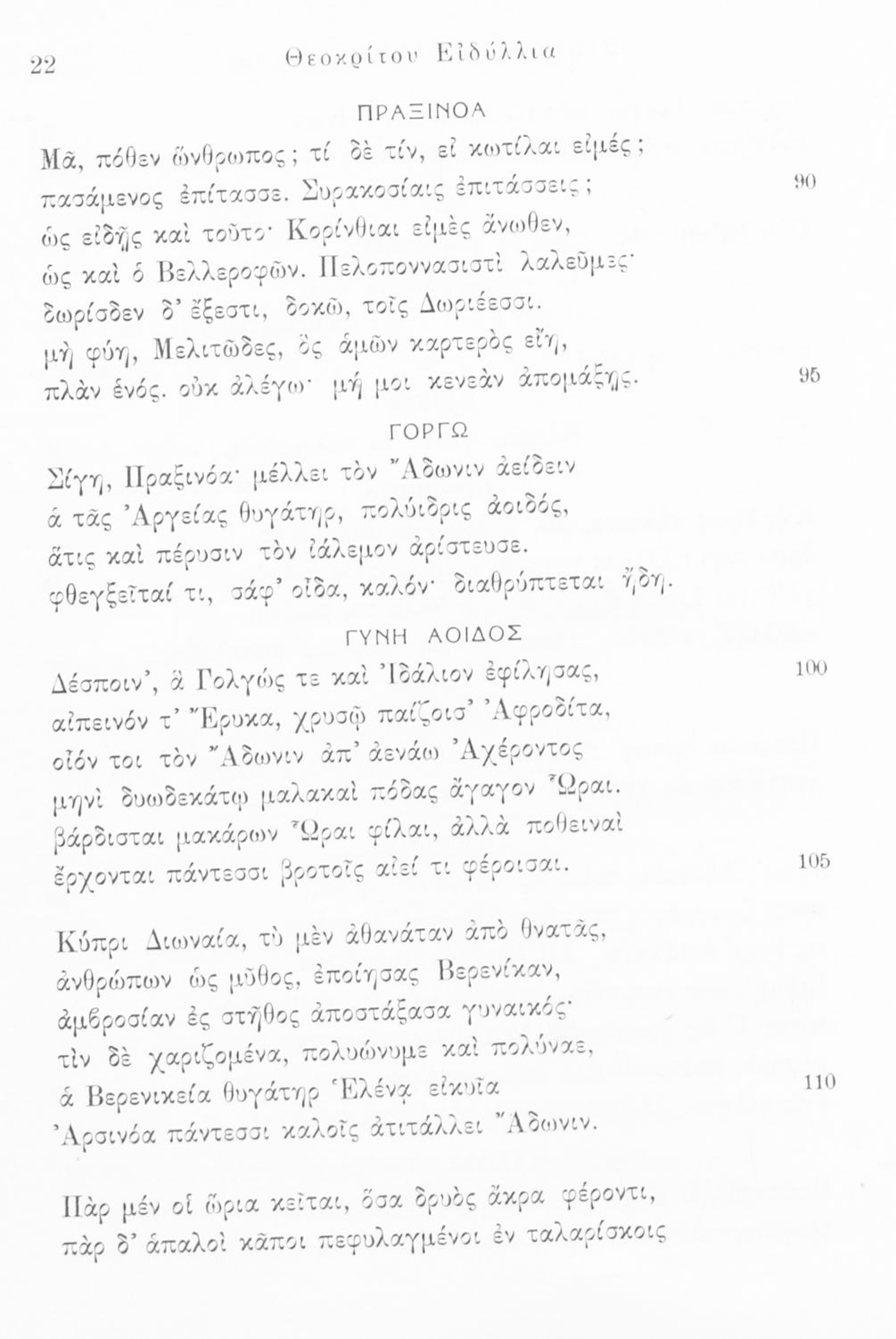 Σχολικό εγχειρίδιο Αρχαίων Ελληνικών ΣΤ΄ Γυμνασίου που περιλαμβάνει εισαγωγή στη ζωή και το έργο του Θεόκριτου, τα Ειδύλλιά του και ερμηνευτικά σχόλια.