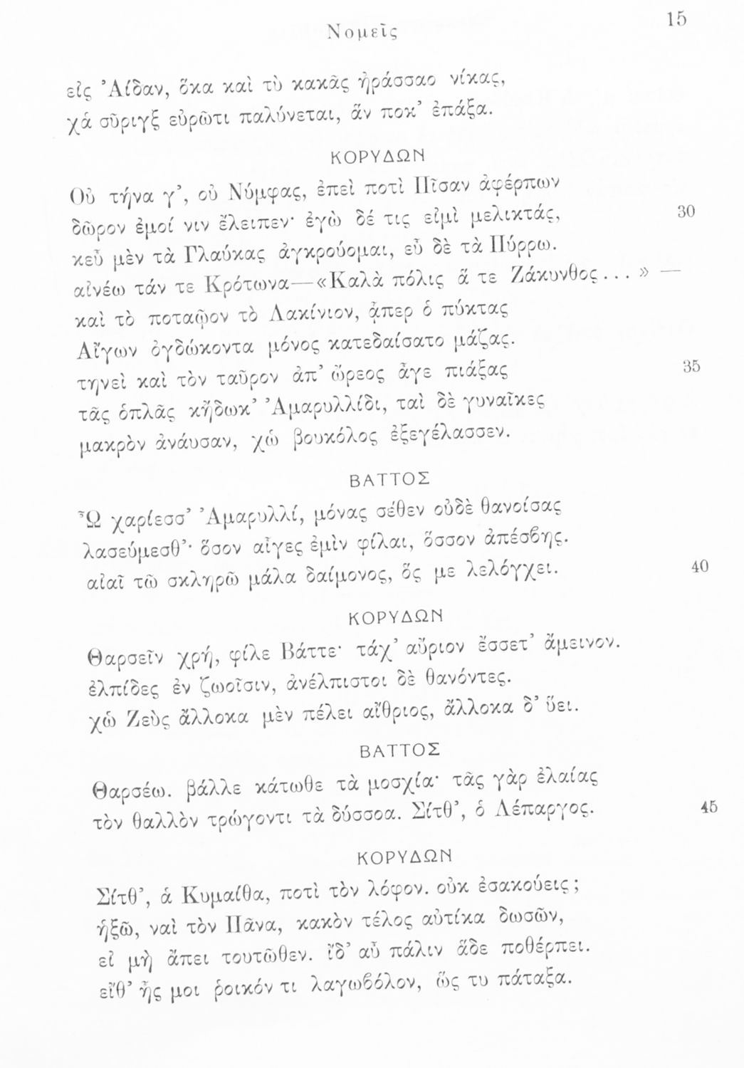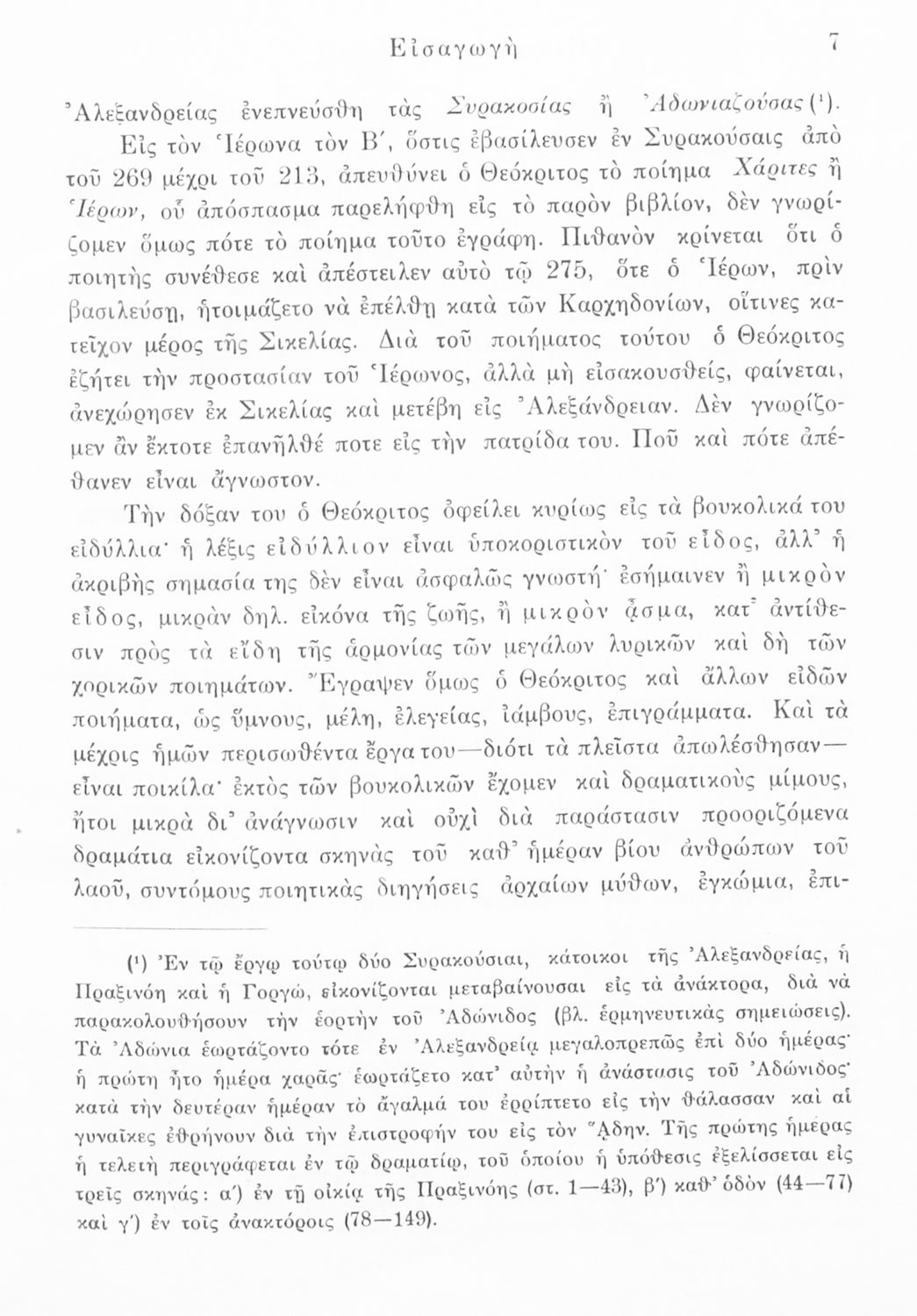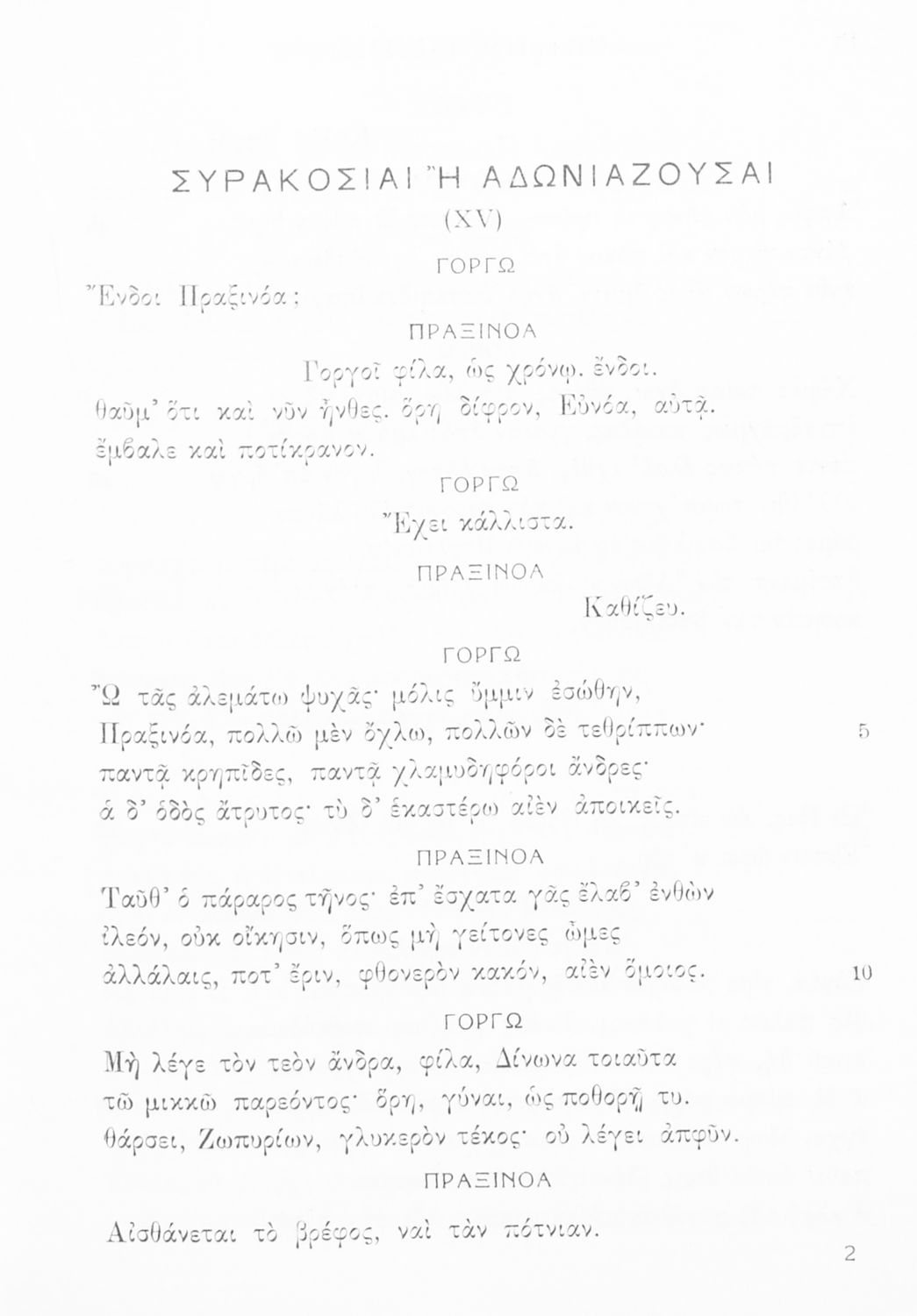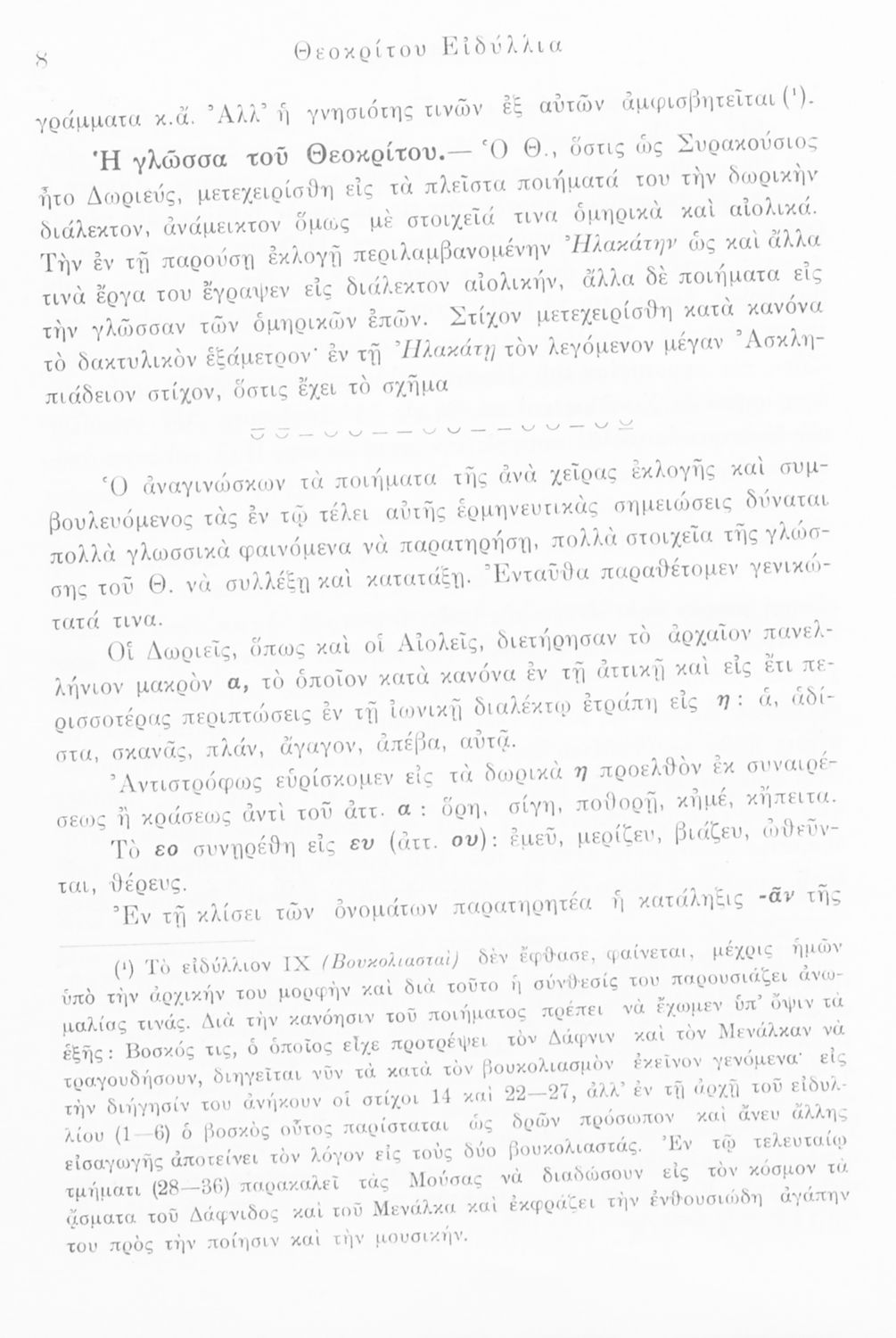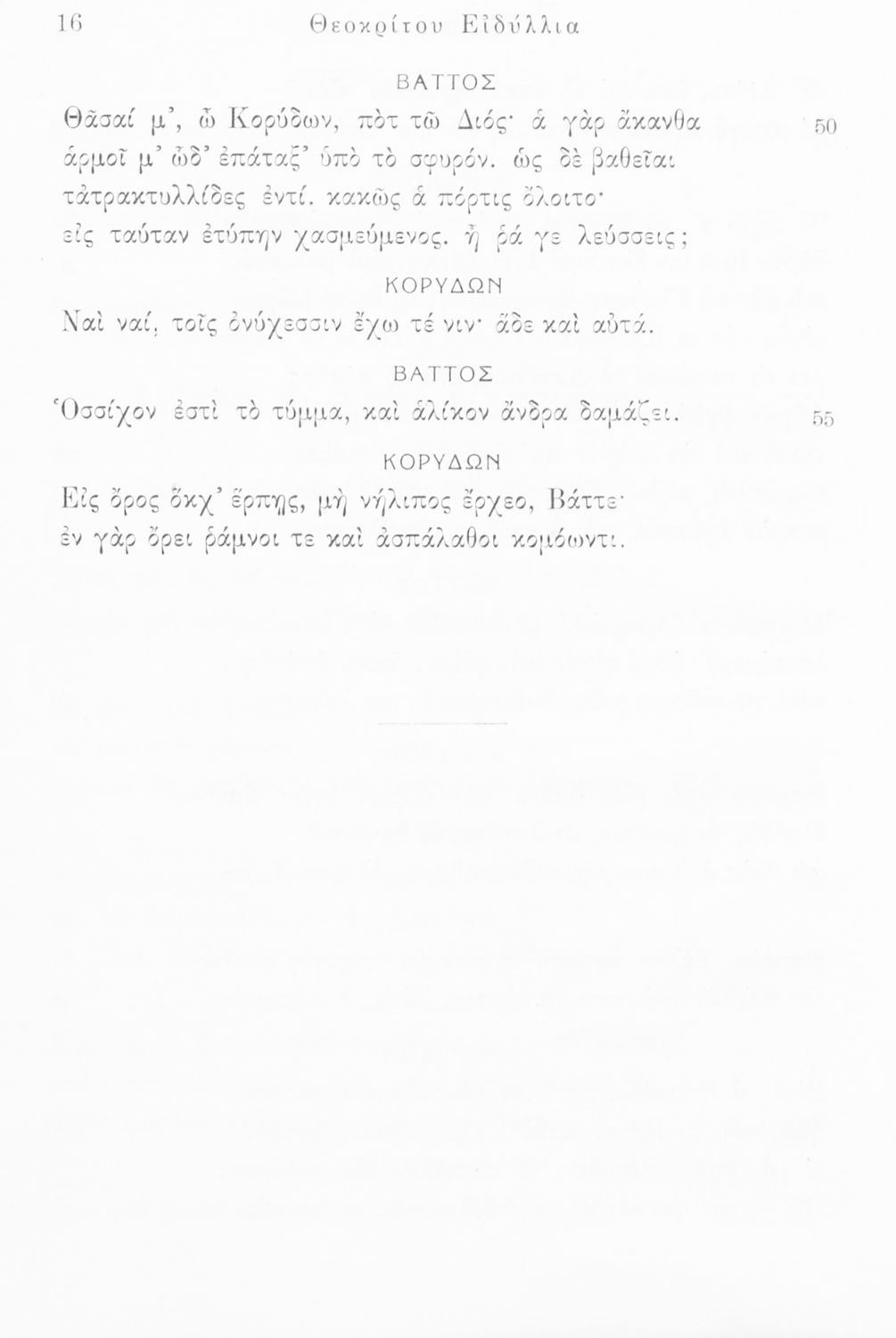 Σχολικό εγχειρίδιο Αρχαίων Ελληνικών ΣΤ΄ Γυμνασίου που περιλαμβάνει εισαγωγή στη ζωή και το έργο του Θεόκριτου, τα Ειδύλλιά του και ερμηνευτικά σχόλια.