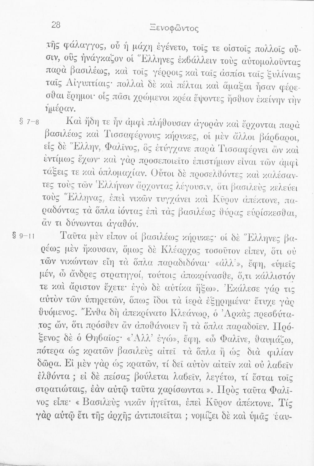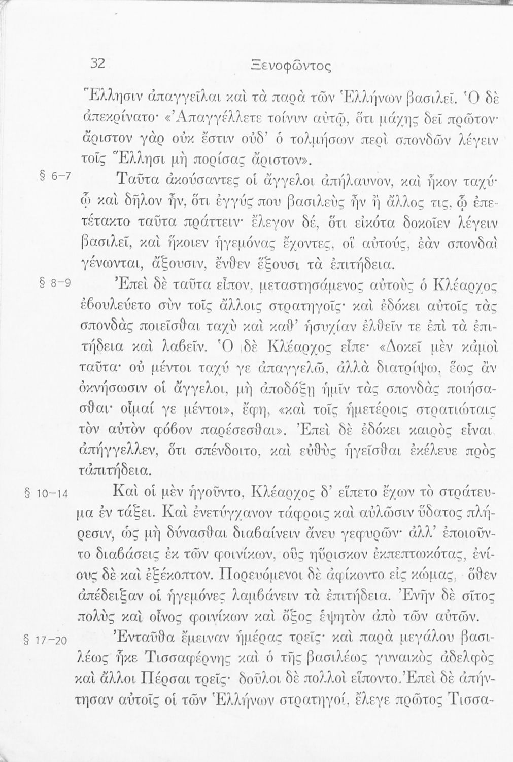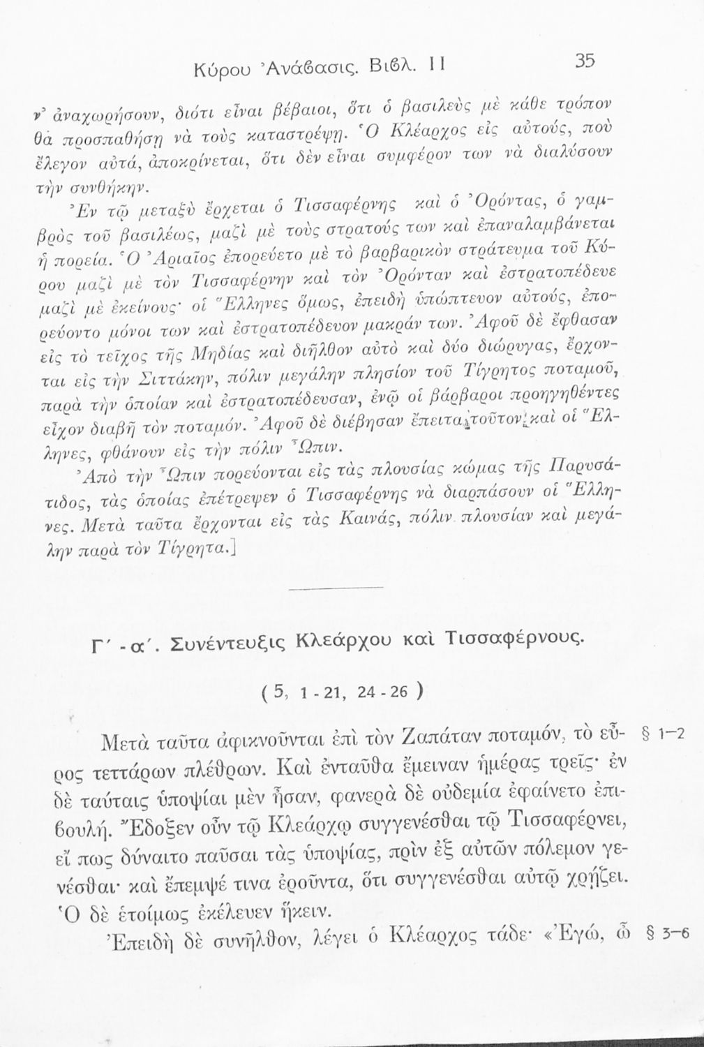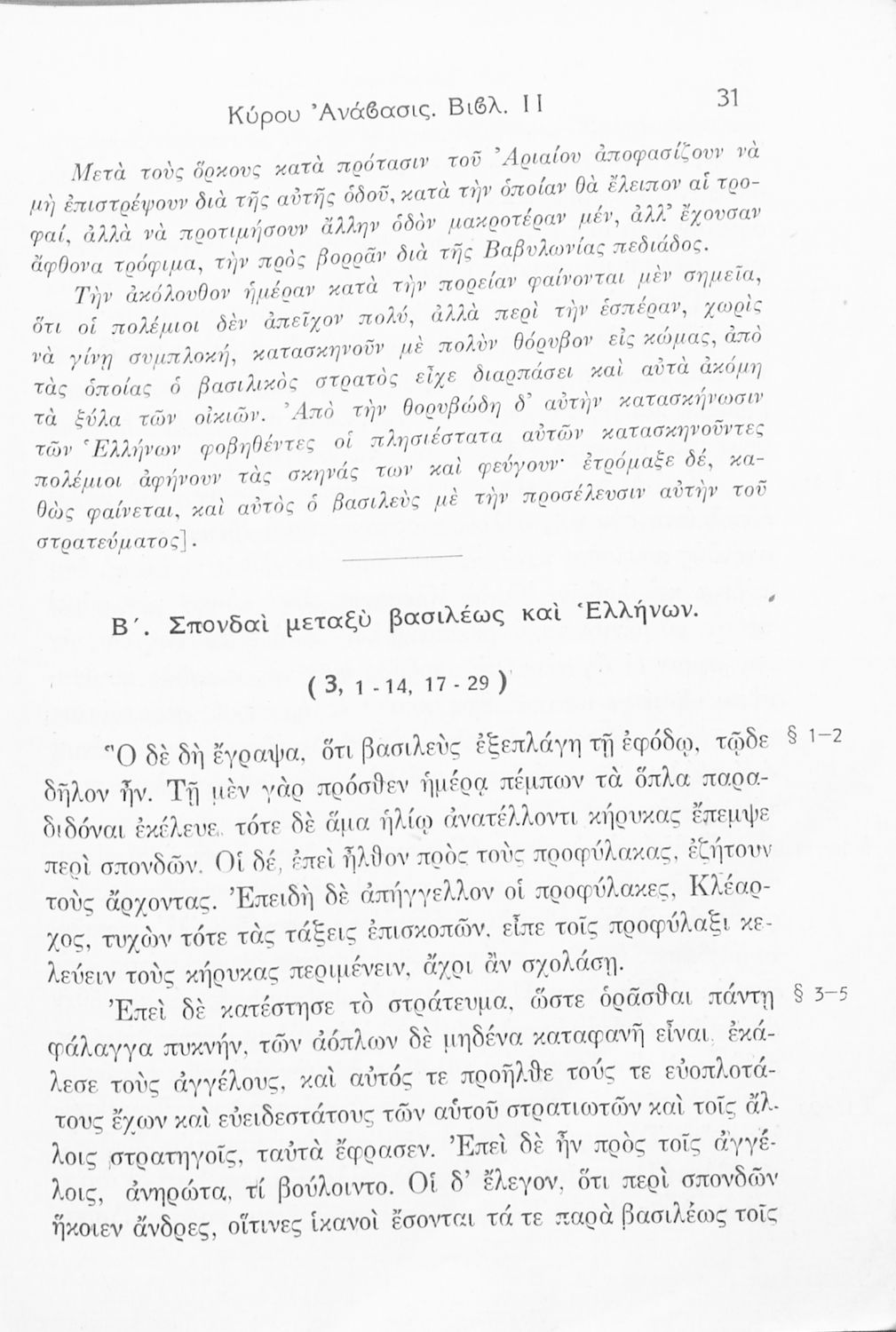 Σχολικό εγχειρίδιο της Γ' Ελληνικού Σχολείου και Αστικών Σχολείων για το μάθημα των Αρχαίων Ελληνικών. Το σύγγραμμα περιλαμβάνει κείμενα κατ΄ επιλογή από τα τέσσερα τελευταία βιβλία του έργου Κύρου Ανάβασις. ...