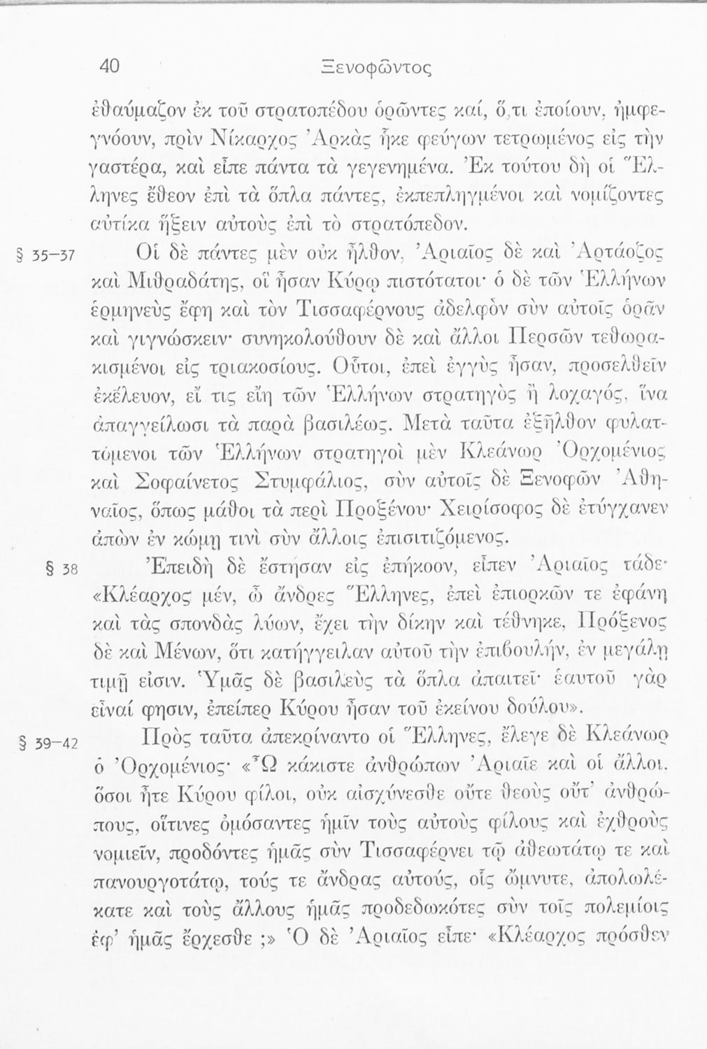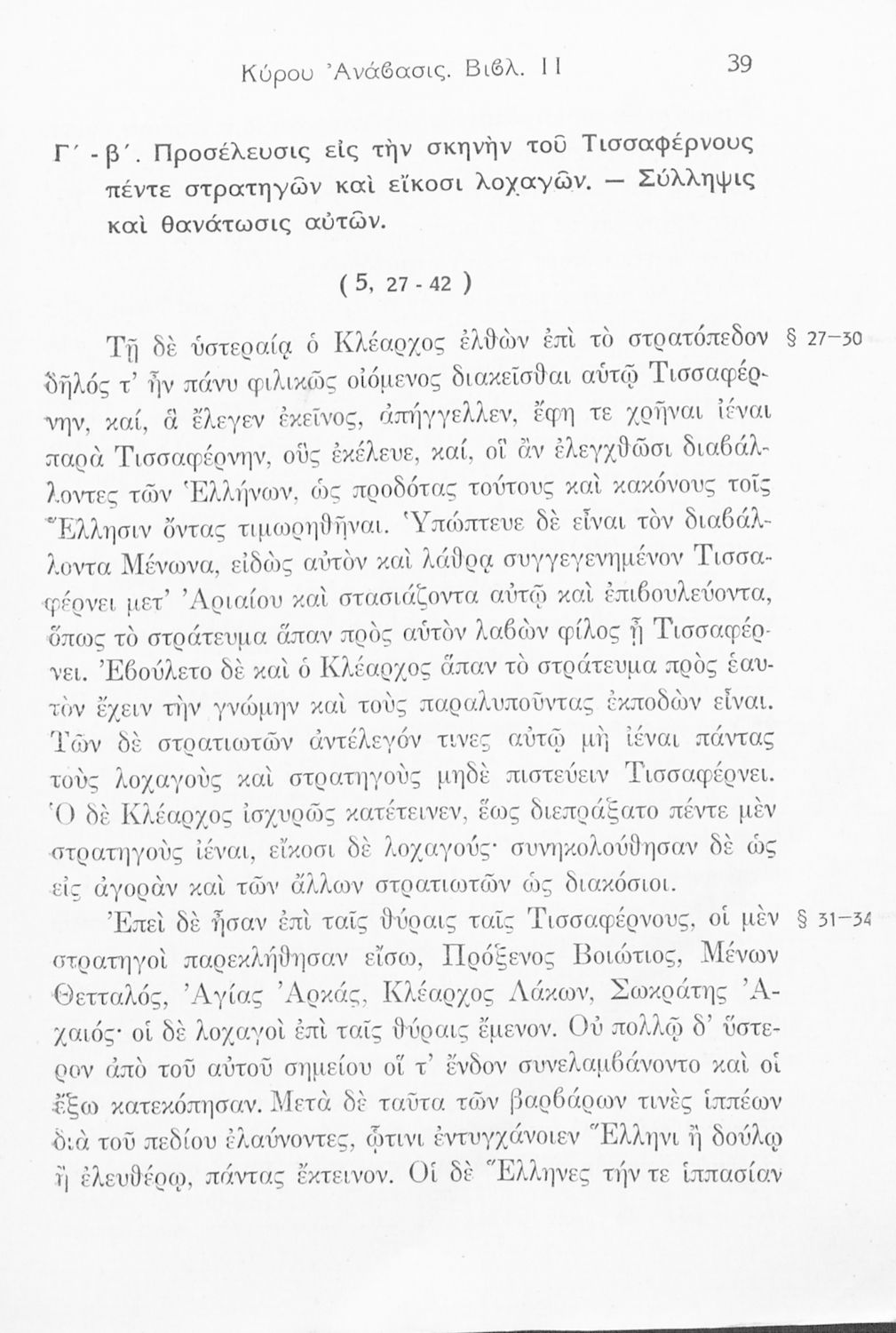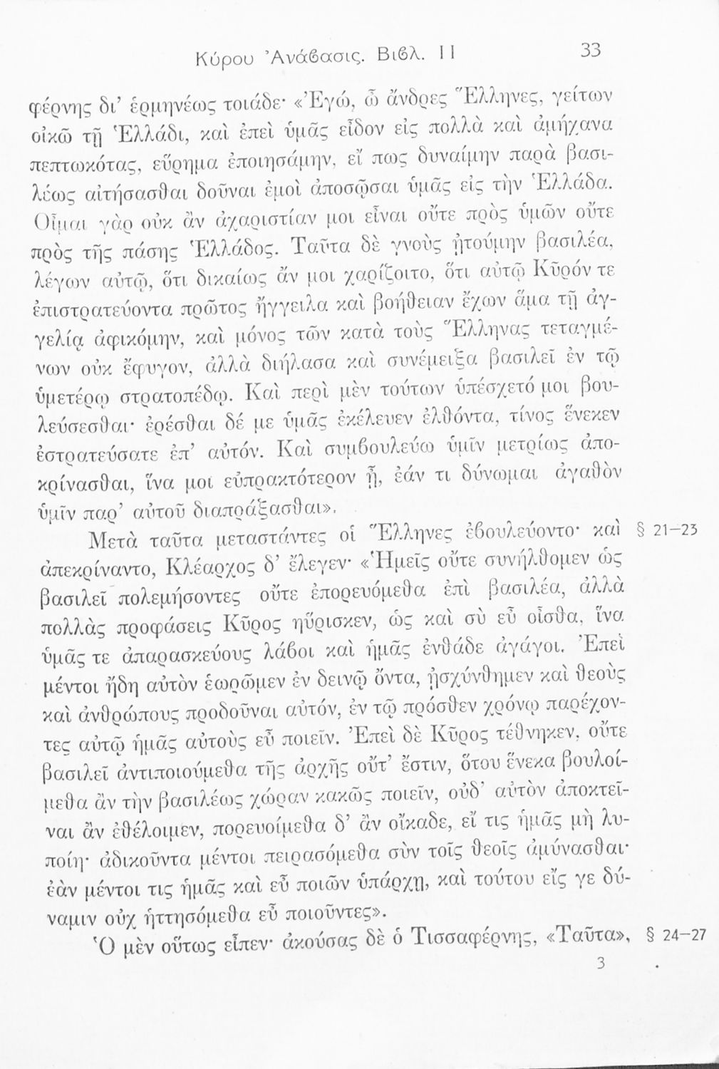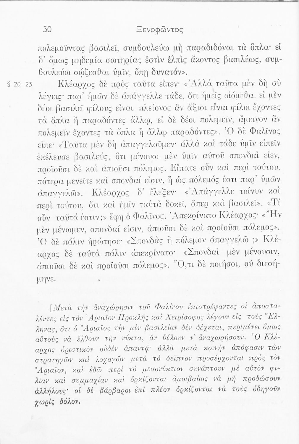 Σχολικό εγχειρίδιο της Γ' Ελληνικού Σχολείου και Αστικών Σχολείων για το μάθημα των Αρχαίων Ελληνικών. Το σύγγραμμα περιλαμβάνει κείμενα κατ΄ επιλογή από τα τέσσερα τελευταία βιβλία του έργου Κύρου Ανάβασις. ...