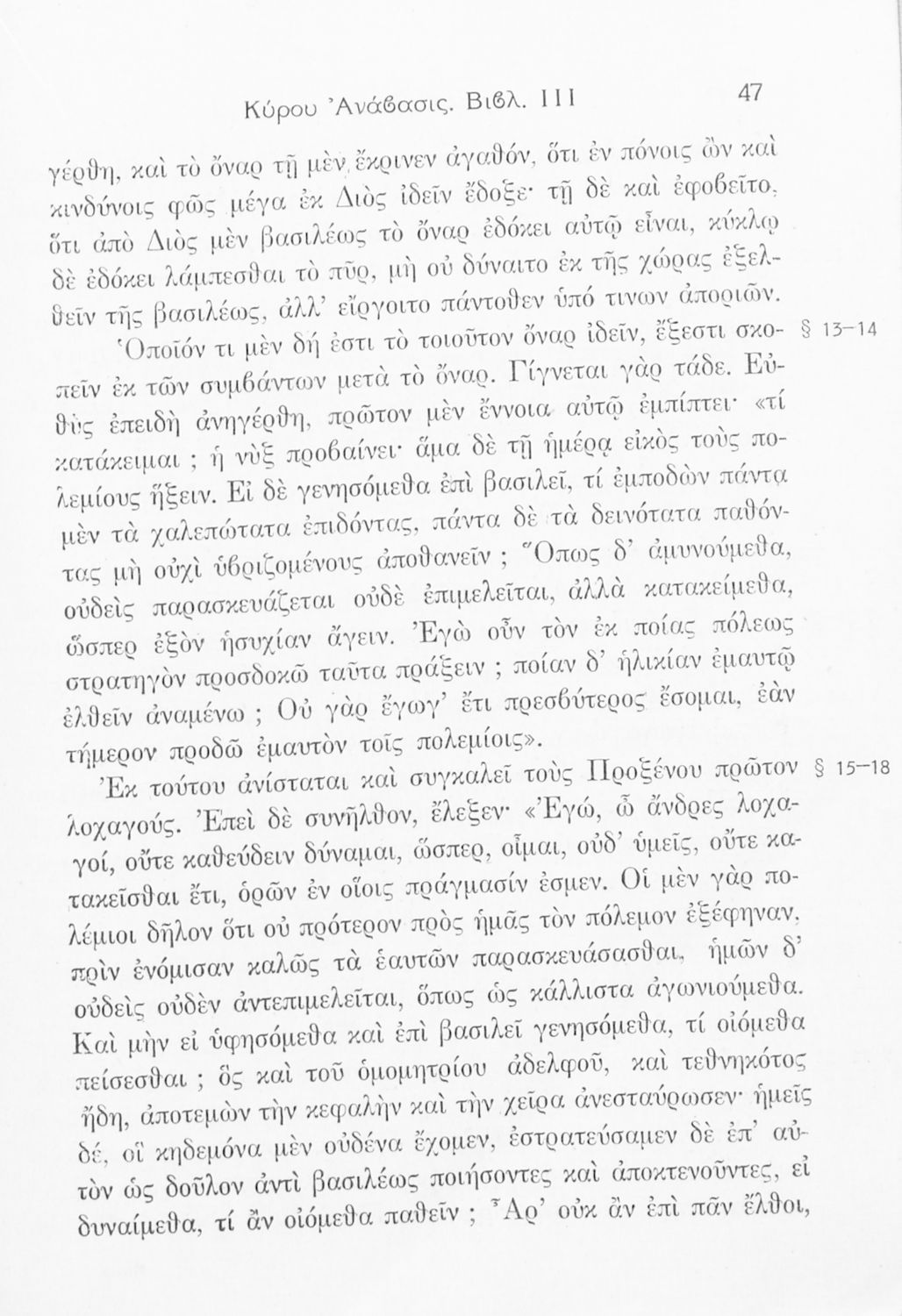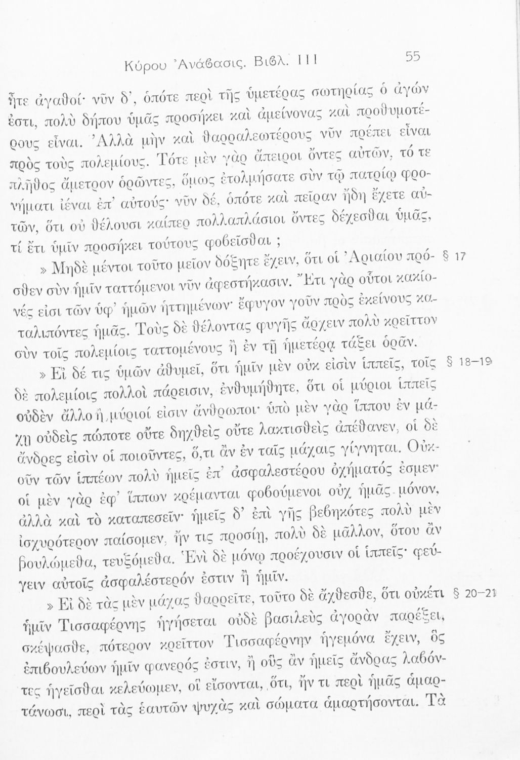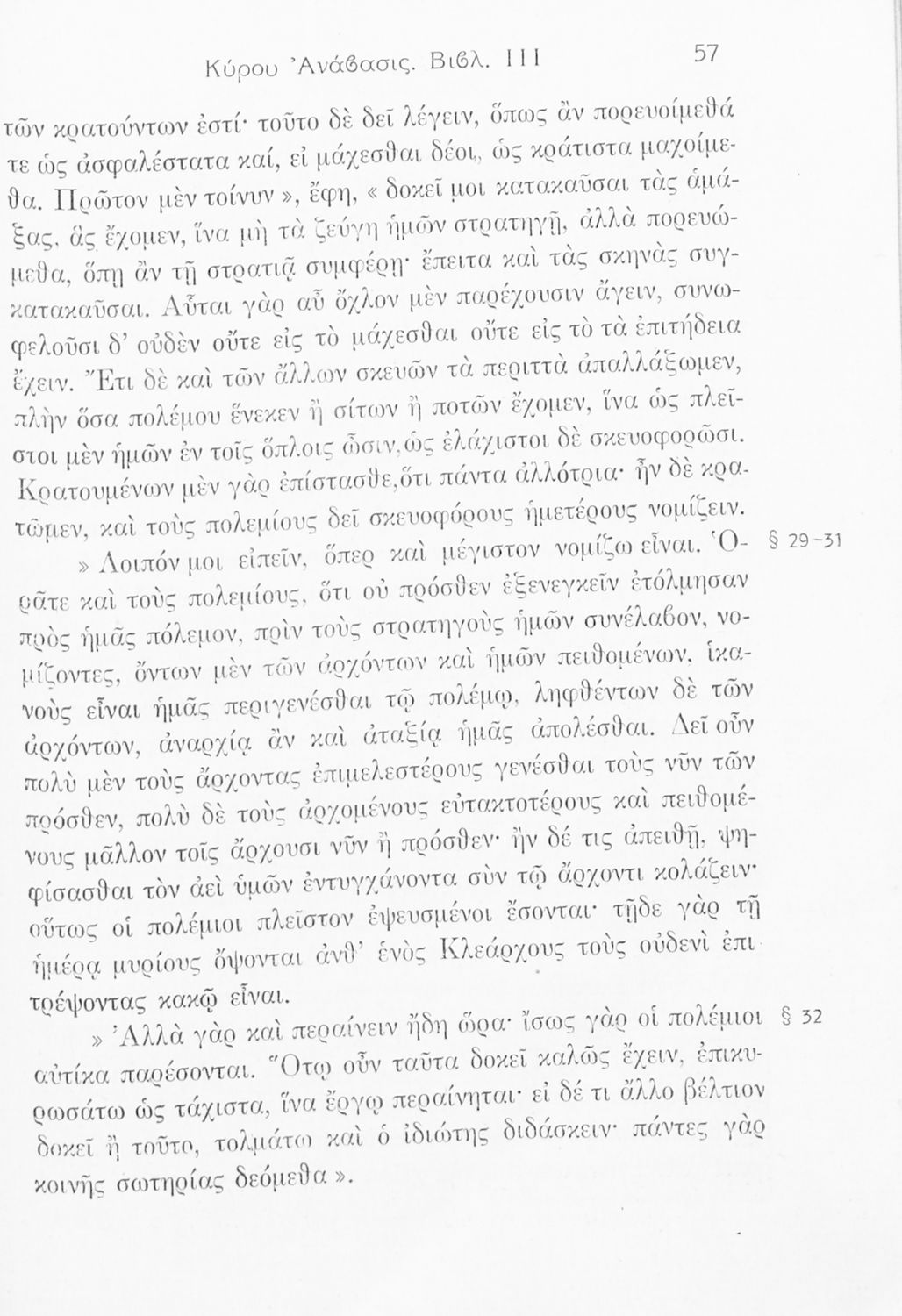 Σχολικό εγχειρίδιο της Γ' Ελληνικού Σχολείου και Αστικών Σχολείων για το μάθημα των Αρχαίων Ελληνικών. Το σύγγραμμα περιλαμβάνει κείμενα κατ΄ επιλογή από τα τέσσερα τελευταία βιβλία του έργου Κύρου Ανάβασις. ...